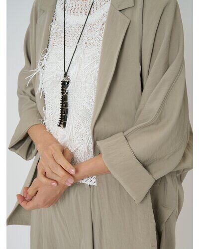 ゆったりとしたドルマンスリーブが、肩の力を抜いたリラックス感を演出し、羽織るだけで大人の余裕を感じさせる雰囲気に。