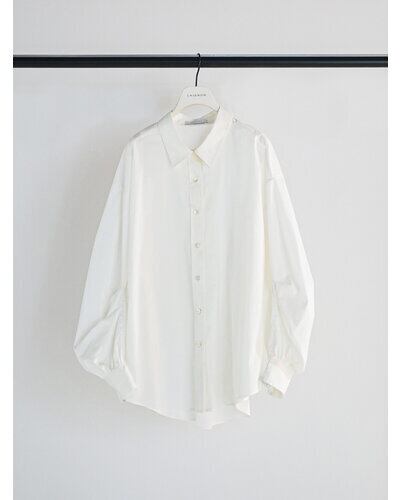 袖の前後に入ったタックで作る立体的なボリュームスリーブが、横顔までかわいい、春らしいクリーンなシャツです。