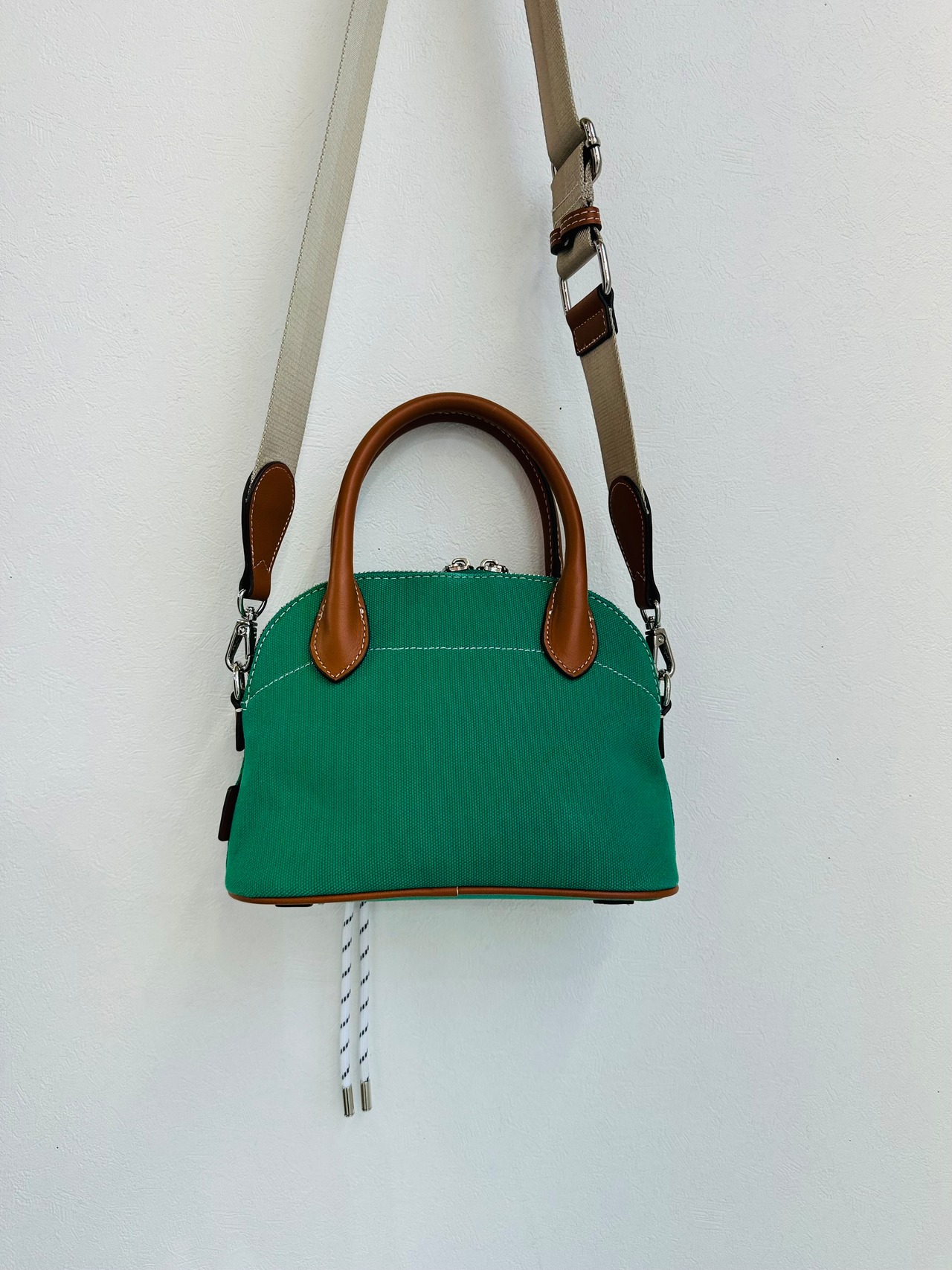 ベーシックな16オンスのキャンバス素材にはレザー付属を効かせ供っぽくならないようにしました。