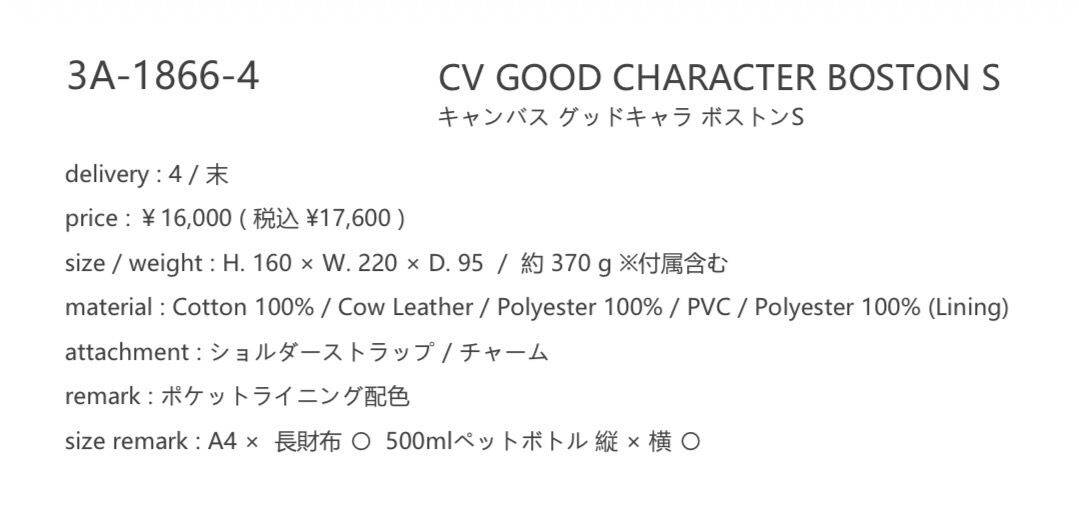 キャンバス グッドキャラ ボストンS 【STORY ストーリー 26夏バッグご予約】 3A- 1866 -4 2604c