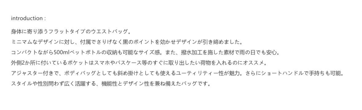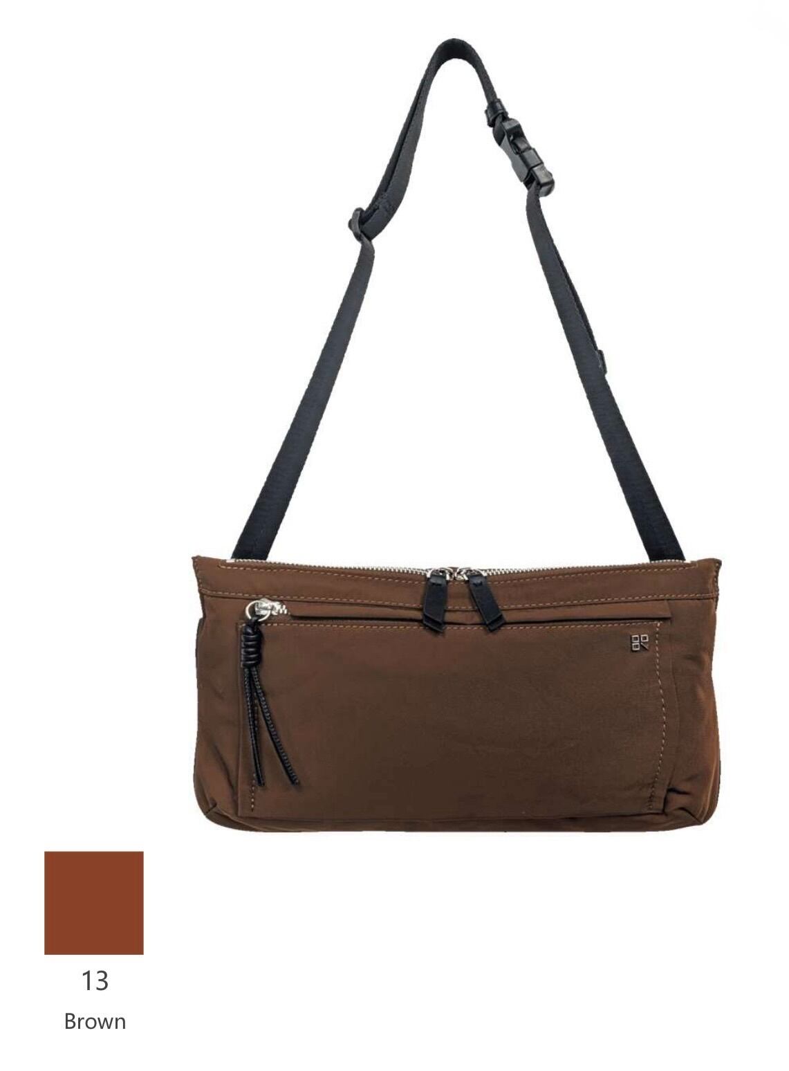 アジャスター付きで、ボディバッグとしても斜め掛けとしても使えるユーティリティー性が魅力。さらにショートハンドルで手持ちも可能。