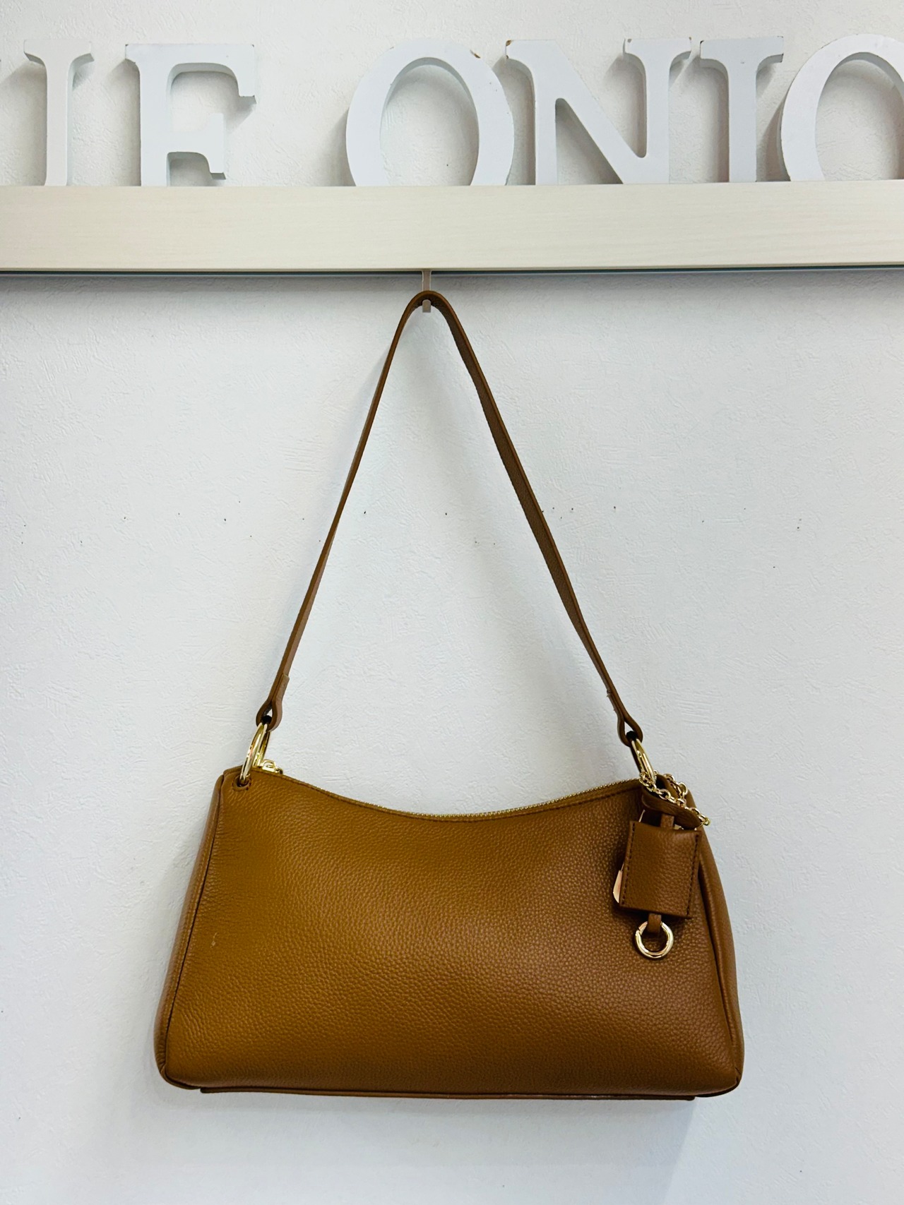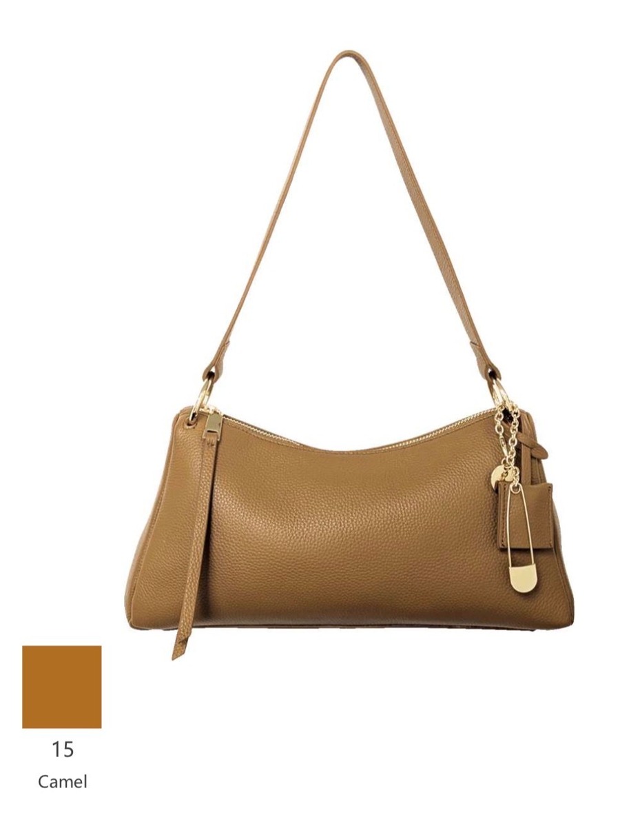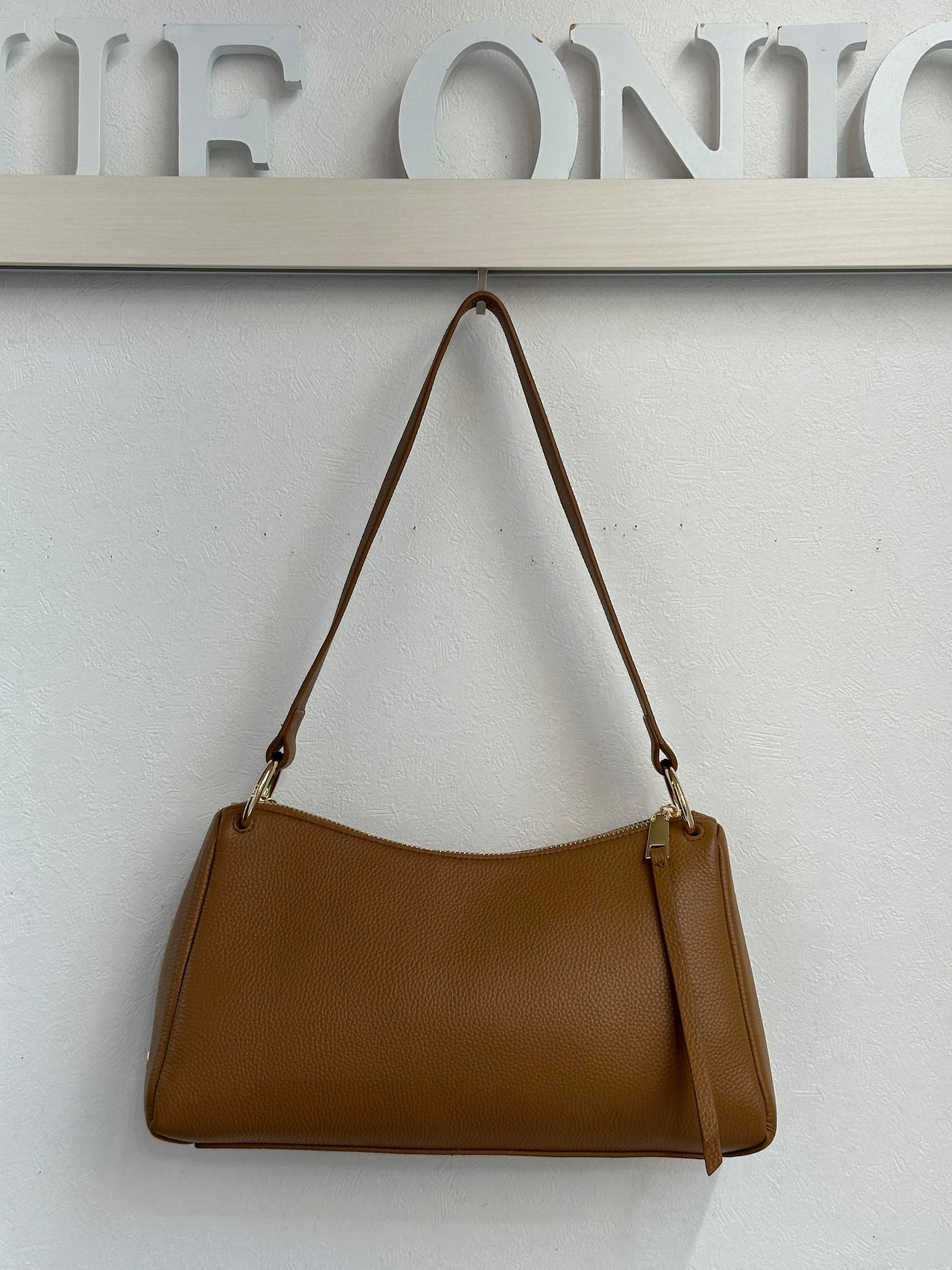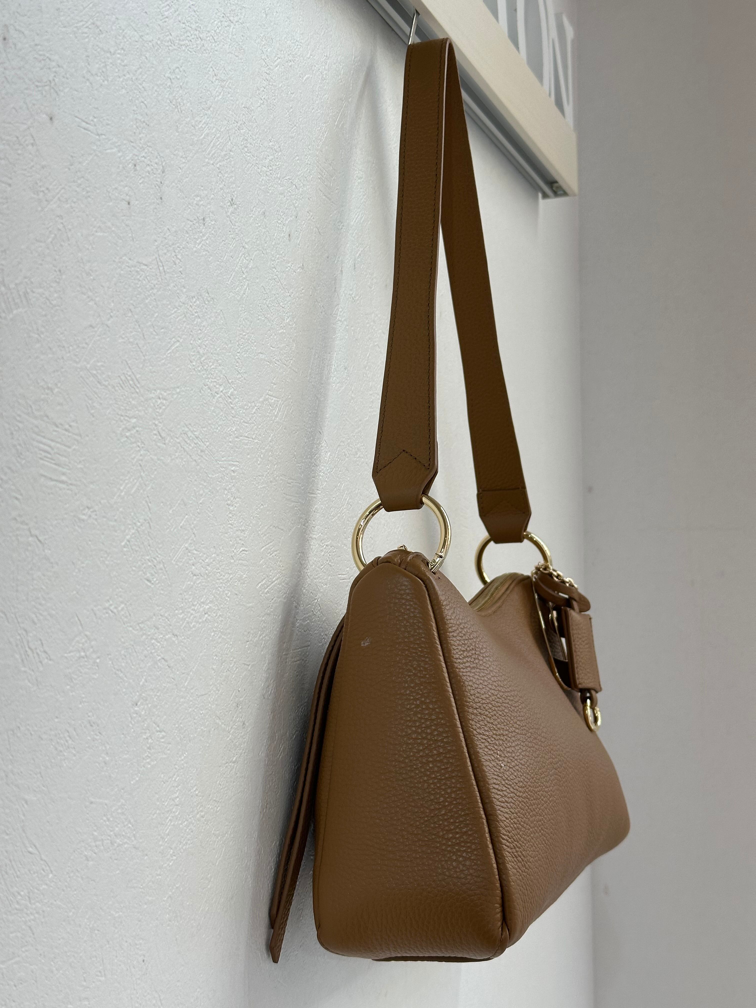 実用性と上質感を兼ね備えたシュリンクレザー仕立てのショルダーバッグ。