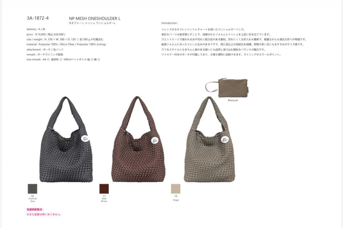 ネオプレーン メッシュ ワンショルダーL 【STORY ストーリー 26夏バッグご予約】 3A- 1872 -3 2604c