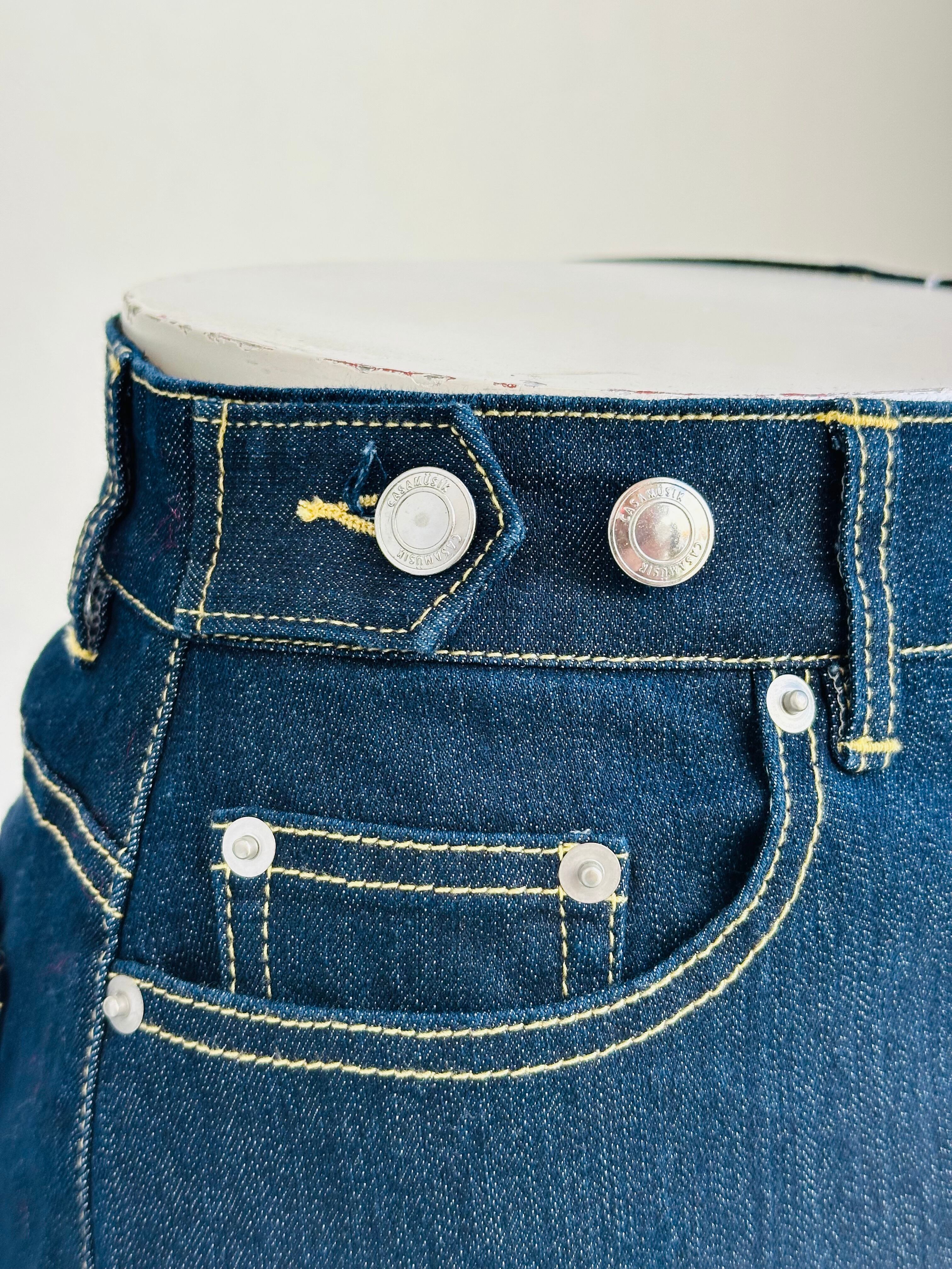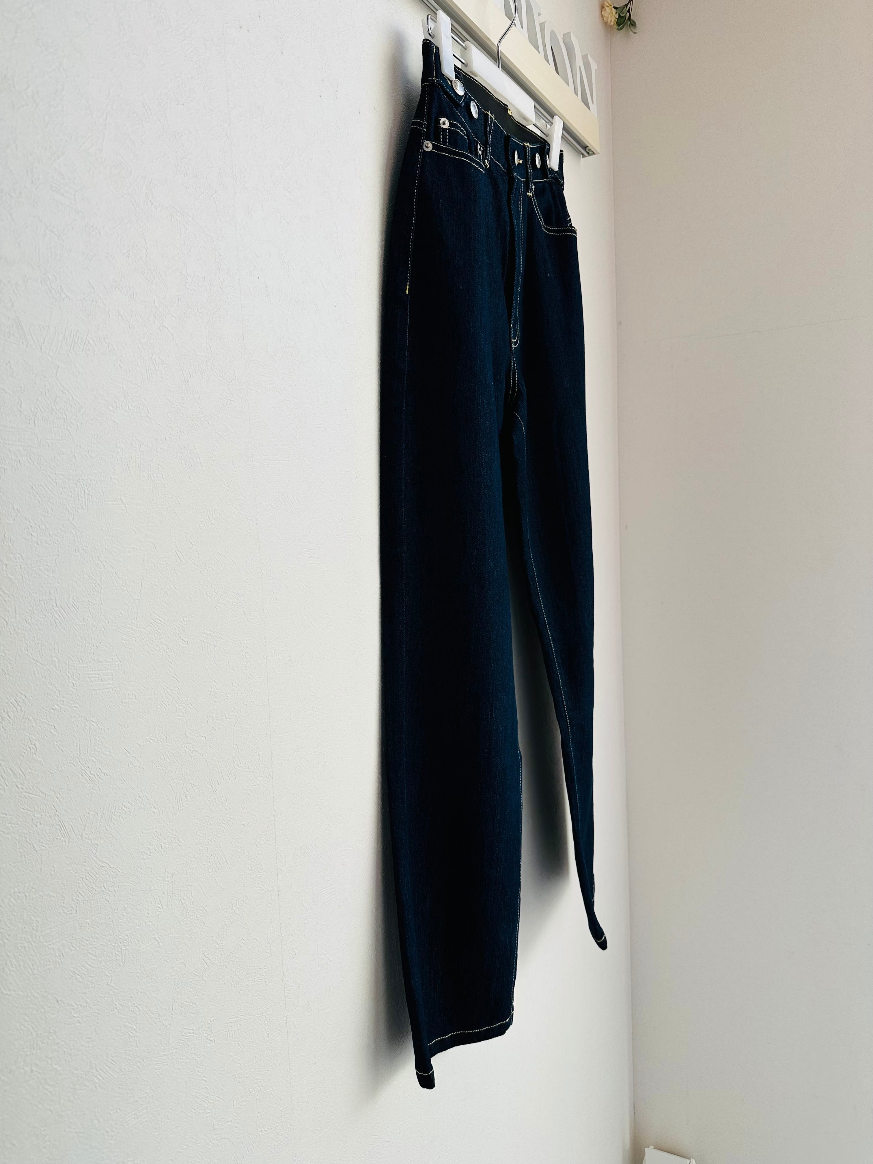 クラシカルなストレートシルエットが魅力のデニム。ヒップから太ももにかけてはほどよくゆとりを持たせつつ、裾に向かってすっきりとしたラインで美しいシルエットを描きます。