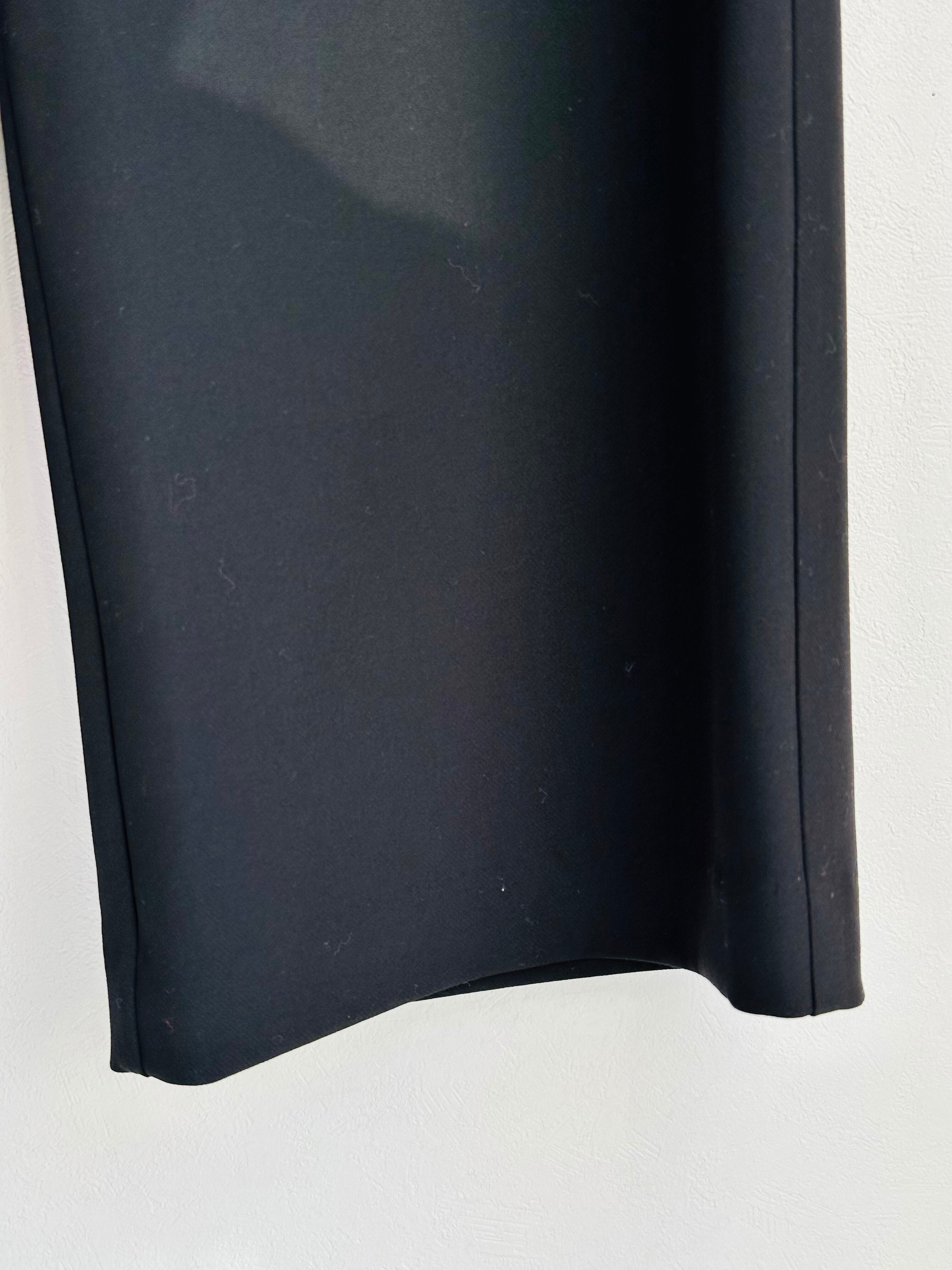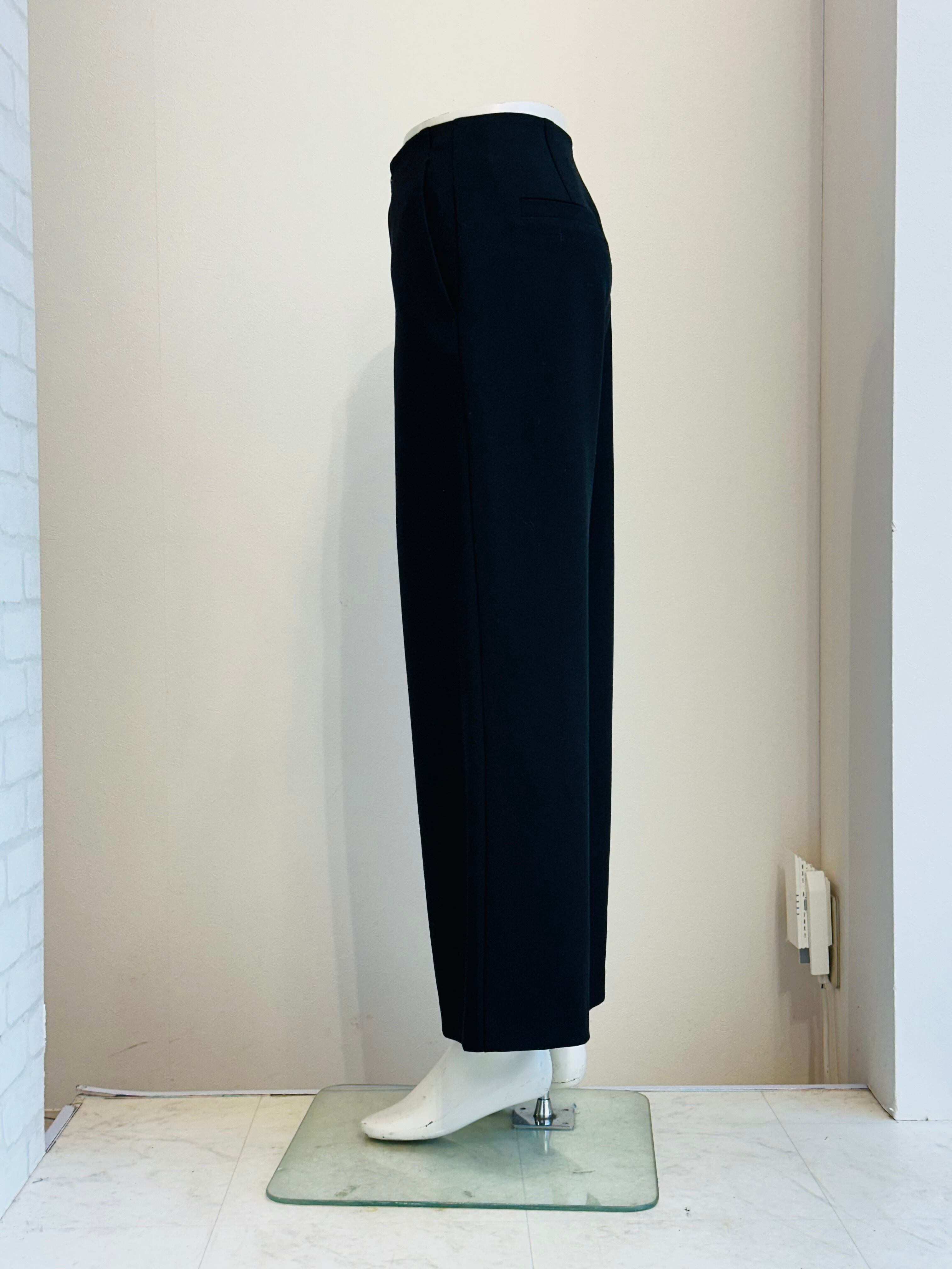 しっかりとした生地感で肉感を拾わず、美しい落ち感が際立つワイドパンツ。