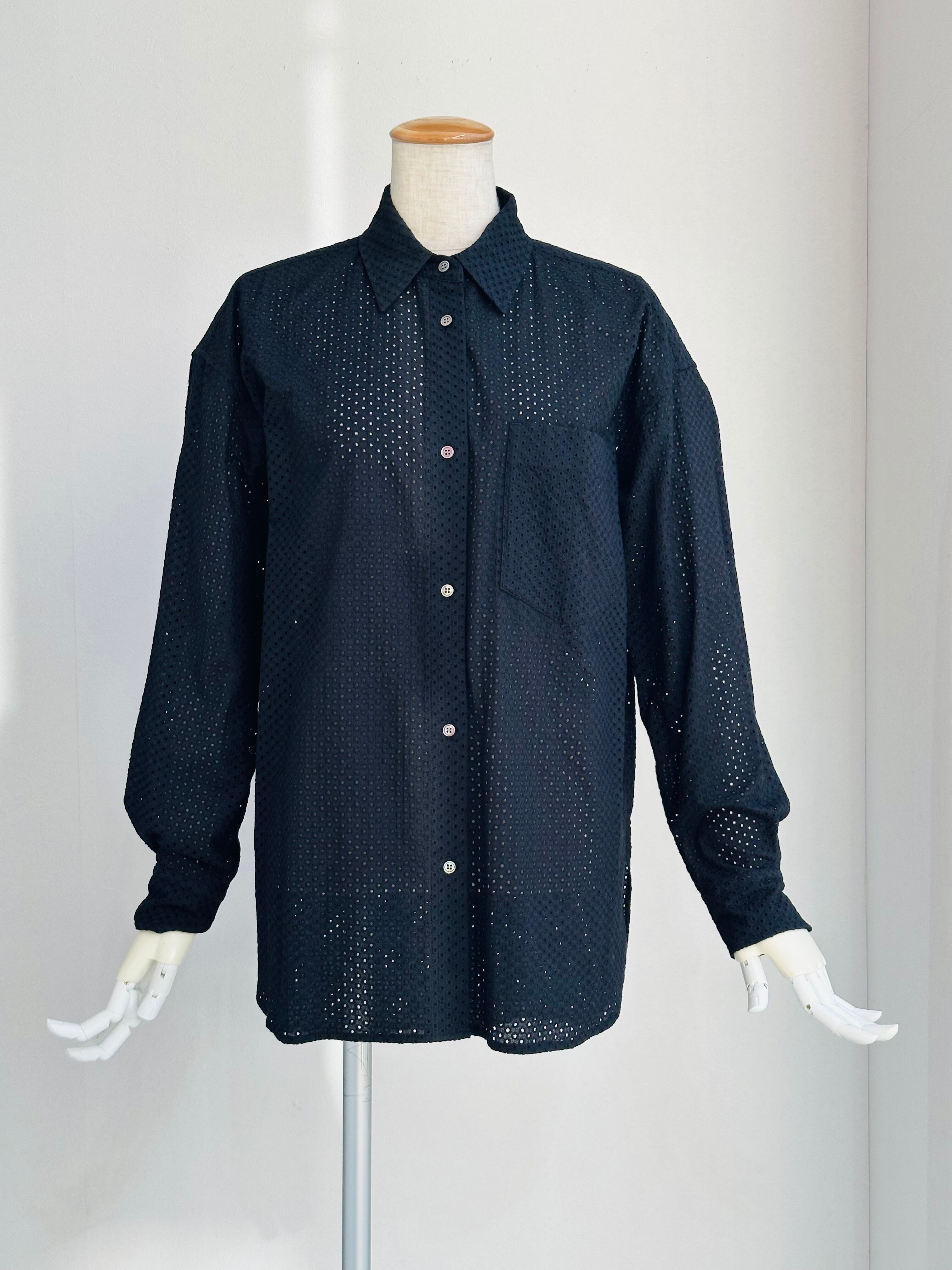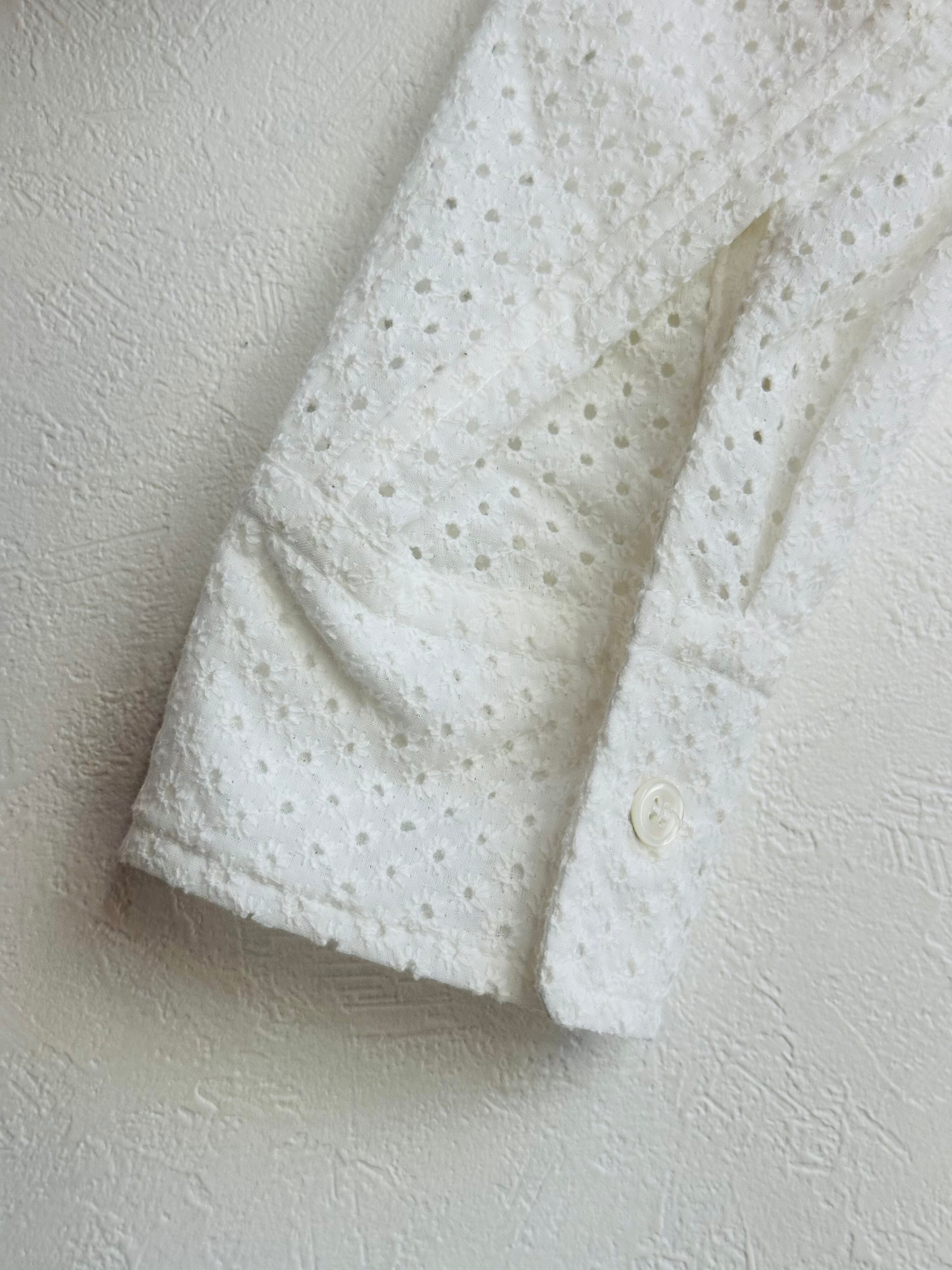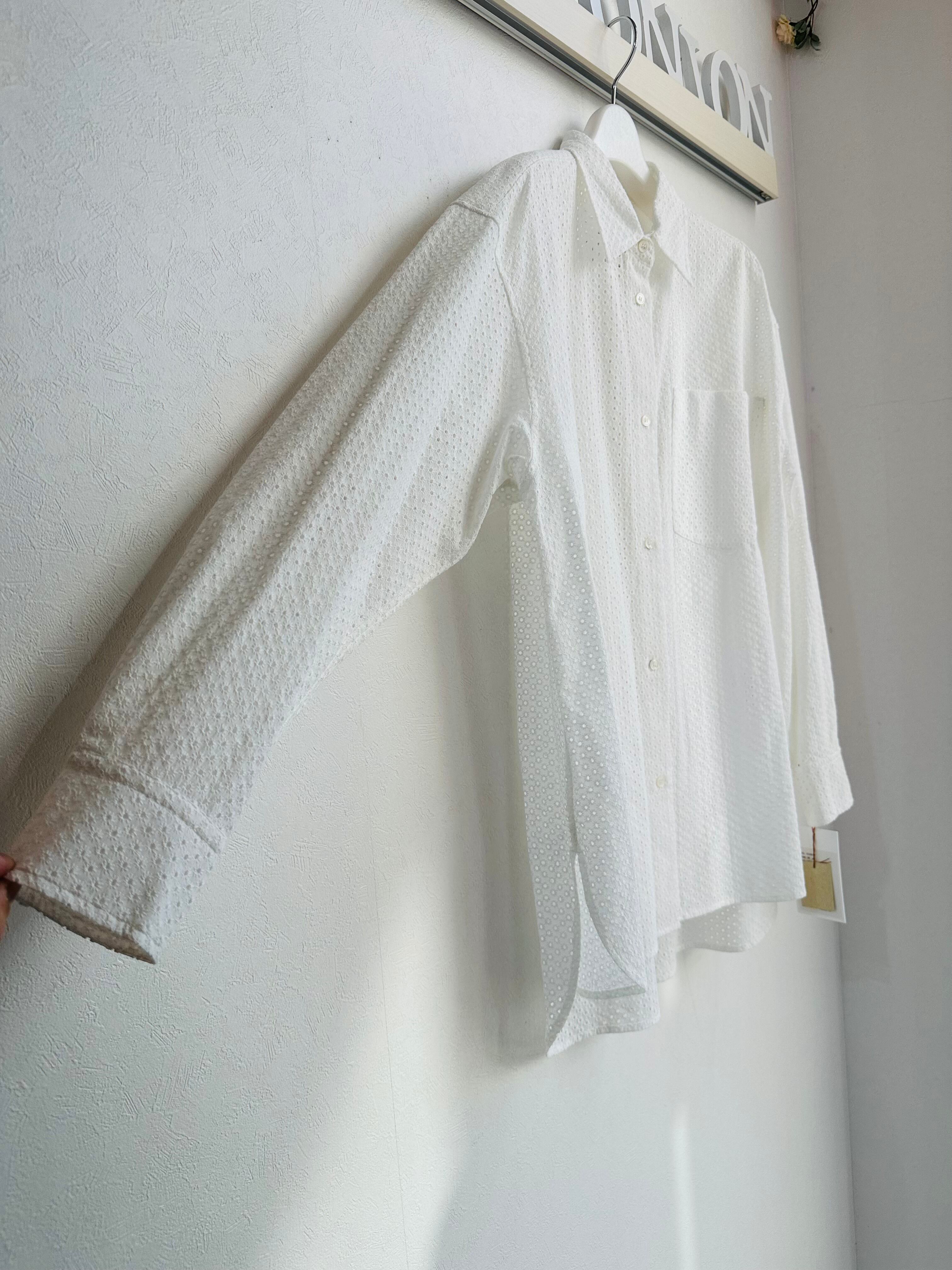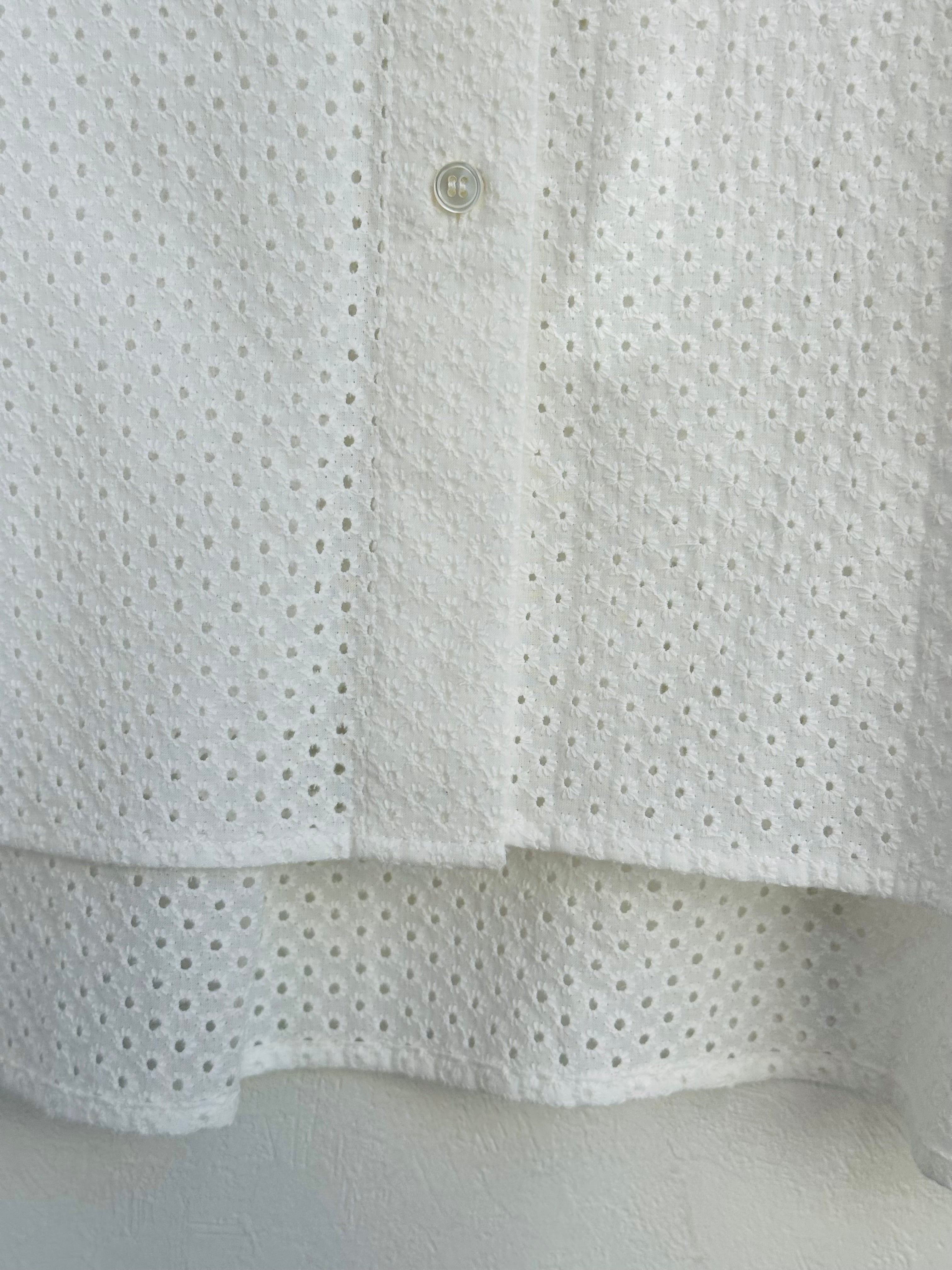 綿にドットの総レースを施したシャツブラウス