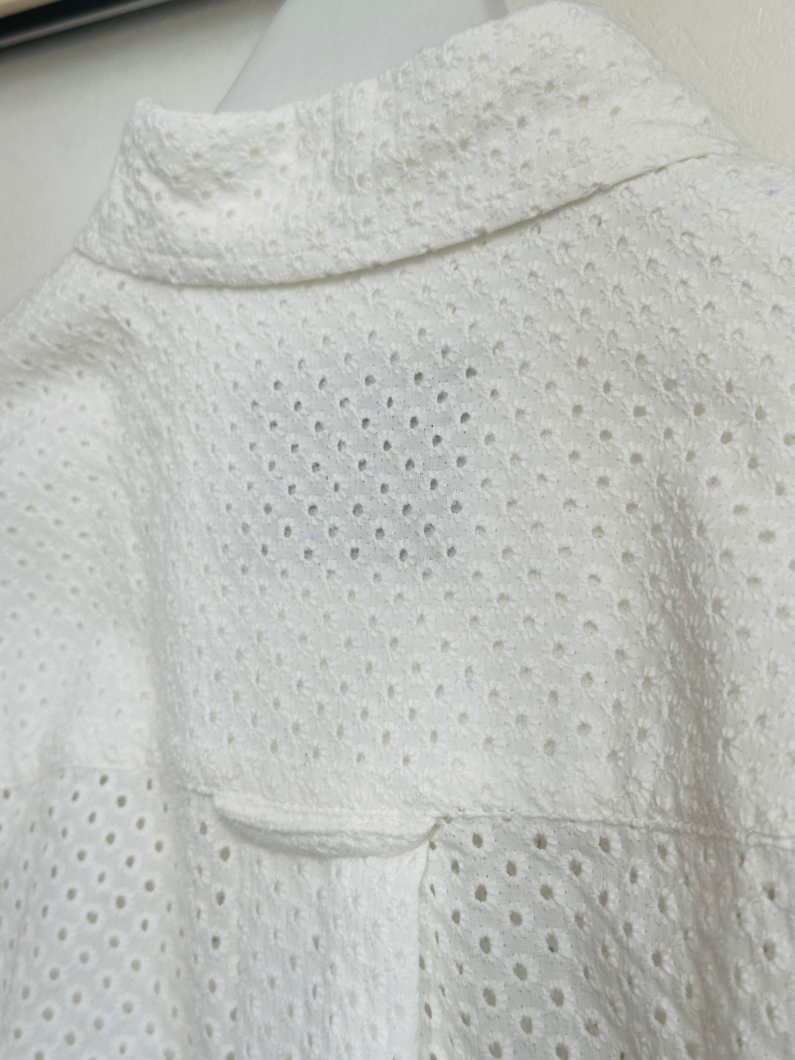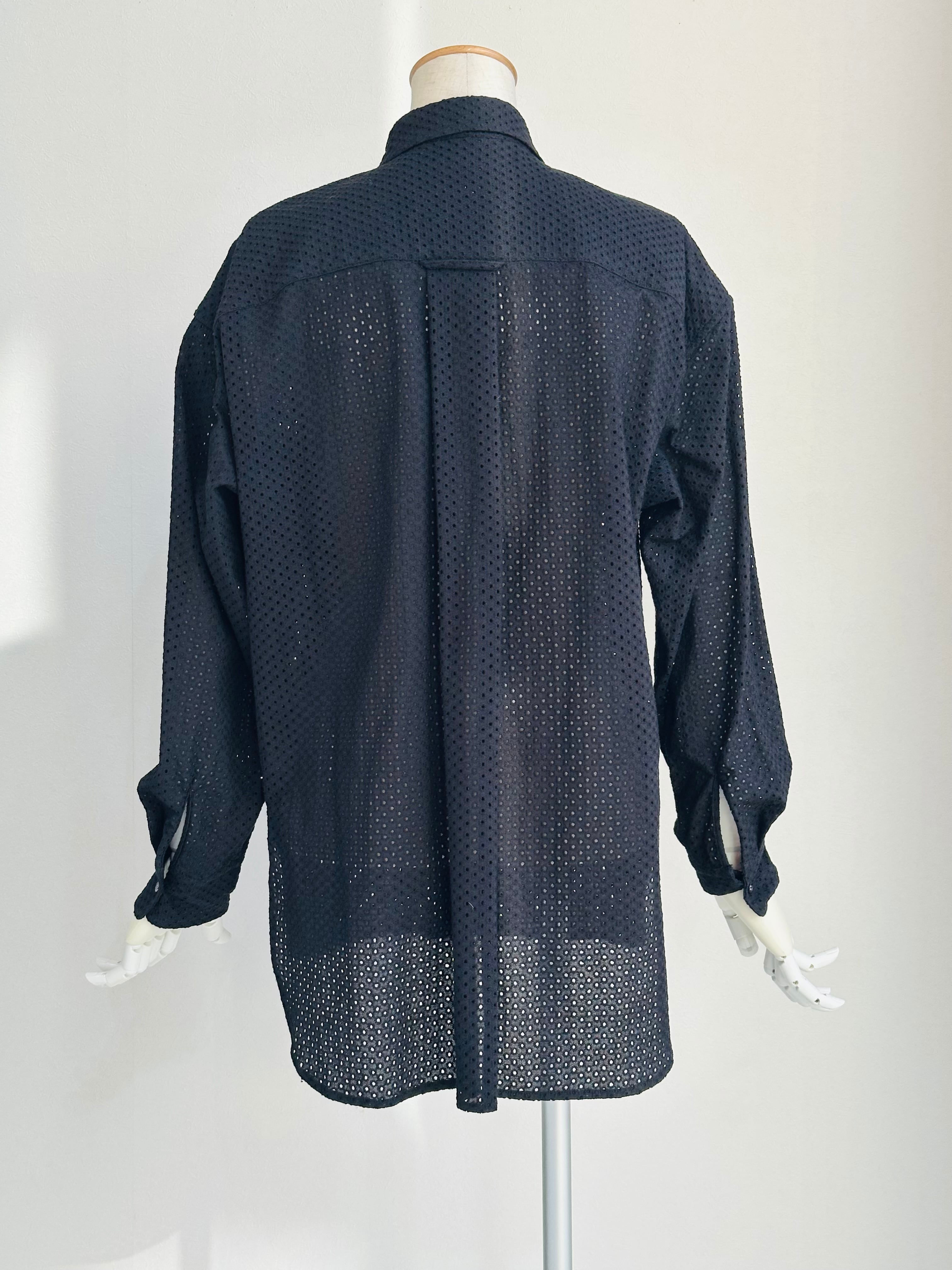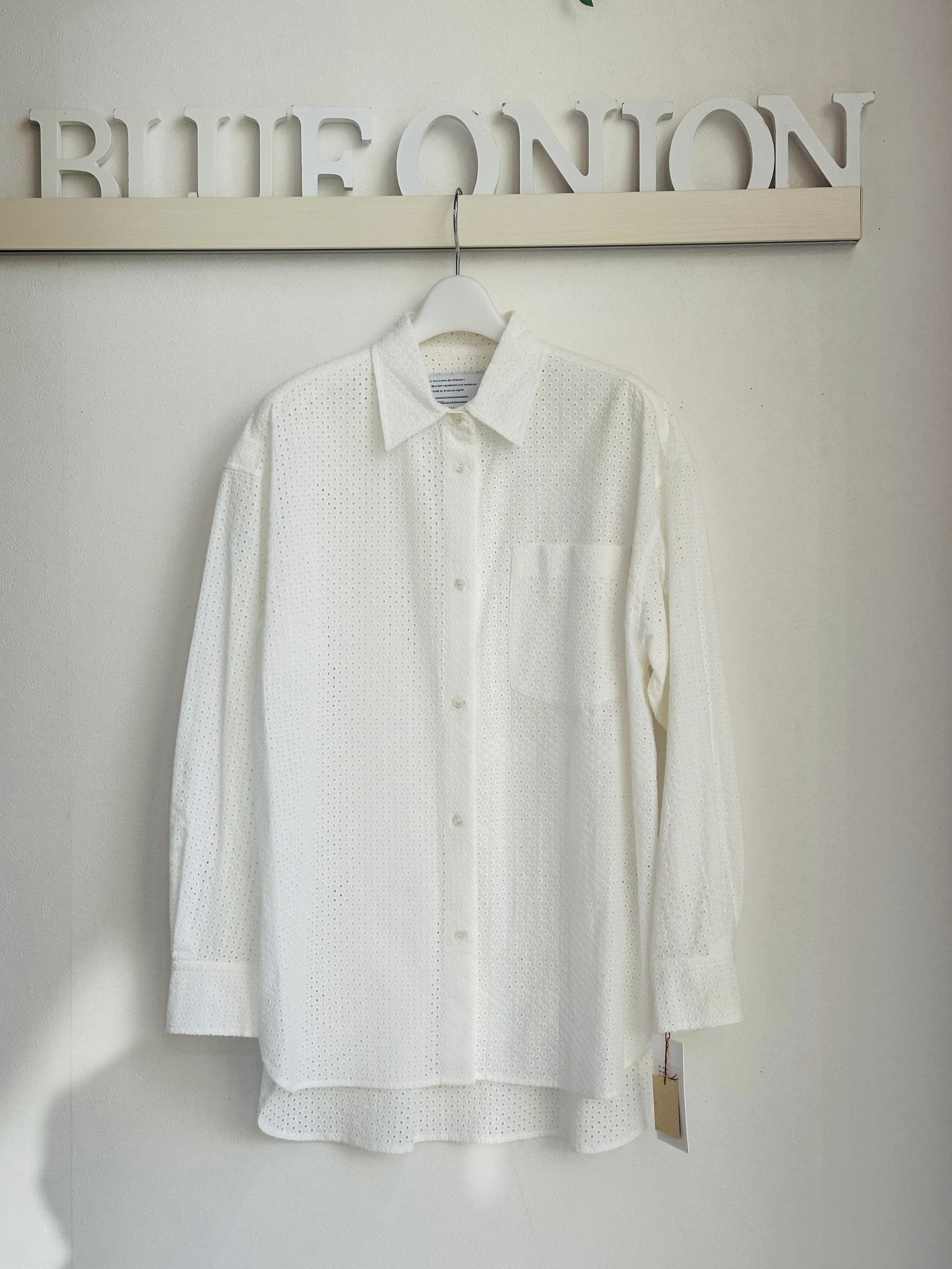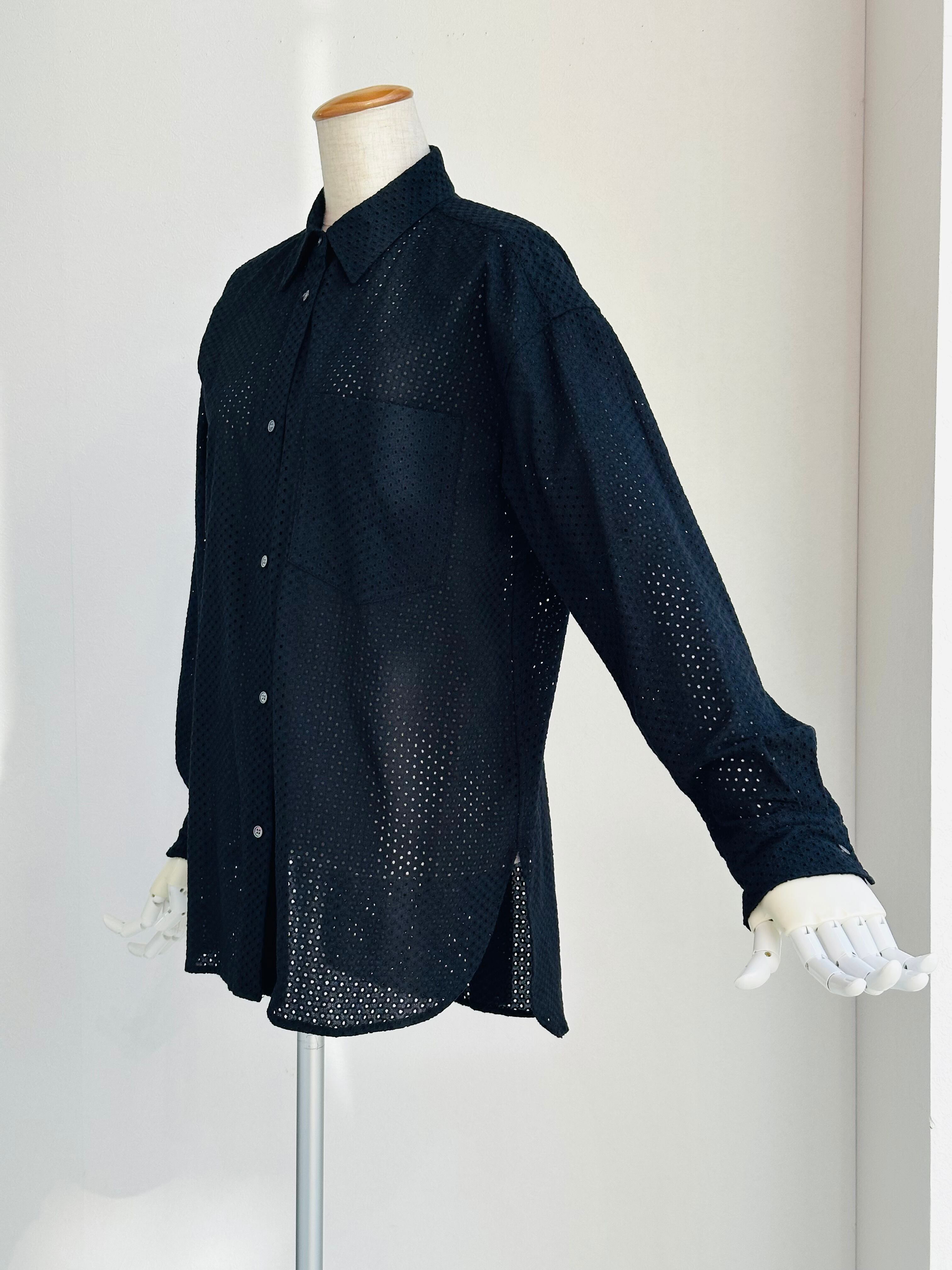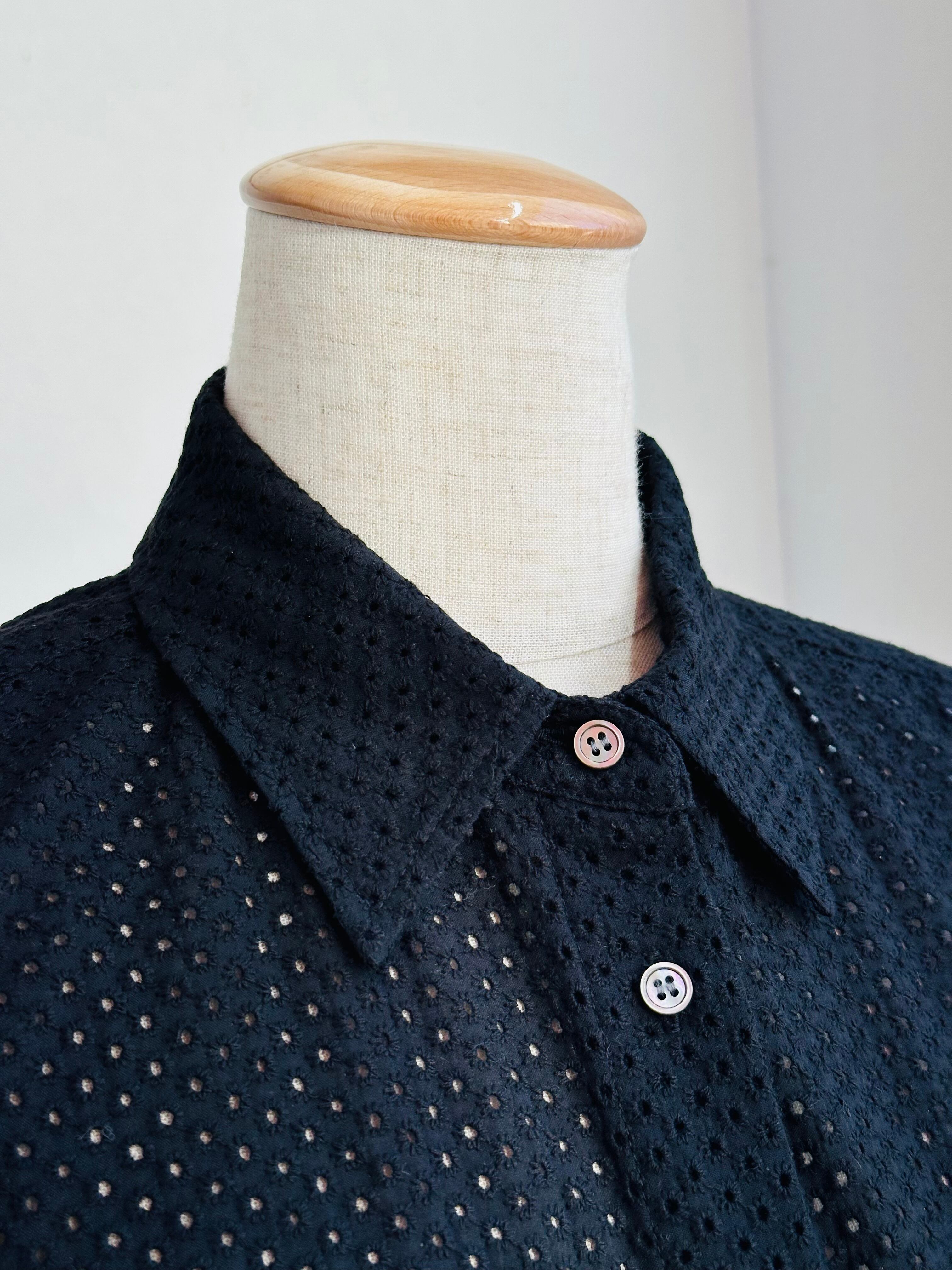 綿にドットの総レースを施したシャツブラウス