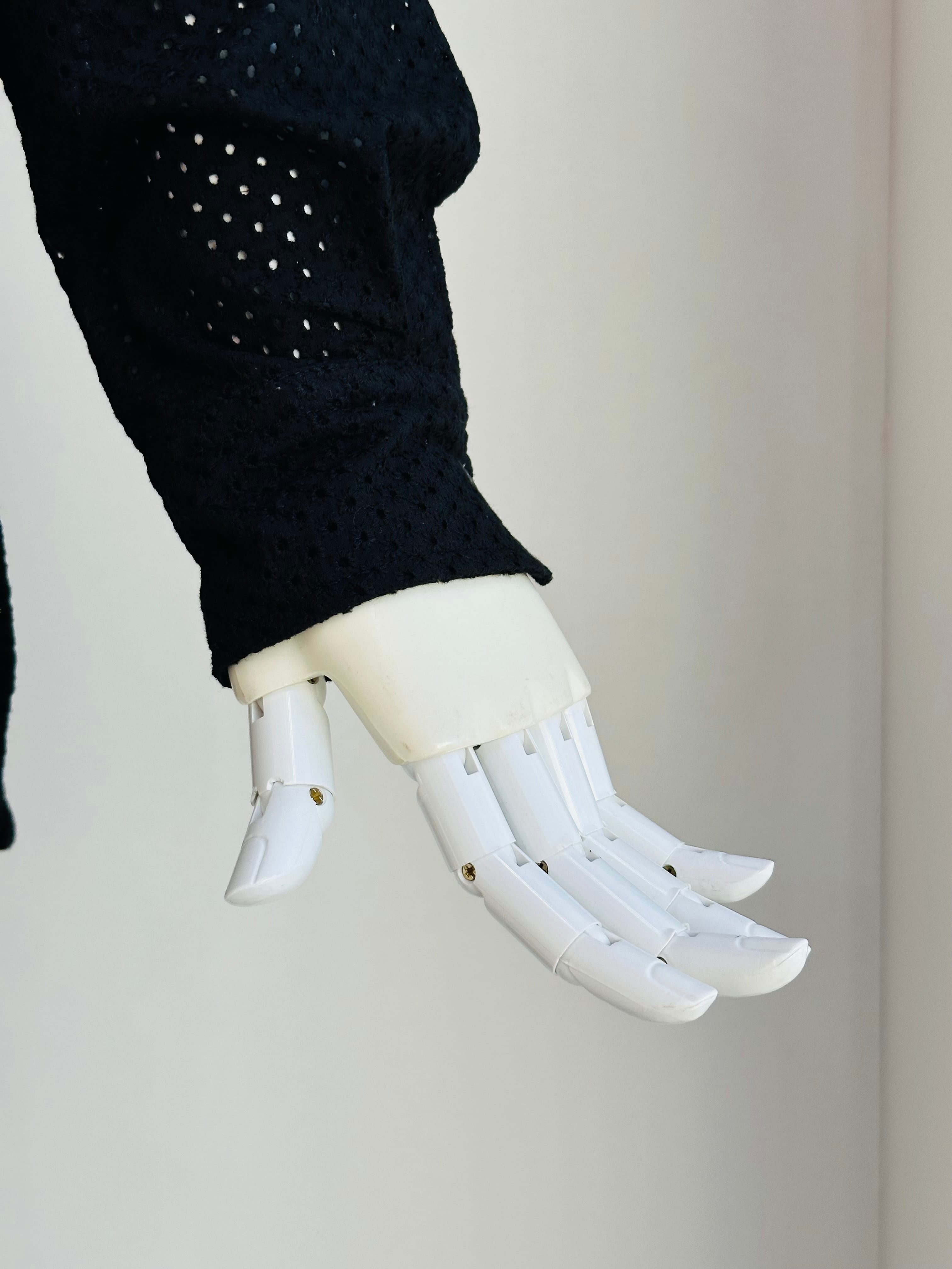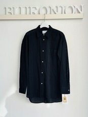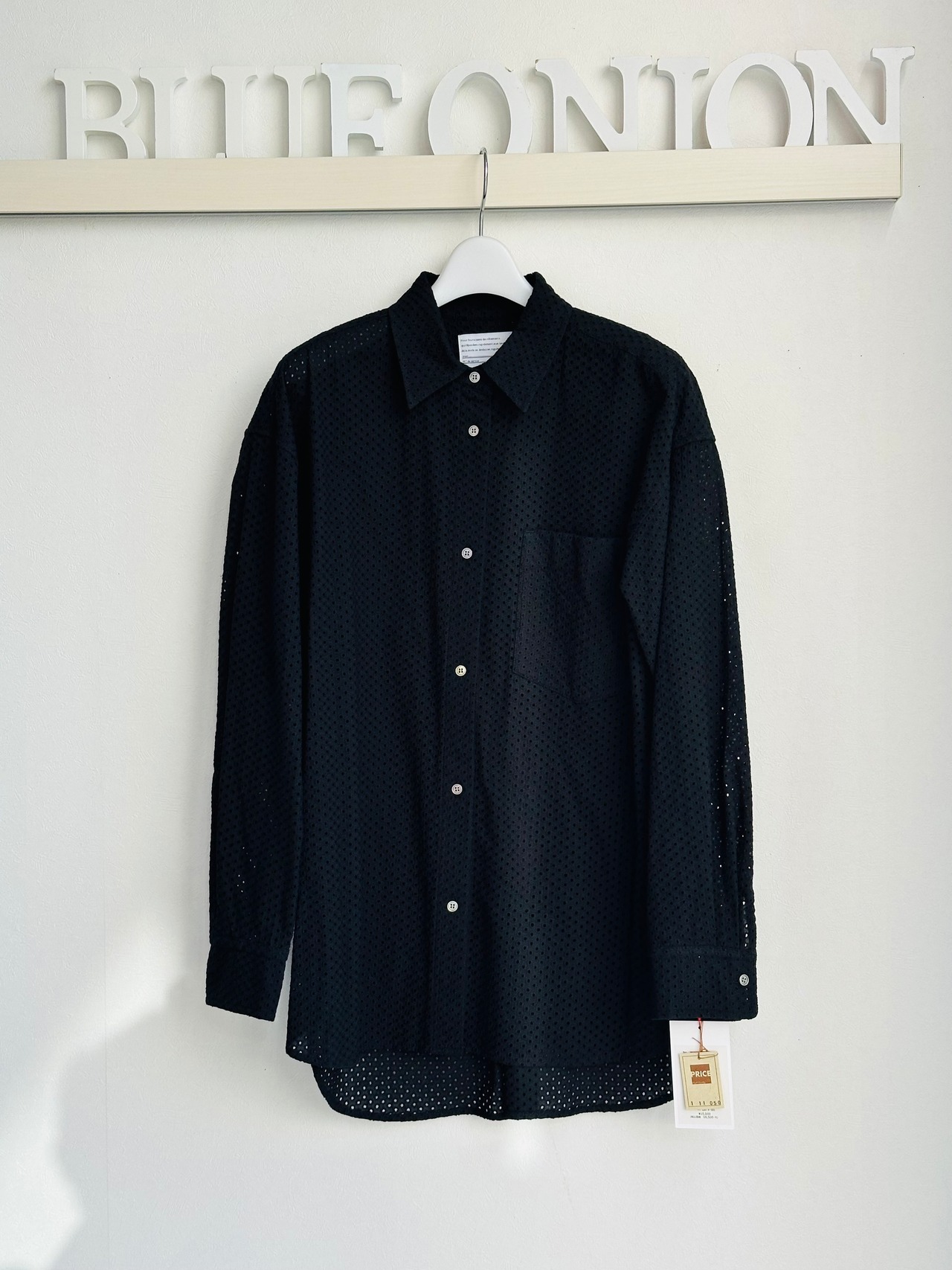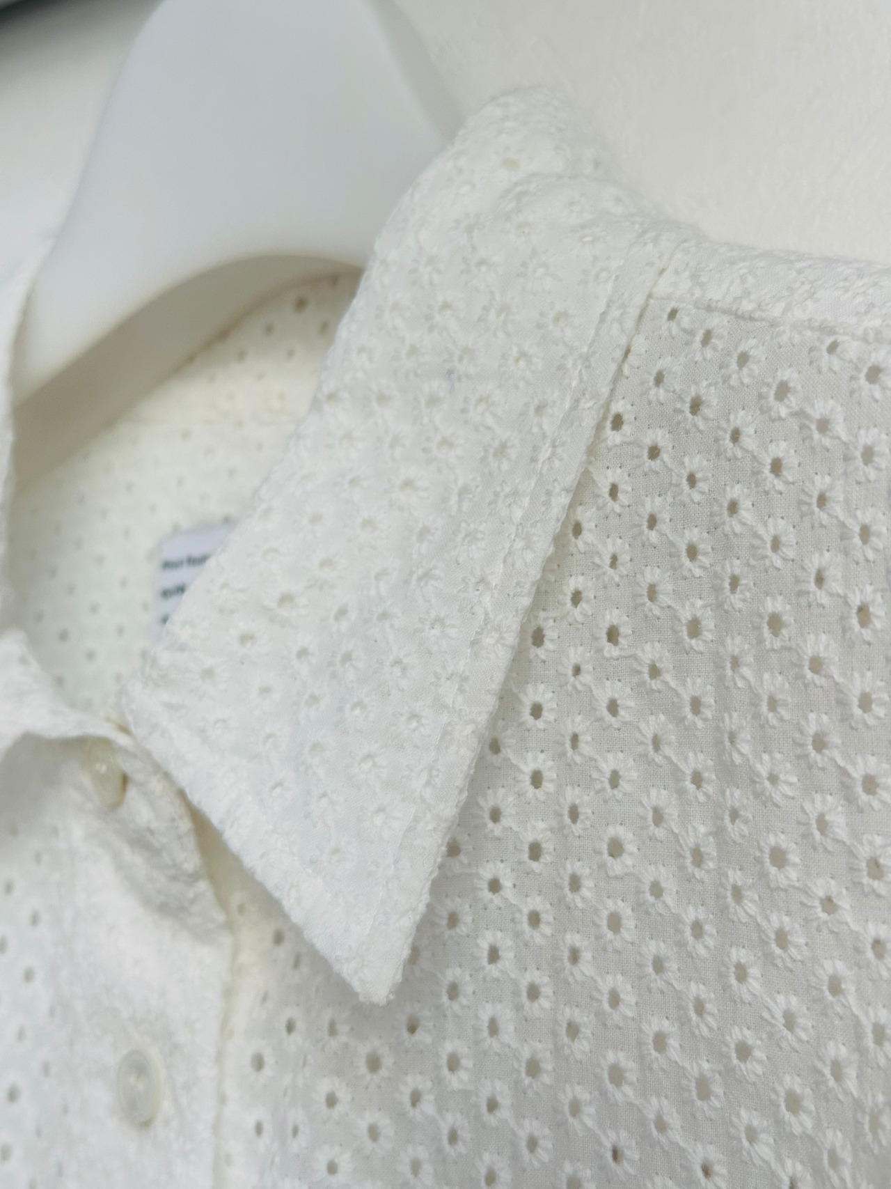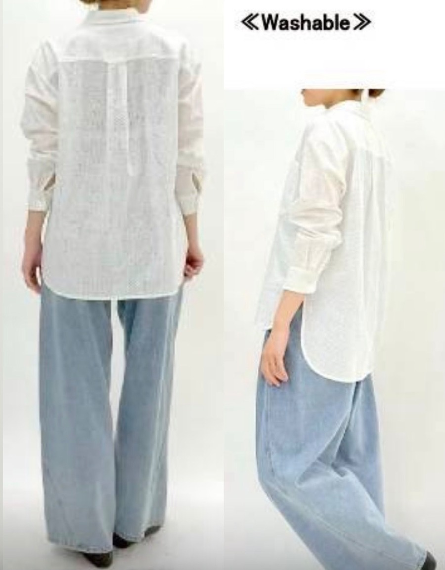 綿にドットの総レースを施したシャツブラウス