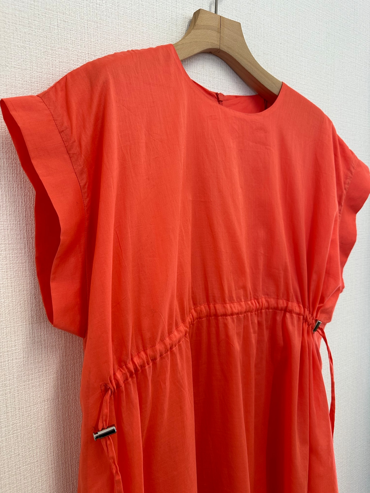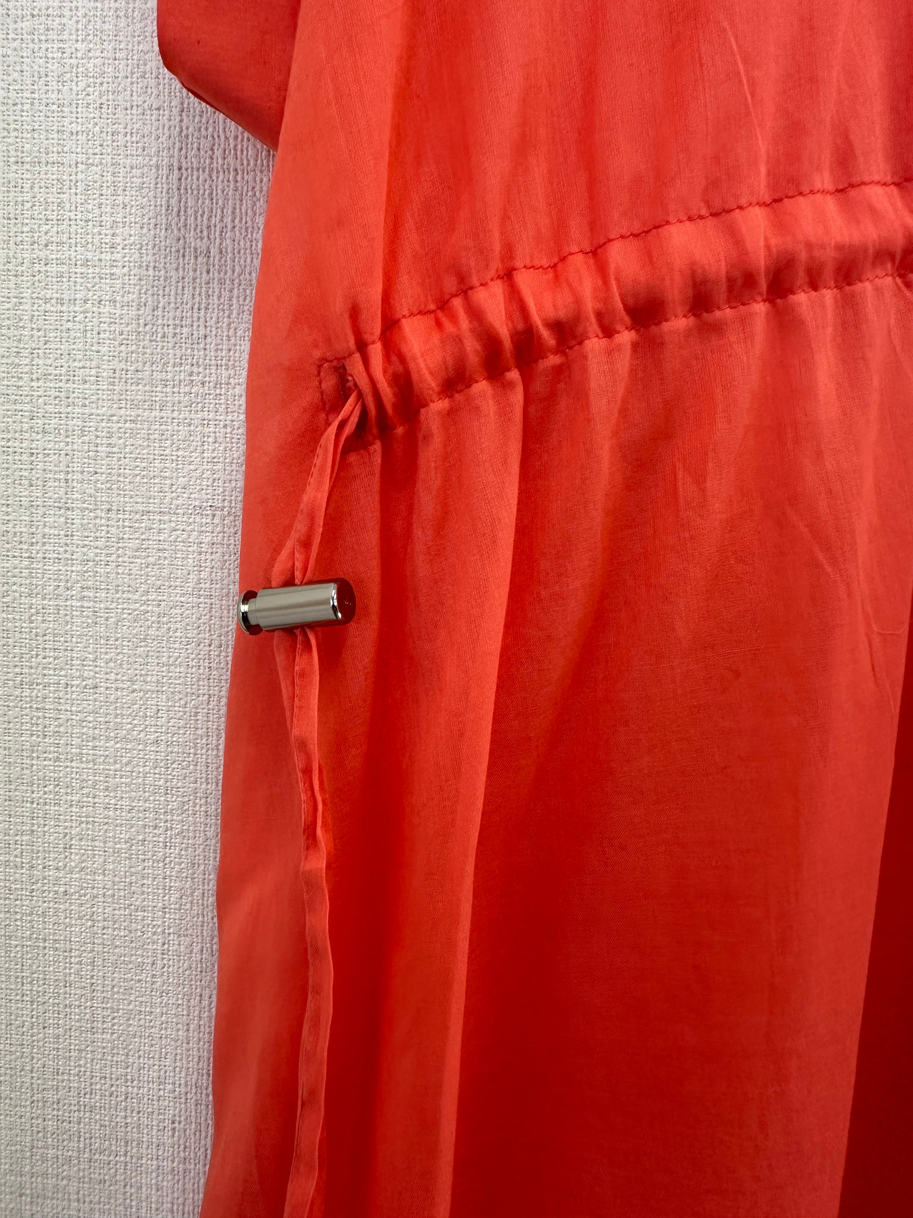ウエストに紐を通して、絞り具合で表情を変えられるデザインになっています。
