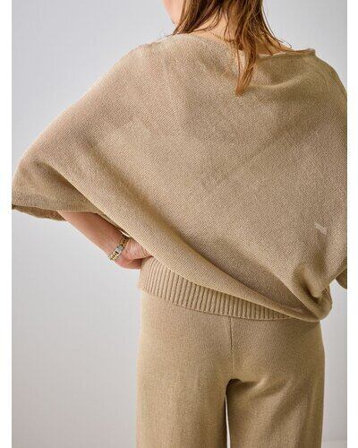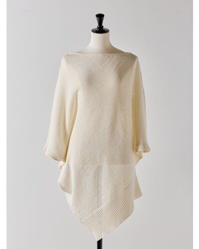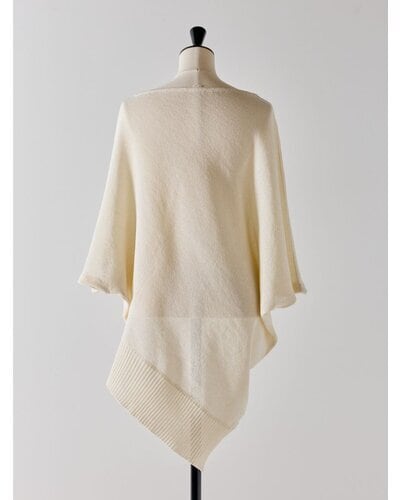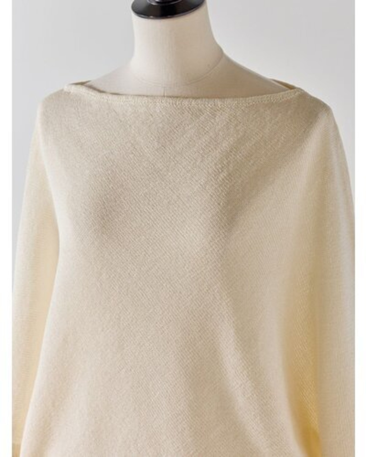 ストールのような見え方ながら、着用すると大胆なアシンメトリーシルエットが生まれ、自然と“大人の余裕”を演出します。