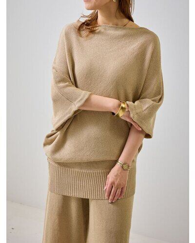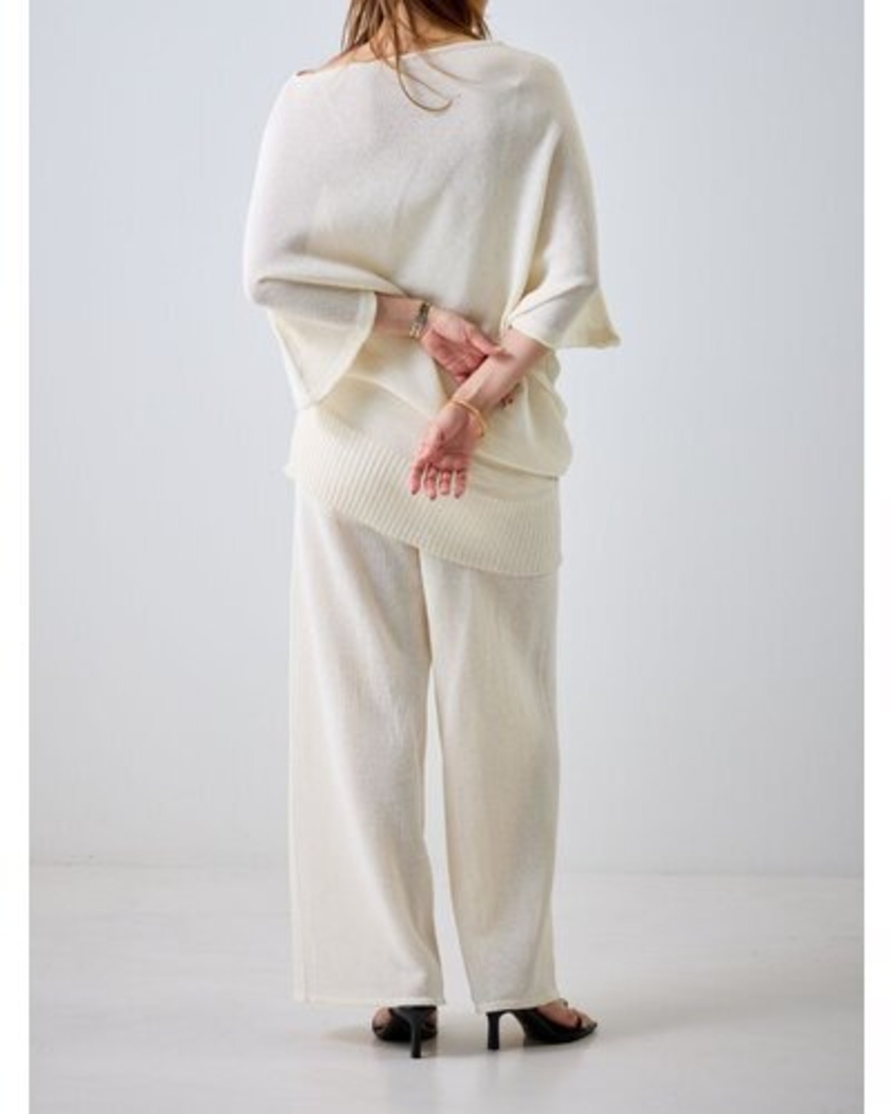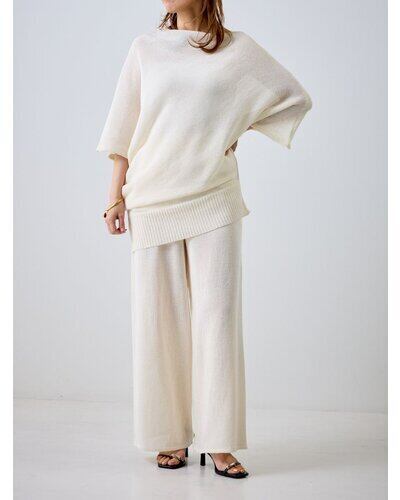 同素材のニットパンツとセットアップで着れば、きれいめなのに肩の力が抜けた、夏の理想的なラフスタイルが完成。