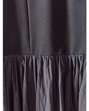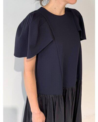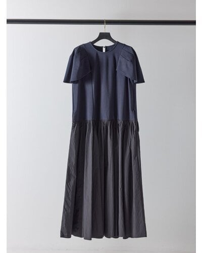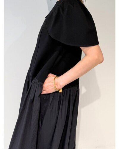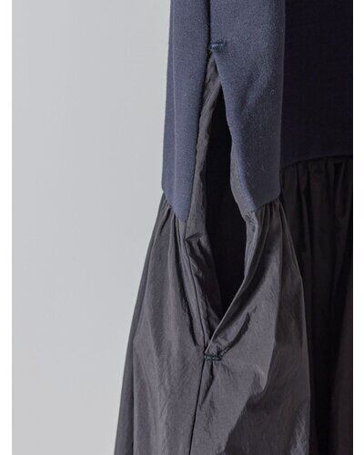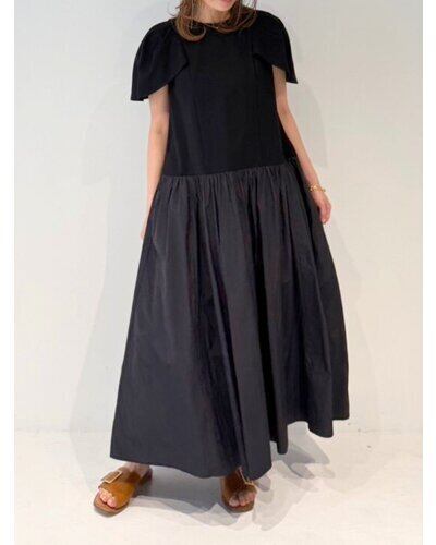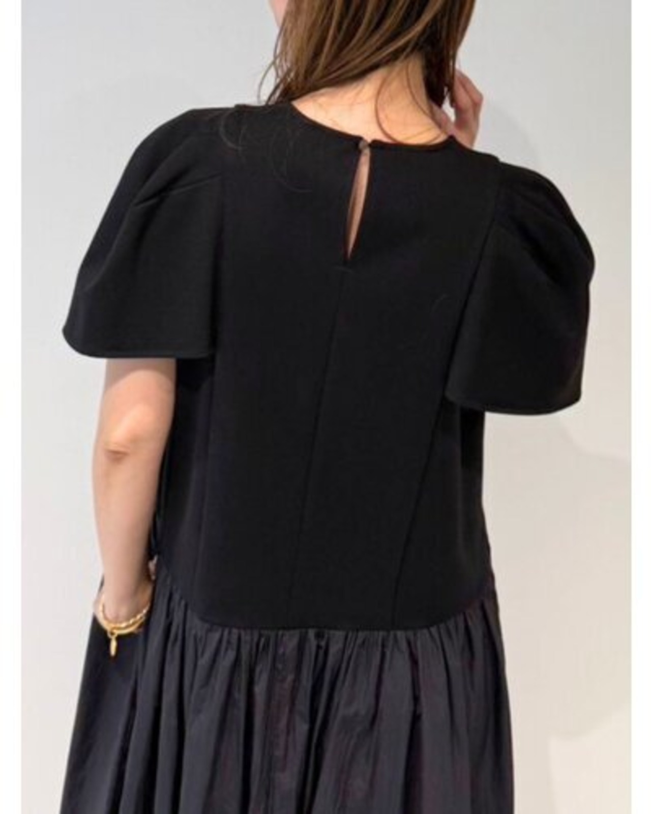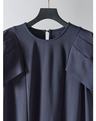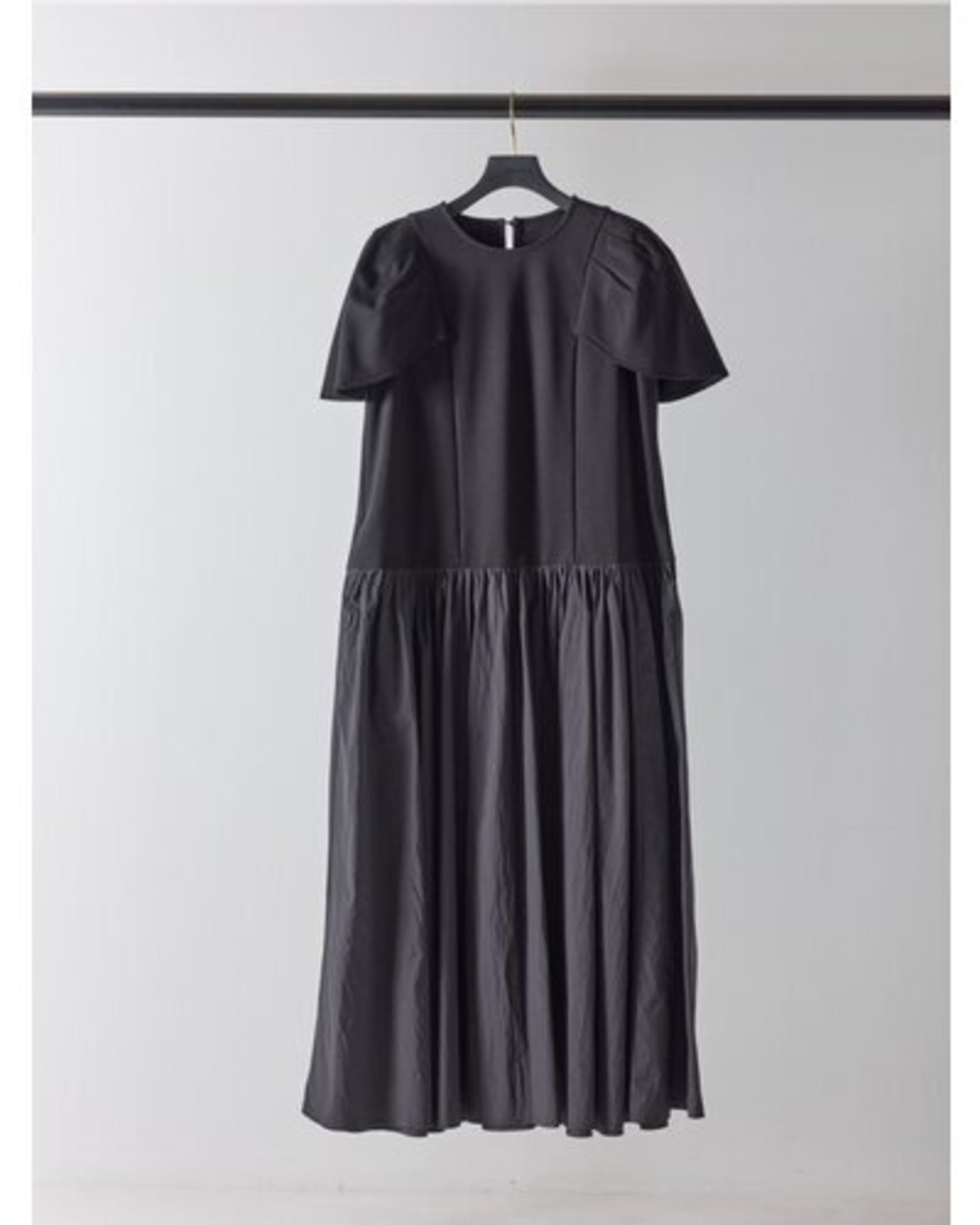 花びら(ペタル)のように重なり合う袖デザインが目を引く、モード感のあるワンピース。上身頃にはキレイめな印象の軽やかなポンチ素材を使用し、伸縮性がありながらも上品な表情で快適な着心地を実現しました。スカート部分には薄手のナイロン素材を合わせることで、異素材ミックスならではの奥行きと都会的なムードをプラス。緩やかなAラインと、ややローウエストの切り替えが落ち着きのある大人バランスを演出し、甘さを抑えた仕上がりに。きちんと感とモード感を併せ持ち、デイリーからお出かけまで幅広く活躍する、洗練カラー展開の一着です。