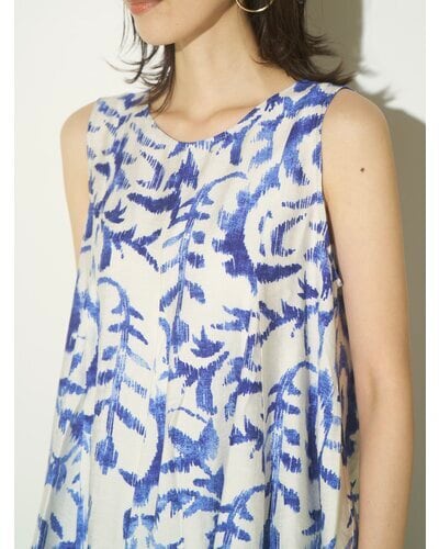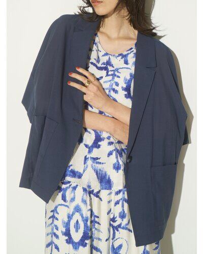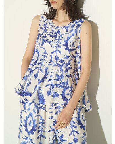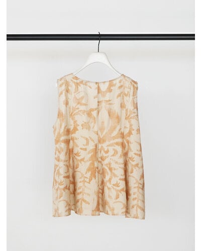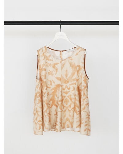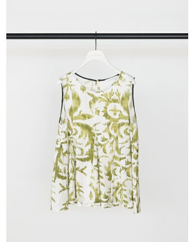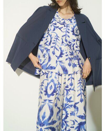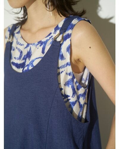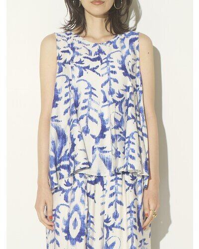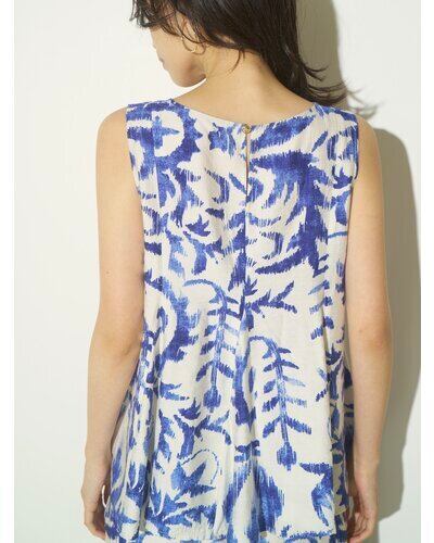 すっきりとしたノースリーブで、ジレやジャケットのインに合わせて柄を効かせるのも素敵です。