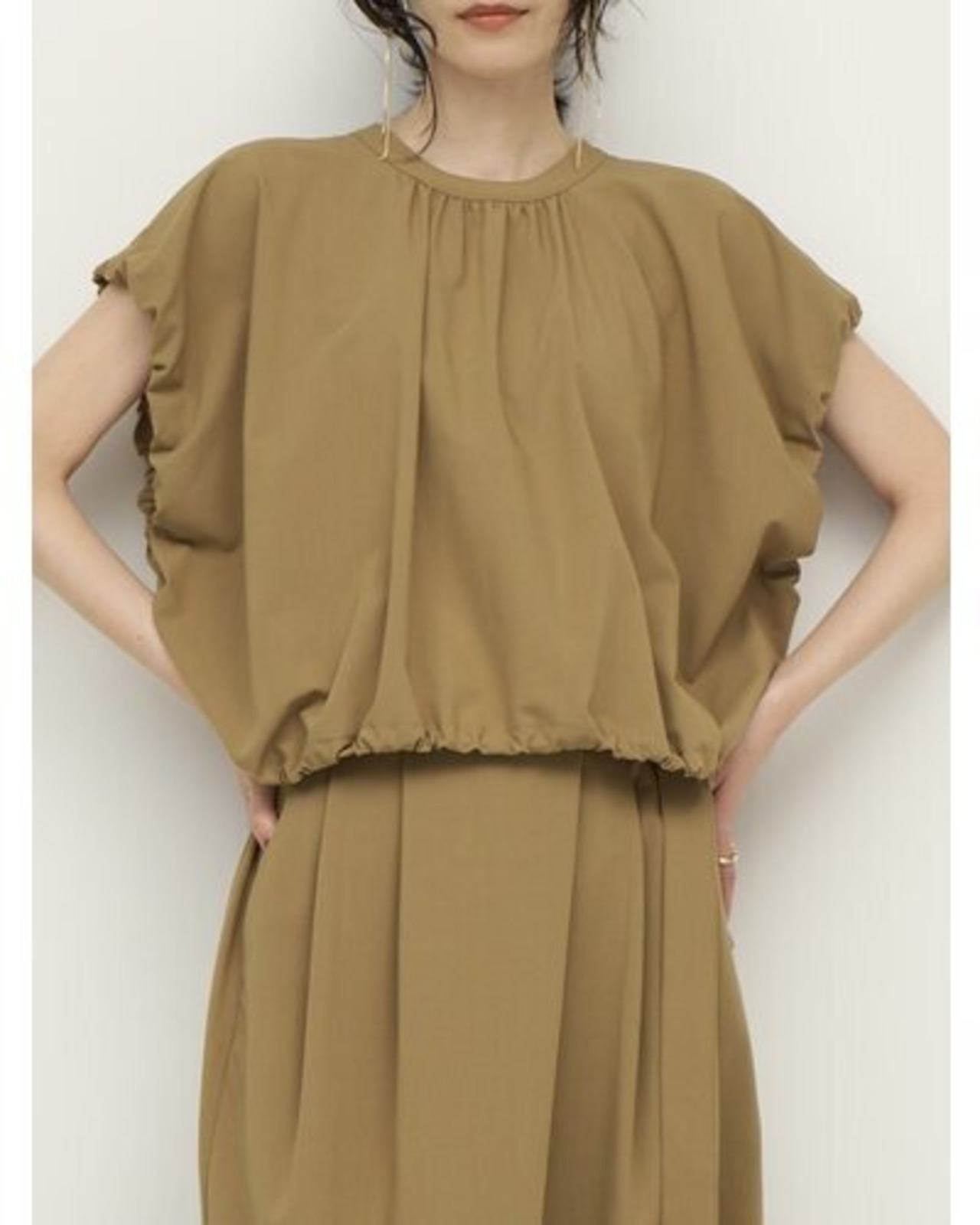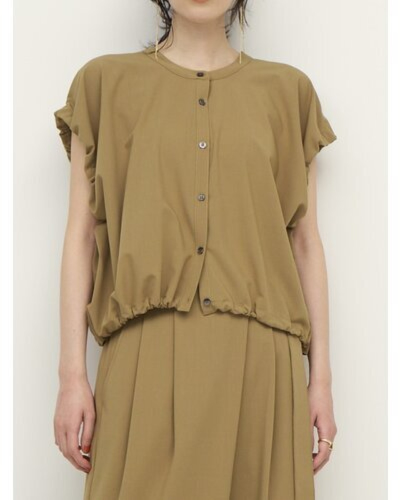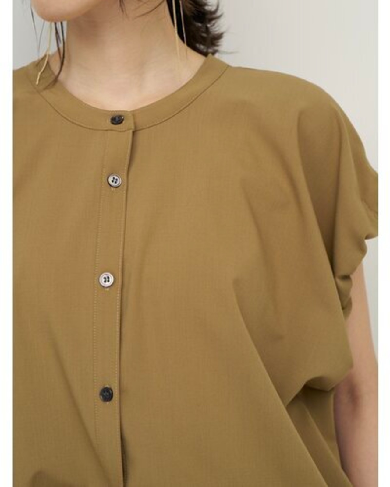 二の腕をさりげなくカバーしてくれる、立体感あるアームホールデザインがポイントのフレンチスリーブシャツ。