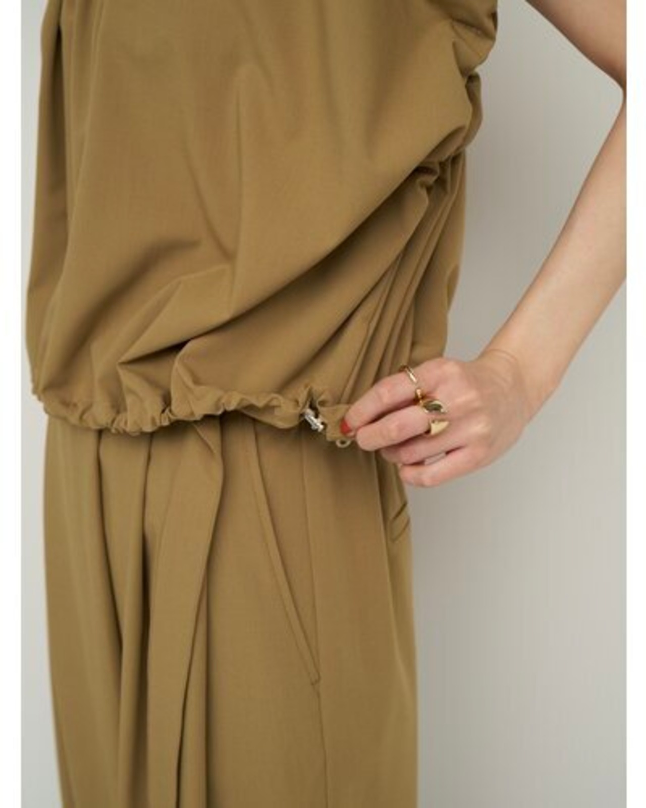 ウエストにはストレッチコードを入れているので、ギャザーを寄せて調節することができます。
