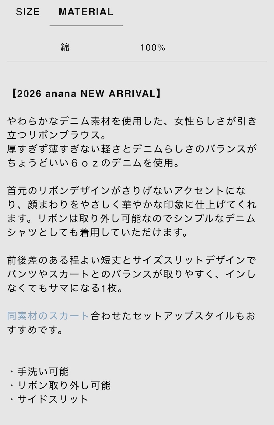 2WAYボウタイデニムシャツ (setup対応)a56-009 anana