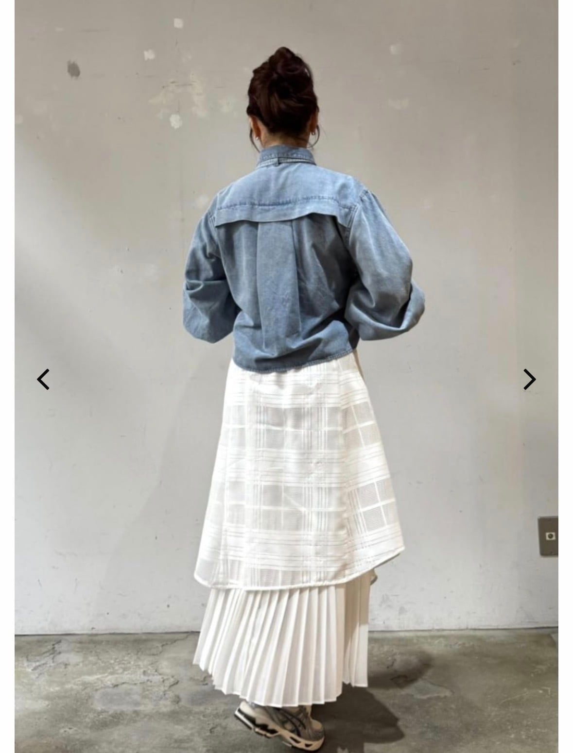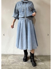 同素材のスカート合わせたセットアップスタイルもおすすめです。