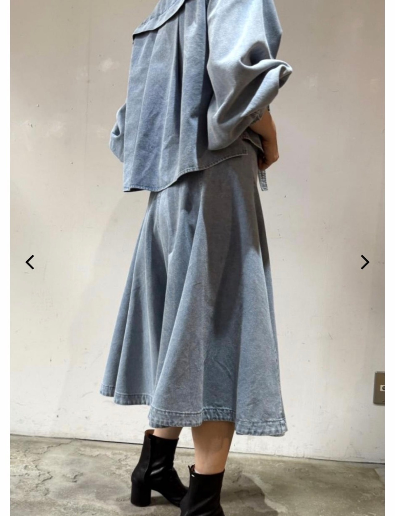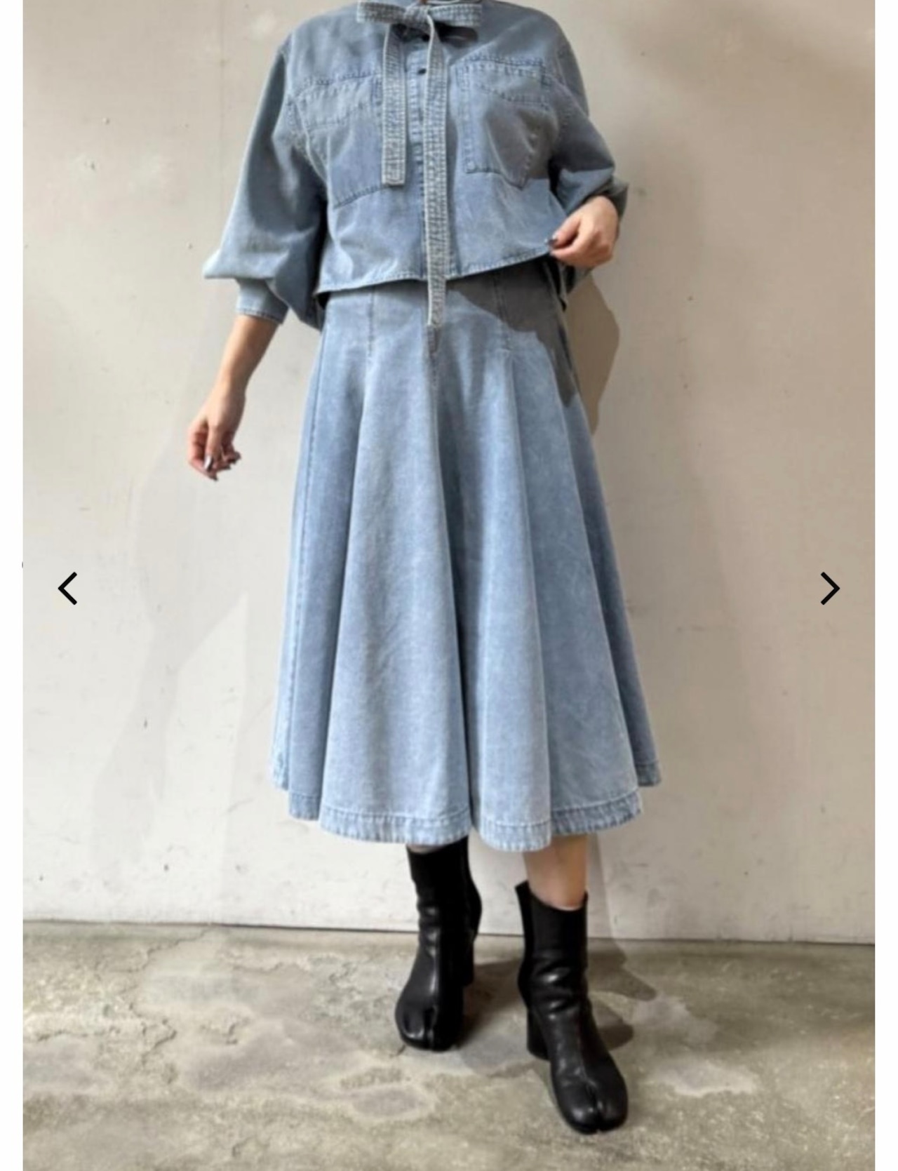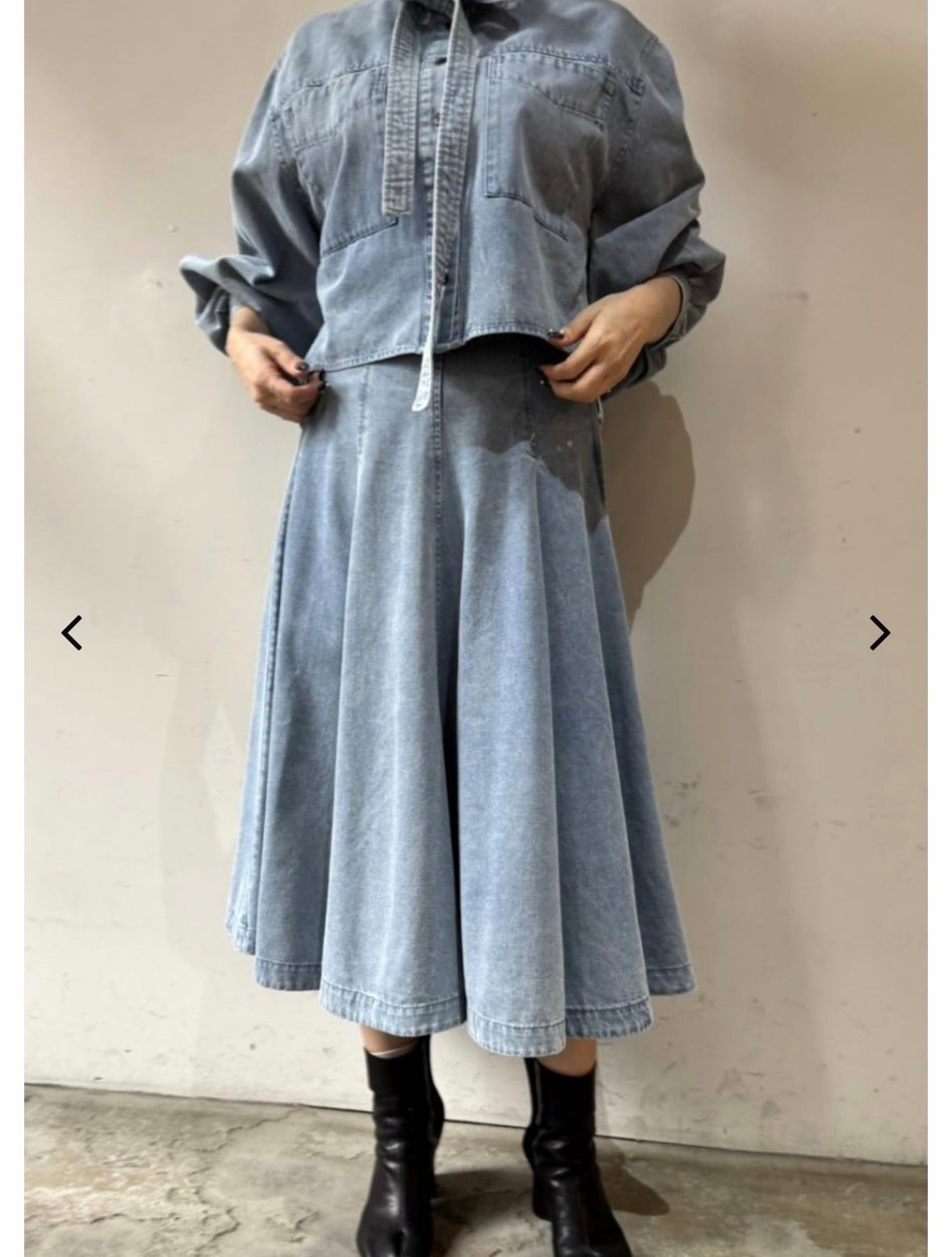 やわらかなデニム素材を使用した、動きのあるフレアシルエットが魅力のスカート。