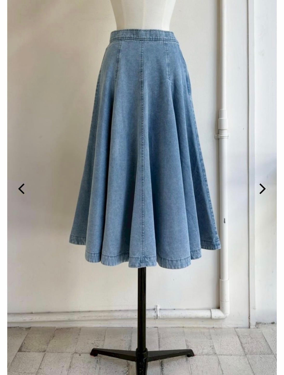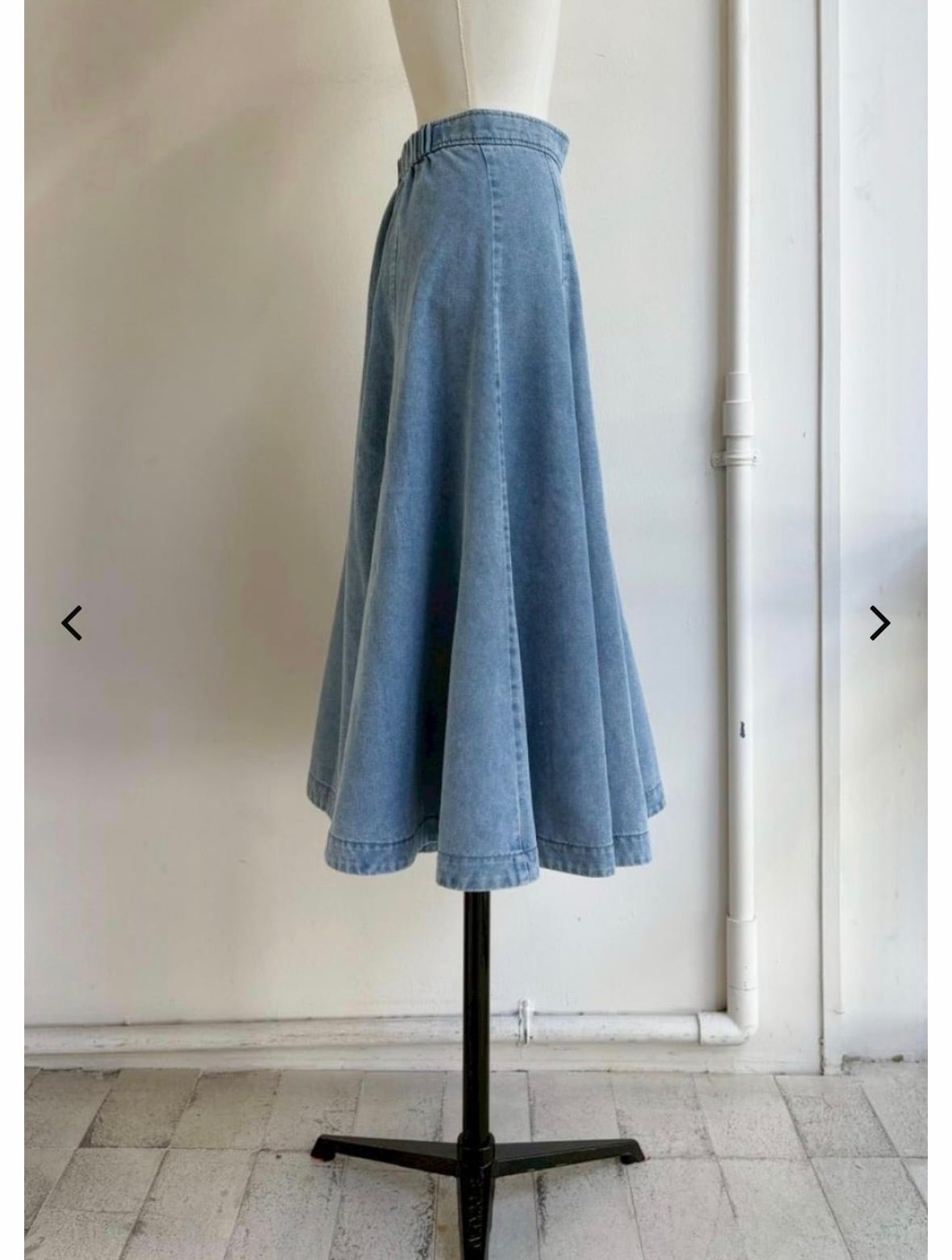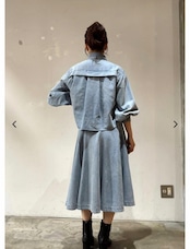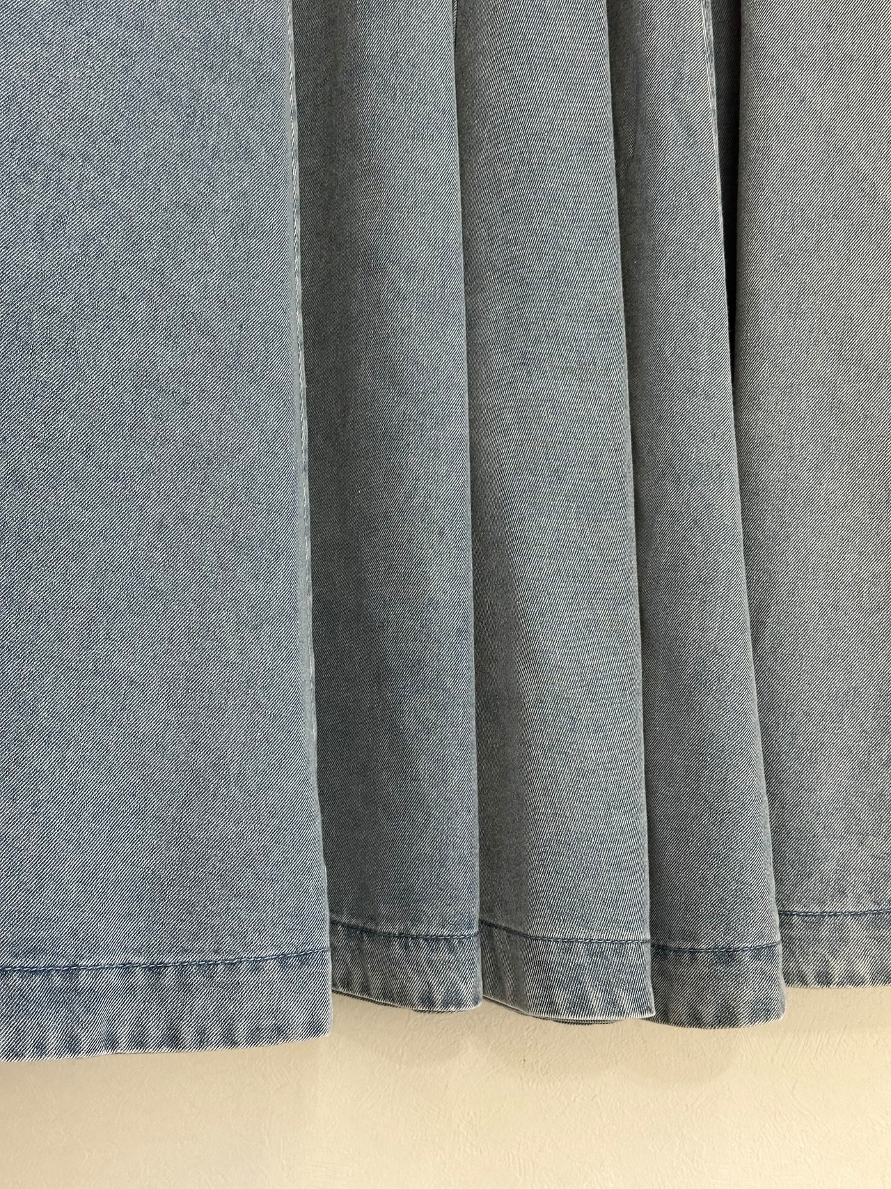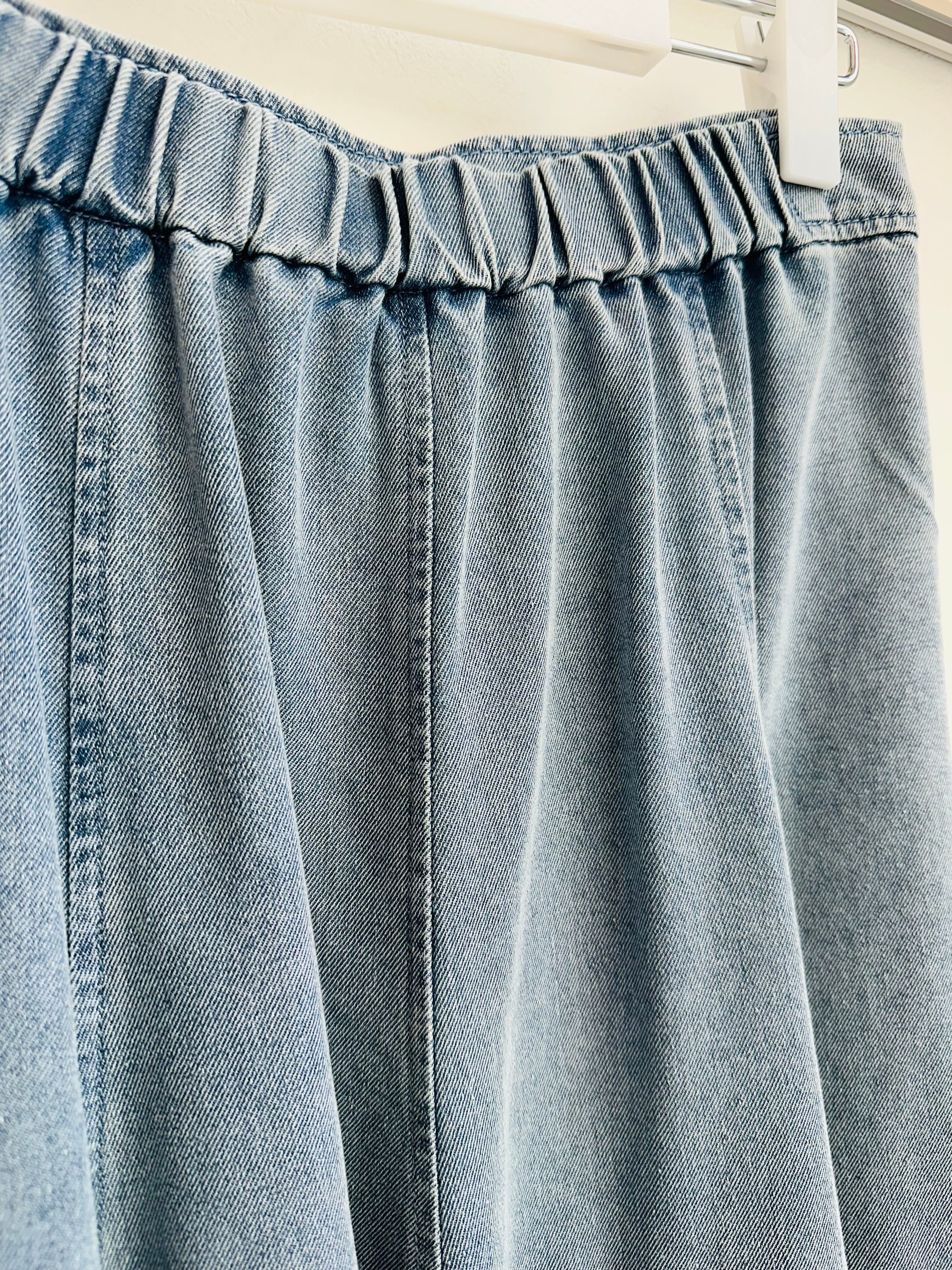 やわらかなデニム素材を使用した、動きのあるフレアシルエットが魅力のスカート。