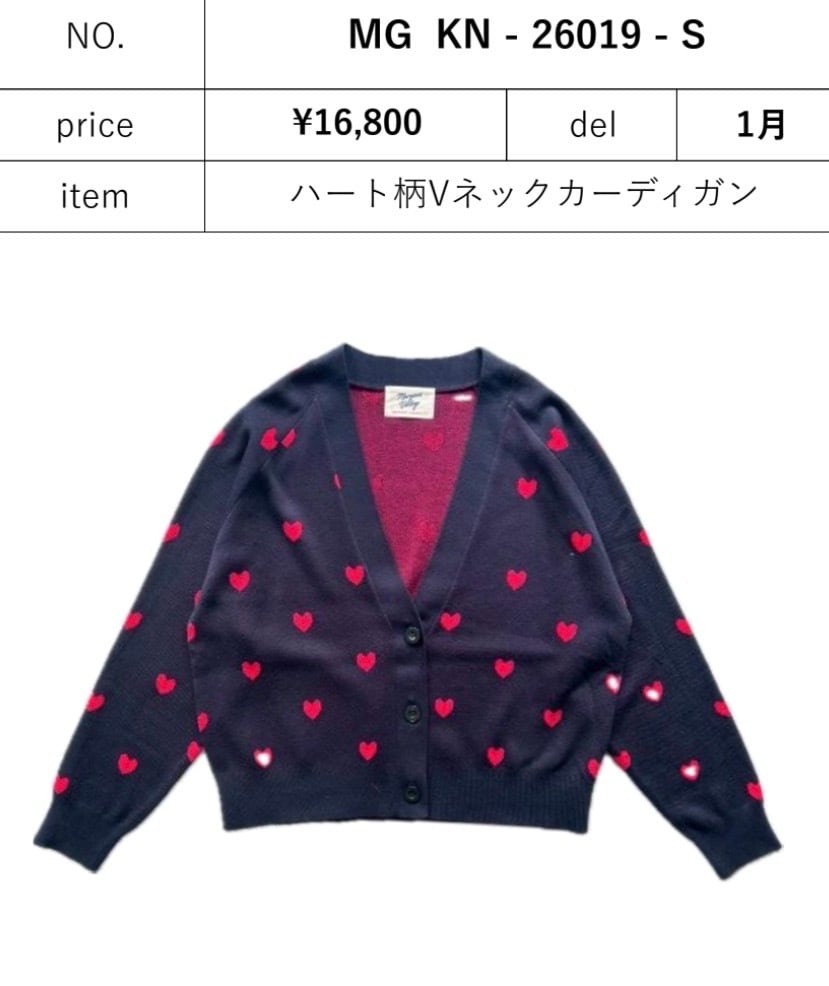 ❤︎POPUP❤︎ ハート柄Vネックcardigan MG KN 26019 -S MARGAUX 2601-008