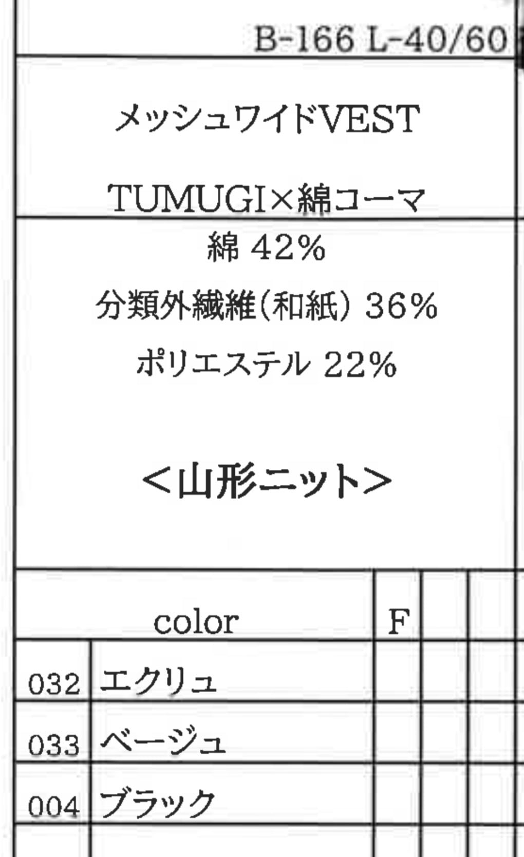 ●特設ページでご予約● メッシュワイドVEST TUMUGI*綿コーマ 10268954 ante aciem 2603-005