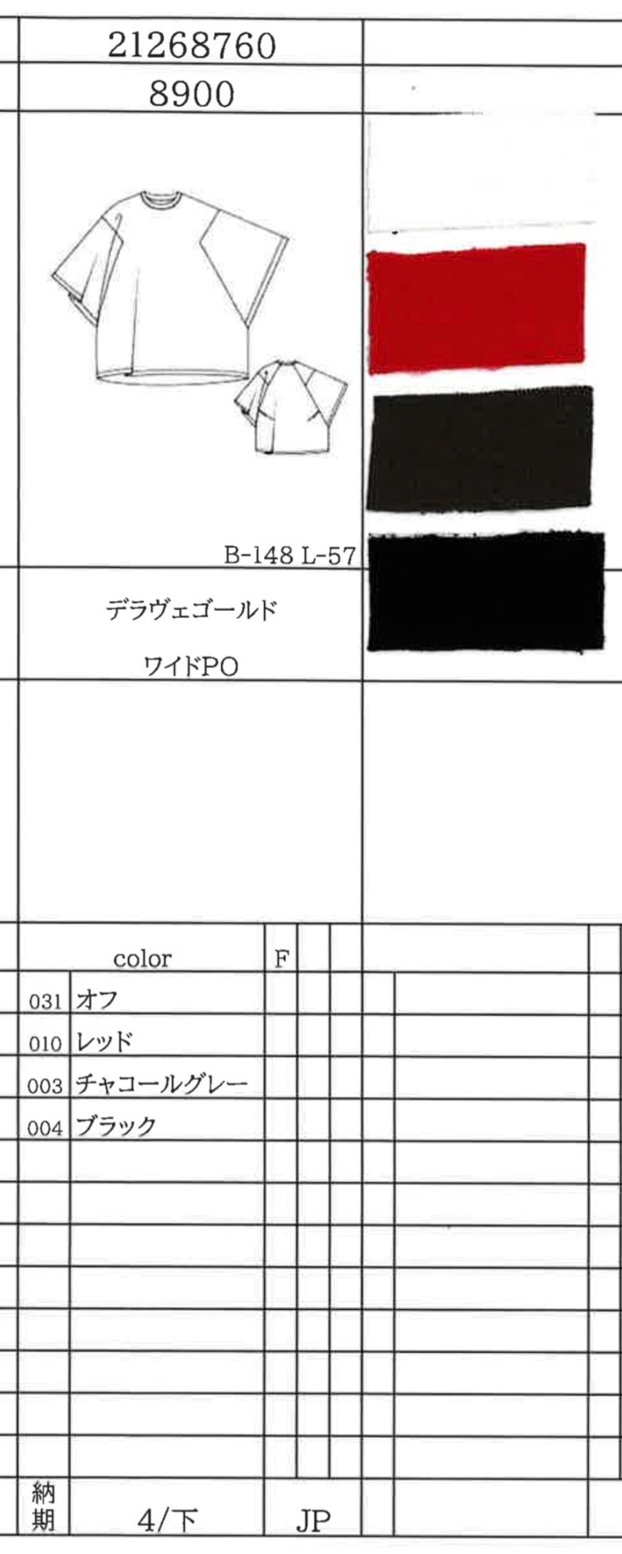 ●特設ページでご予約● デラヴェゴールド ワイドpullover 21268760 ante aciem 2604-005