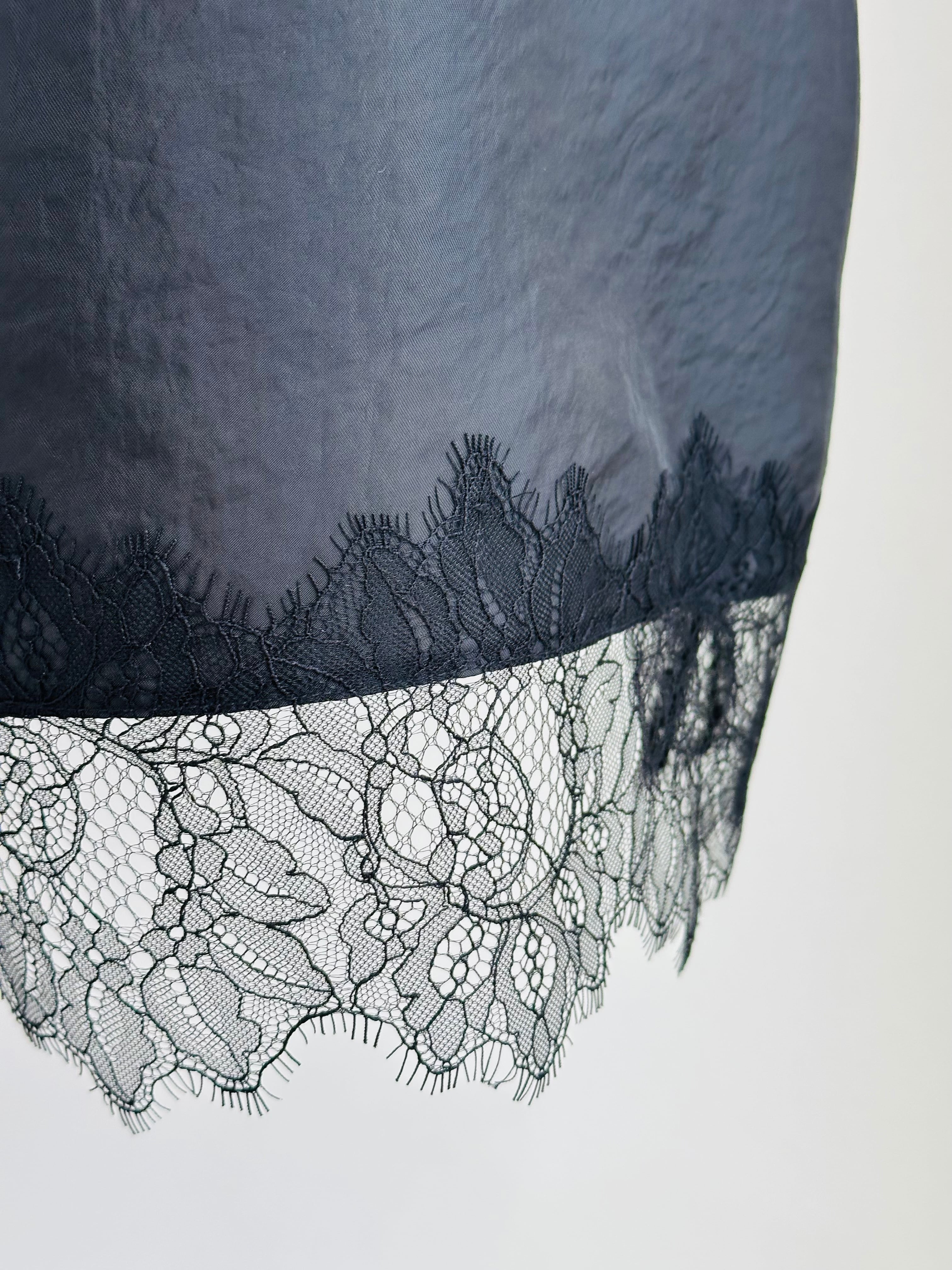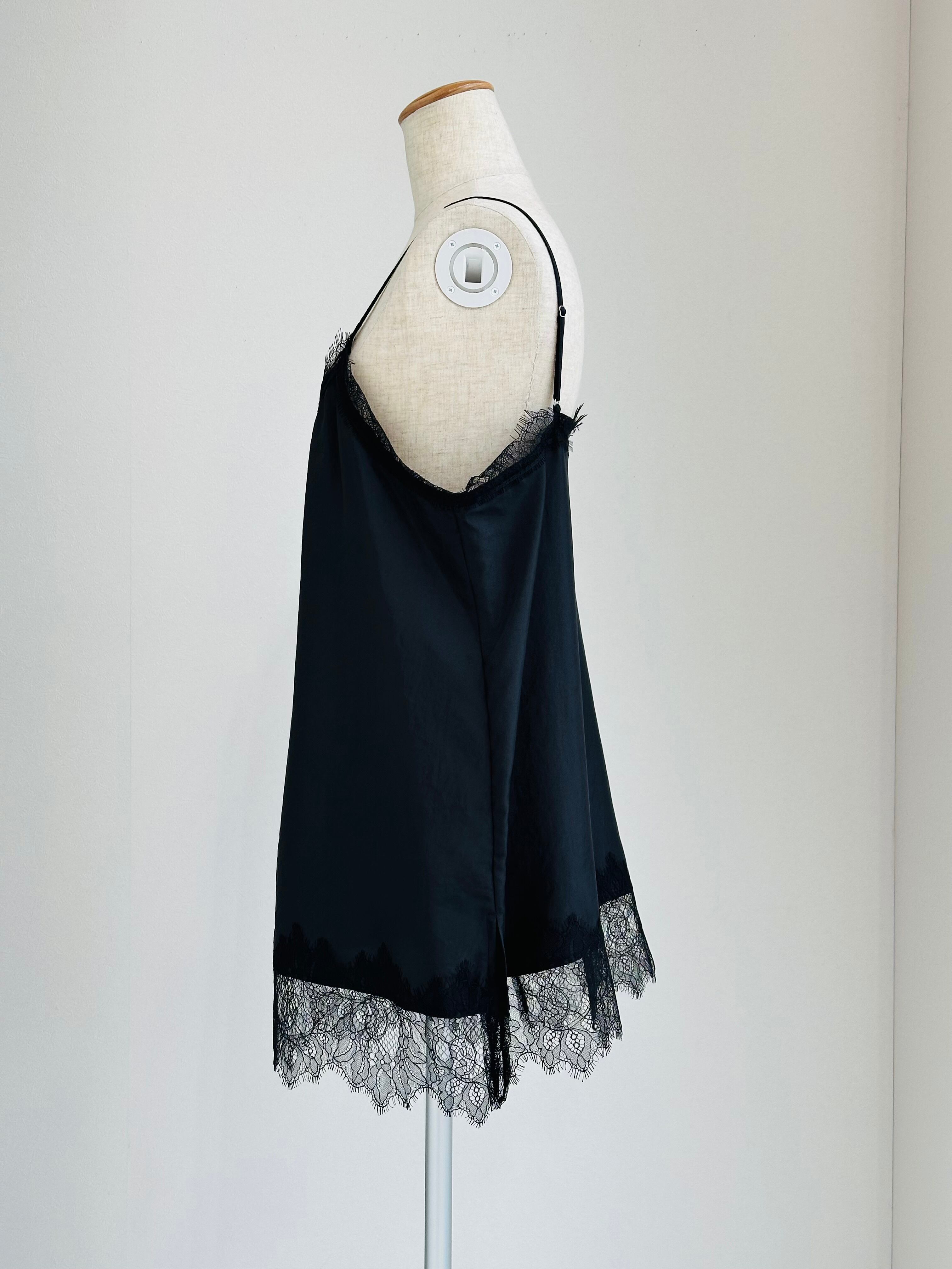 ヒップにかかる丈のキャミソールは繊細なレースを使用したランジェリー風なデザイン。