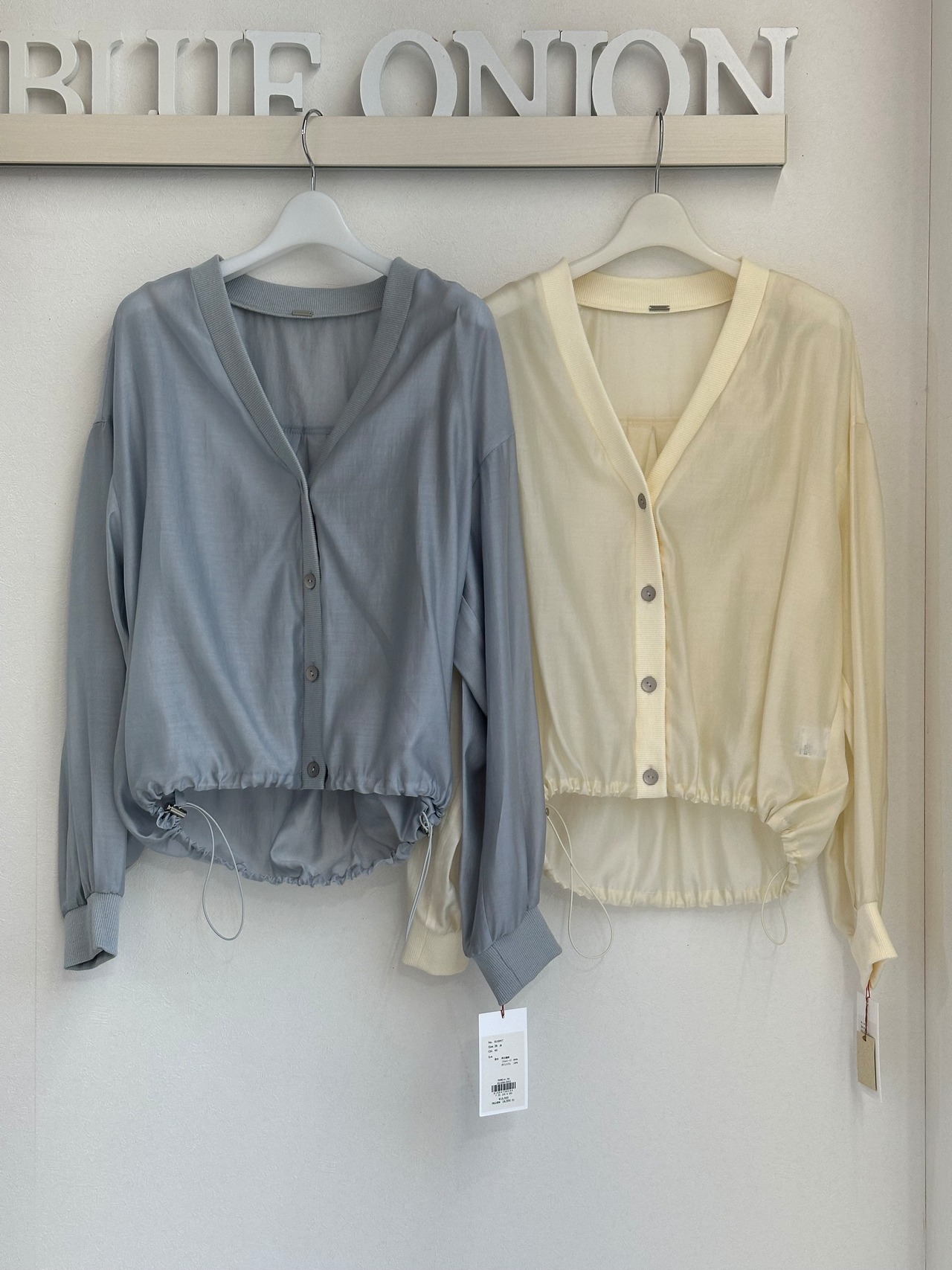 袖リブ裾ドローブラウスカーディガン