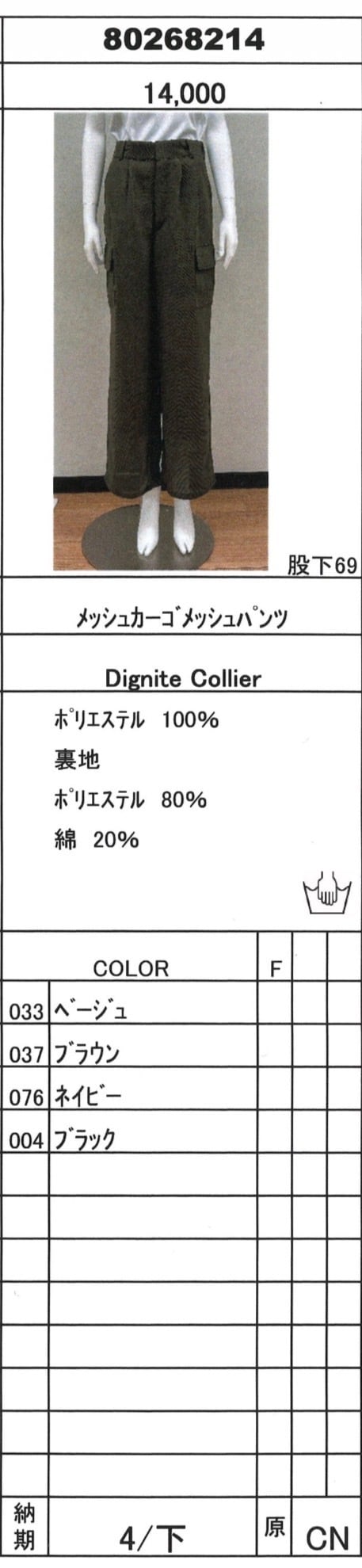 ●特設ページでご予約● メッシュカーゴpants (set up対応)80268214 dignitecollier 005-2604