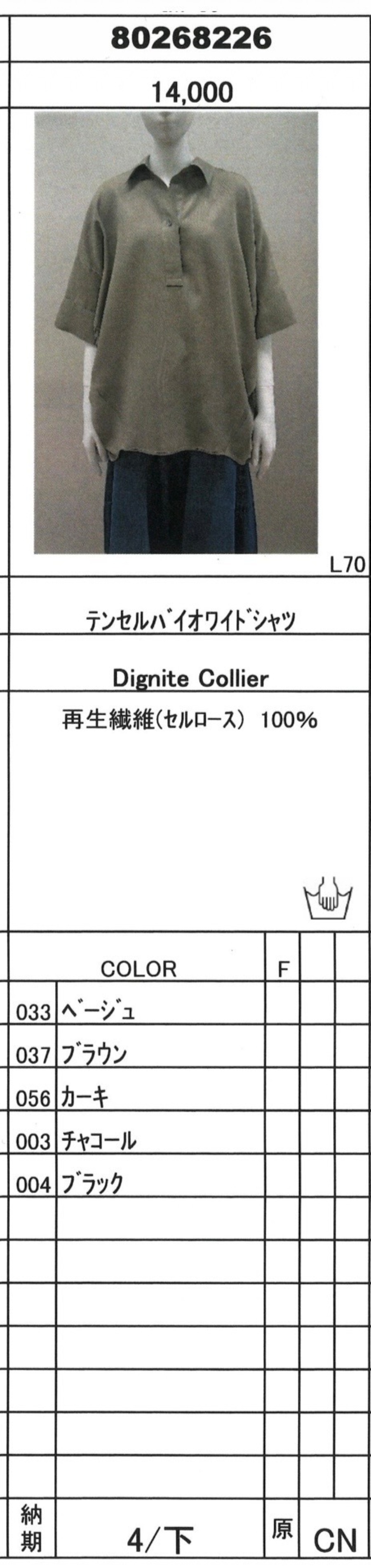 ●特設ページでご予約● テンセルバイオワイドshirt (set up対応) 80268226 dignitecollier 005-2604