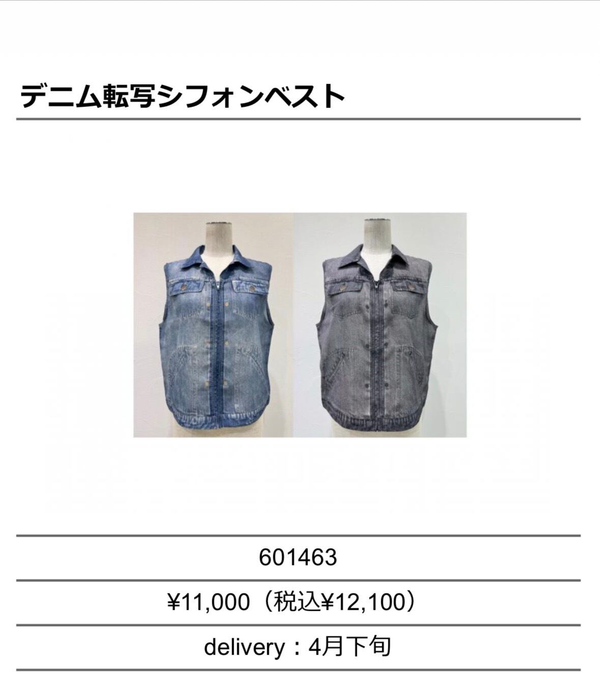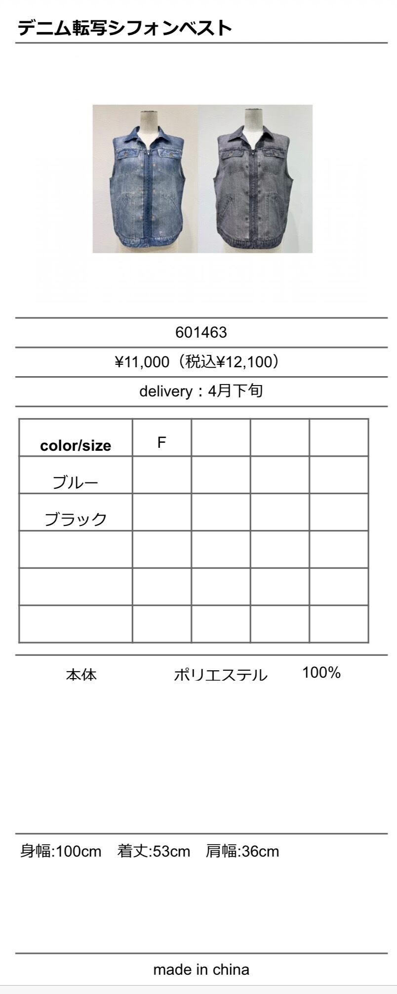 ◆特設ページでご予約◆ デニム転写シフォンベスト 601463 cyantokyo 003-2604