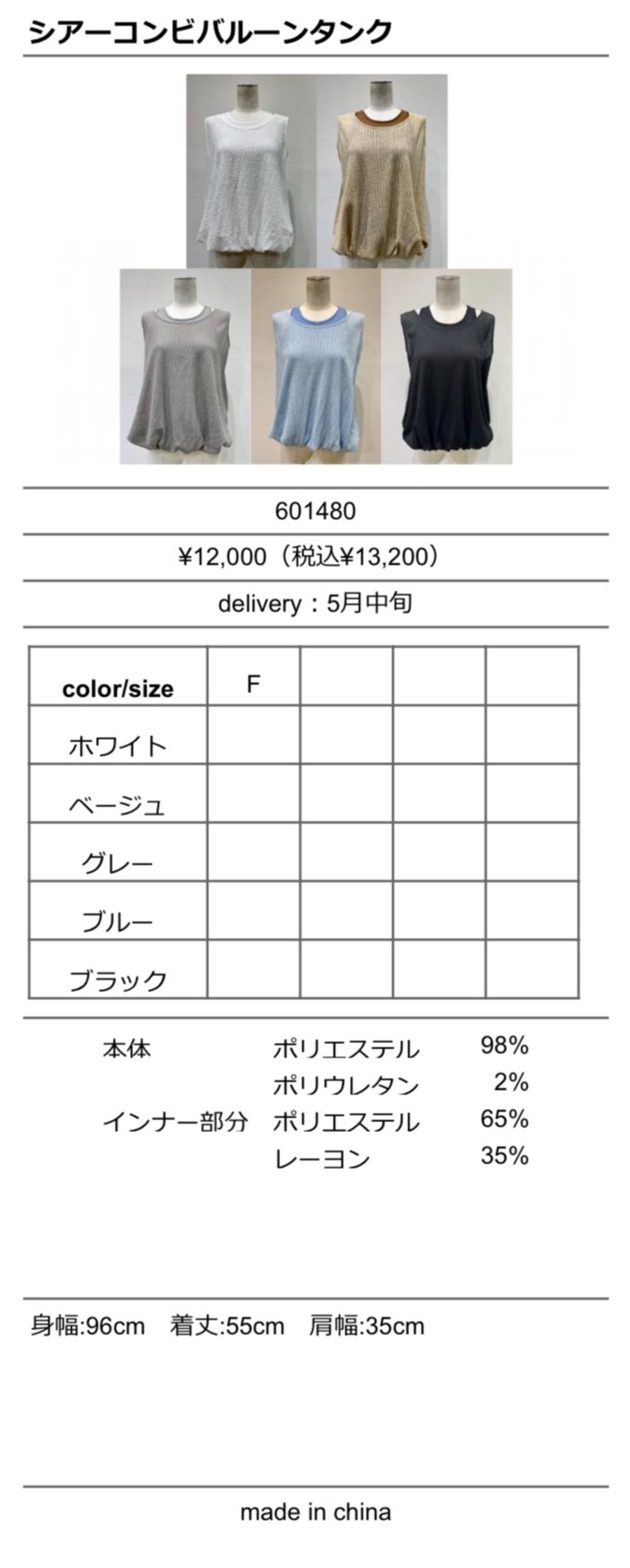 ◆特設ページでご予約◆ シアーコンビバルーンタンク 601480 cyantokyo 003-2605