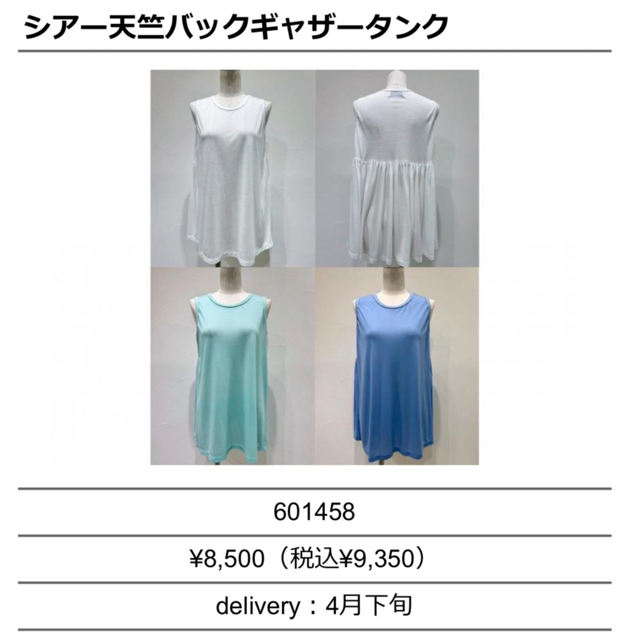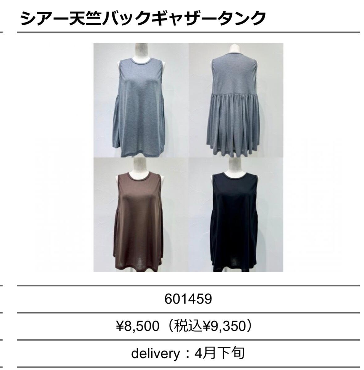 ◆特設ページでご予約◆ シアー天竺バックギャザータンク 601458 601459 cyantokyo 003-2604