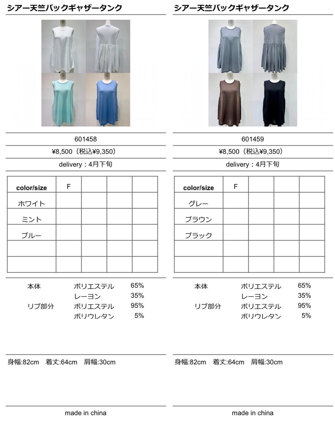 シアー天竺バックギャザータンク