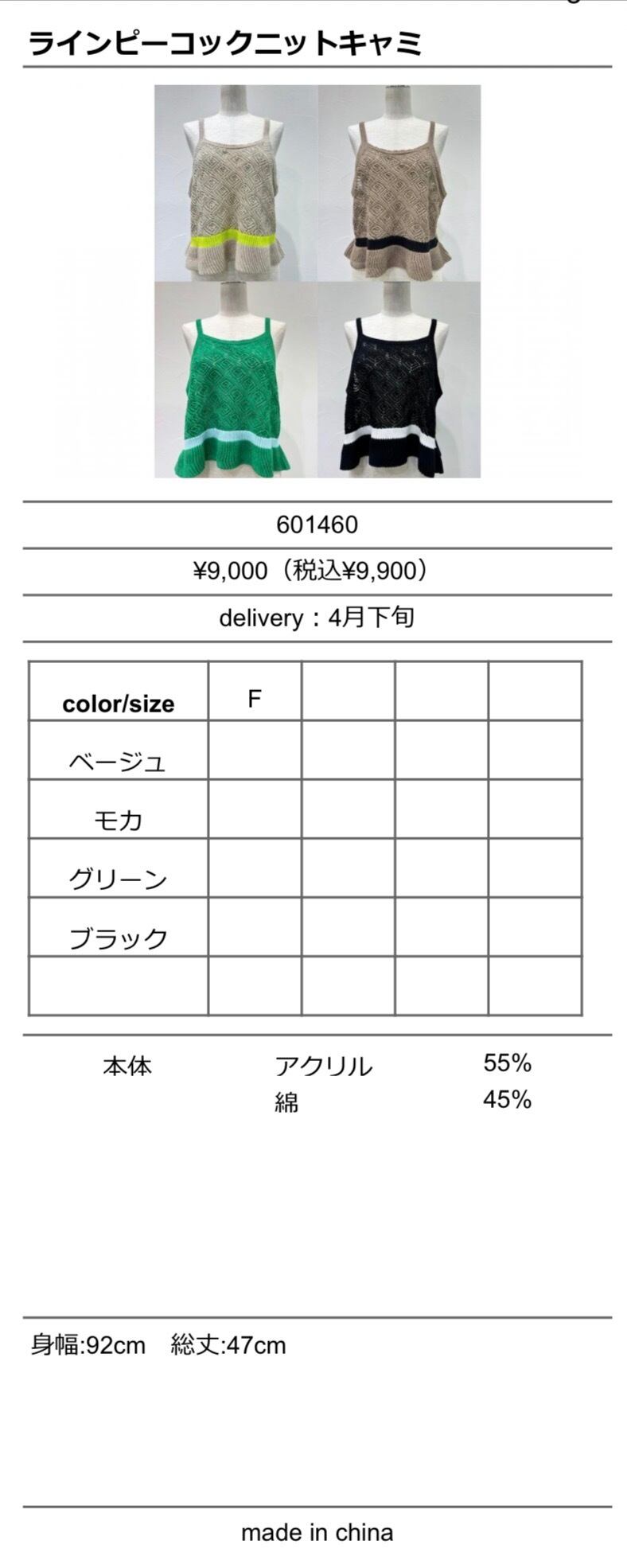 ◆特設ページでご予約◆ ラインピーコックニットキャミ 601460 cyantokyo 003-2604
