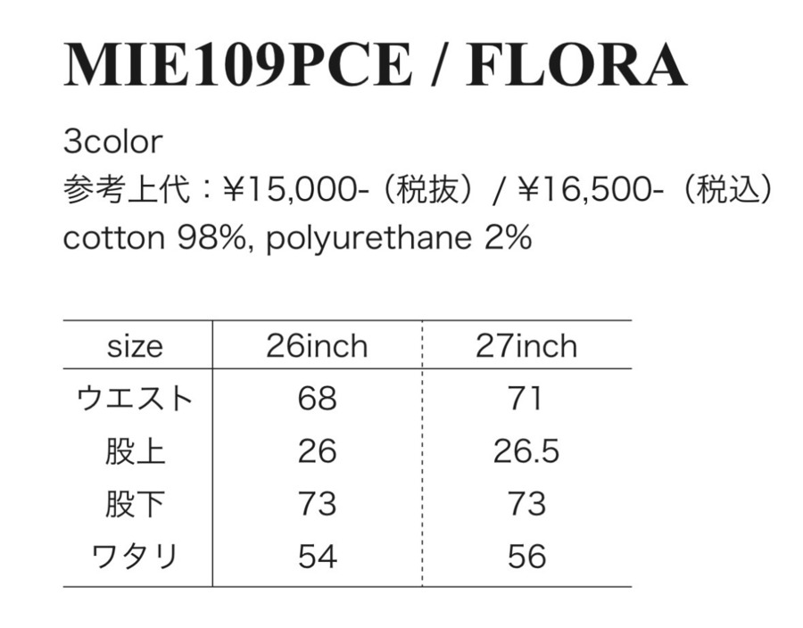 フレアdenim MIE109PCE micalle micalle