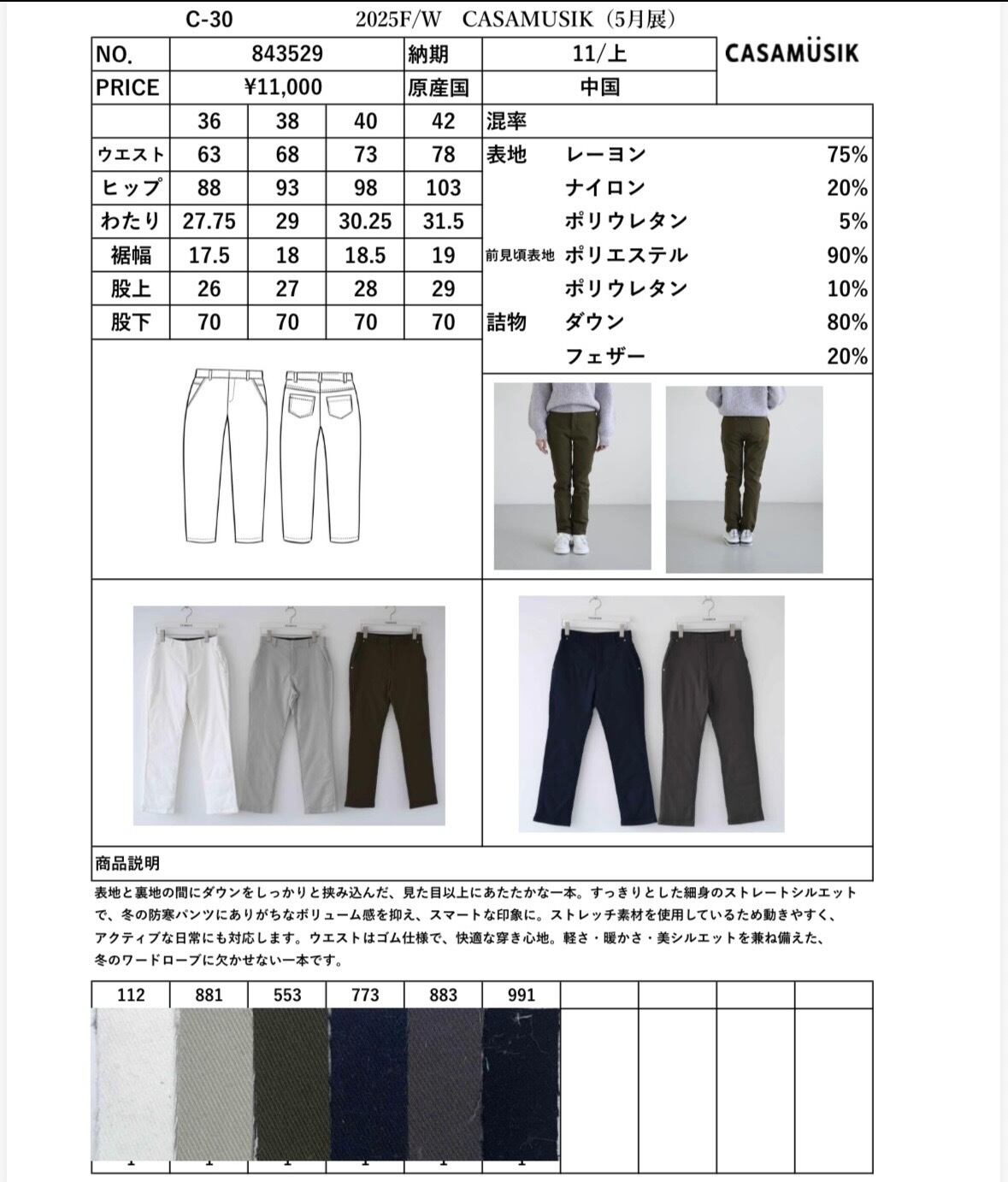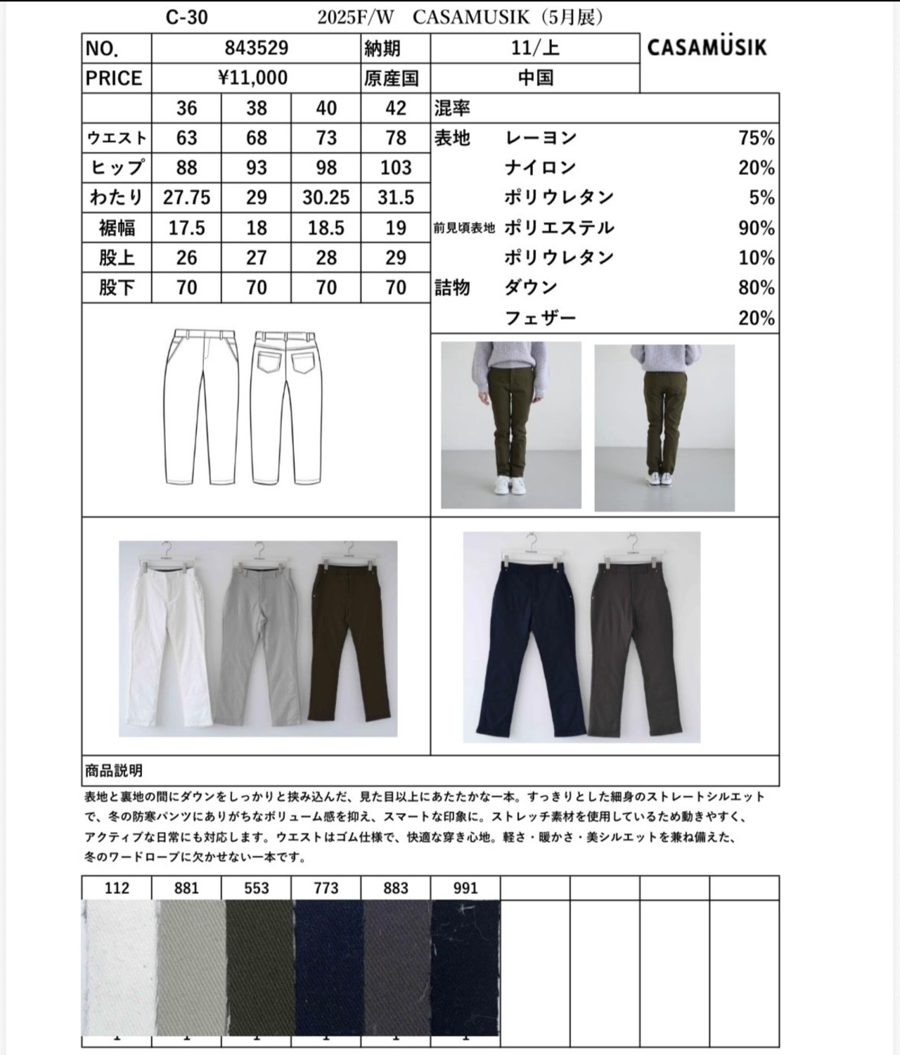 ダウンパンツ
