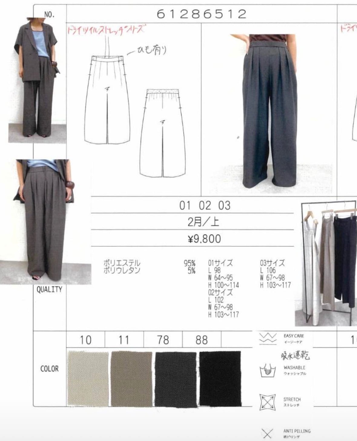 ドライタッチインタックパンツ setup対応 612- 86512 cloche