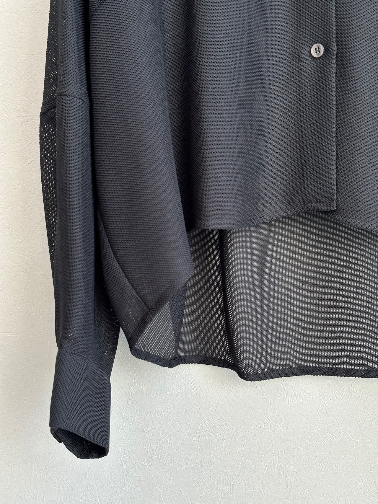 からみメッシュの立体的な表面感がありドライタッチな素材を使用した季節の変わり目にも着やすいシャツです。