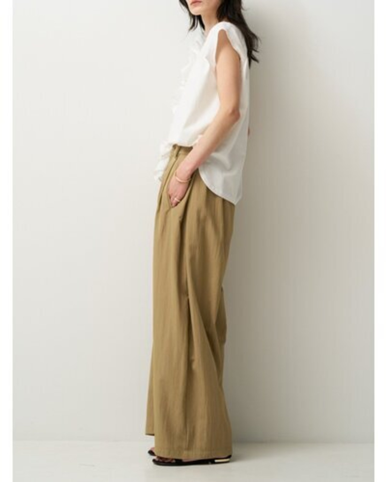 静かに女性らしさがにじむ日常服