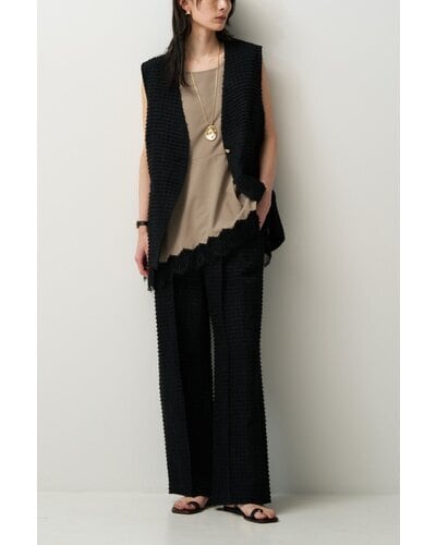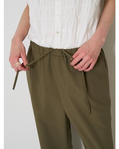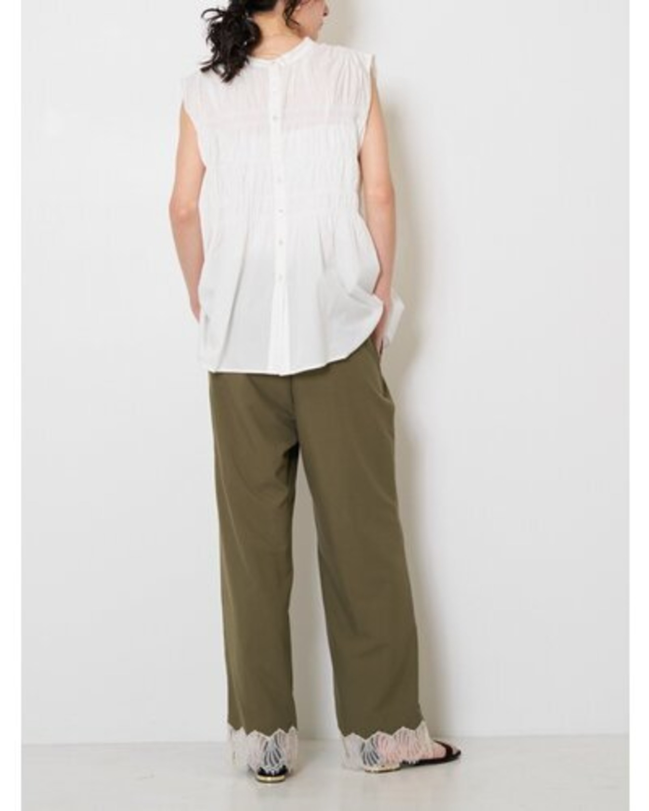 全体に綺麗めな印象なのに、ウエストはぐるりゴム入りでイージーに履ける