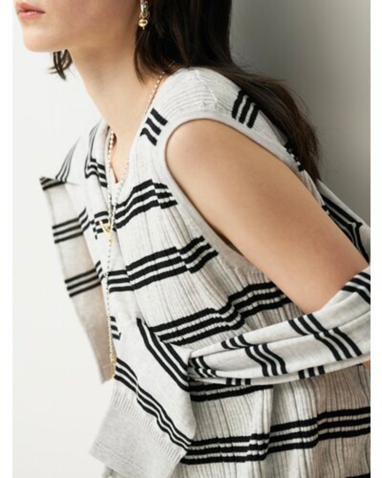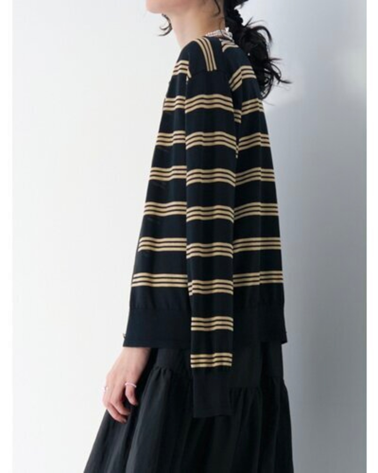 リズミカルな細ピッチボーダー2色は、スタイリングのアクセントにもおすすめ。