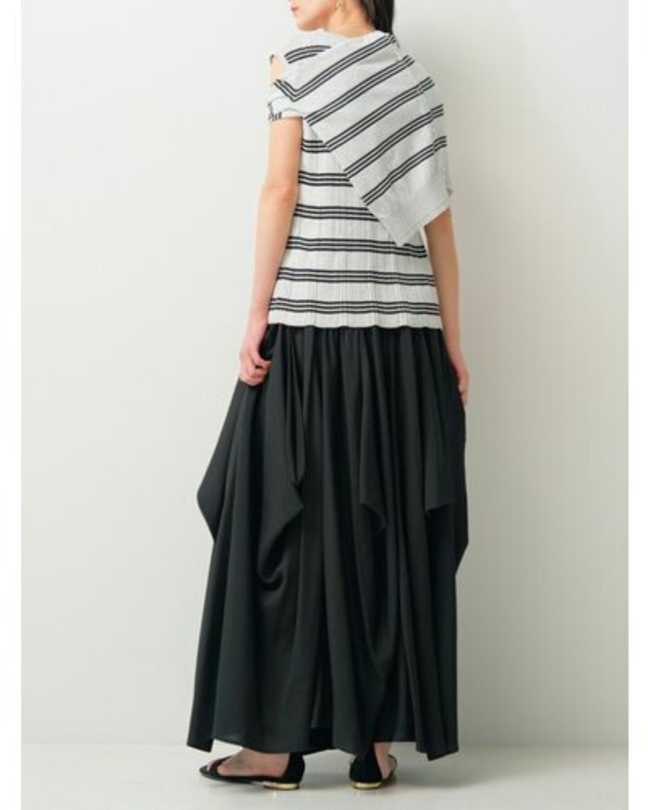 トップスとしてはもちろん、肩や腰に巻くなど、アレンジも楽しめます。