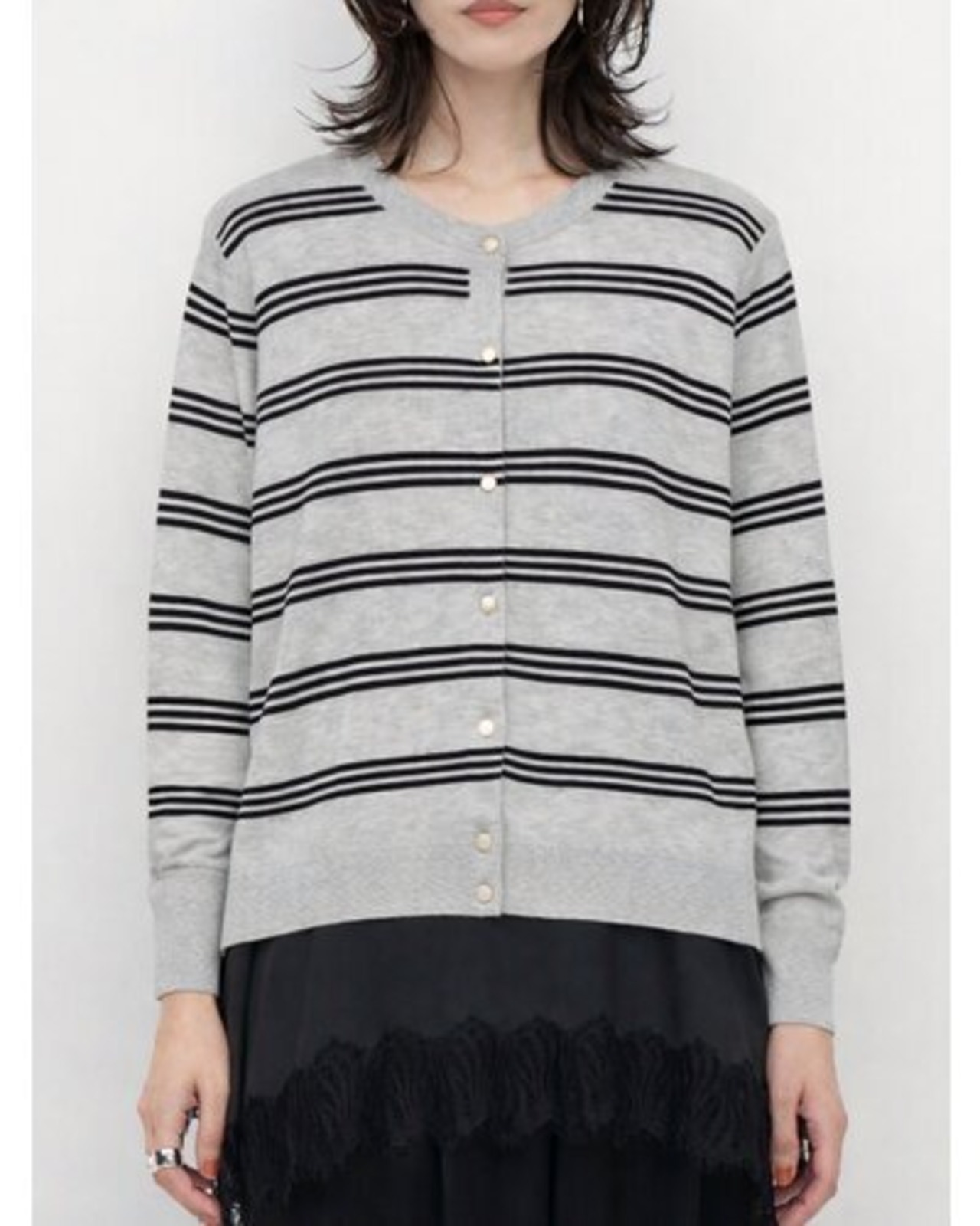 無地とボーダーはベースカラーが共通なので、無地と柄とでアンサンブル着用も可能です。