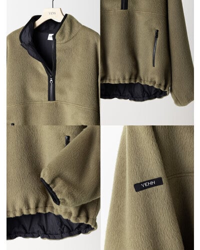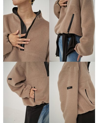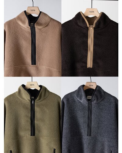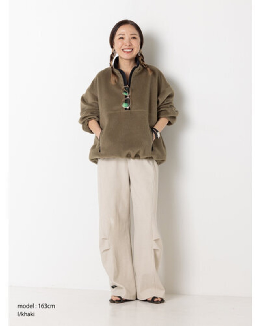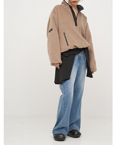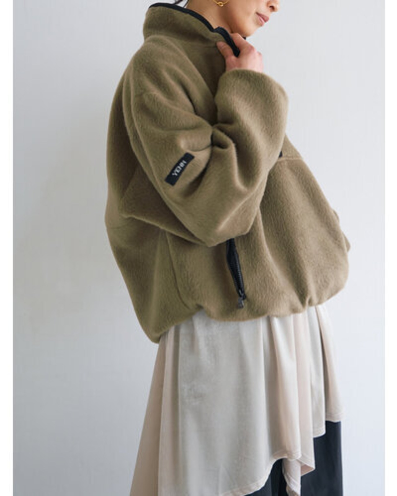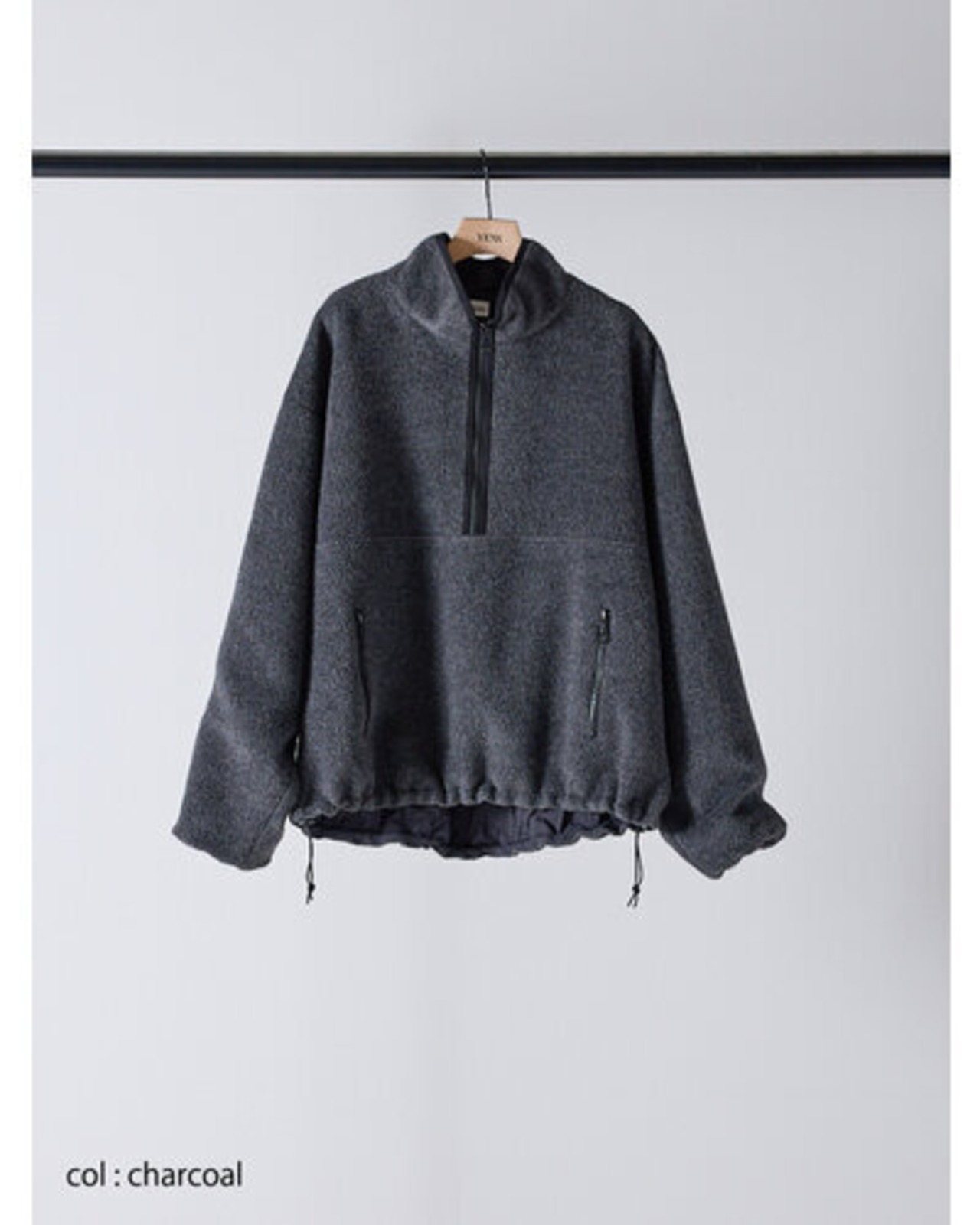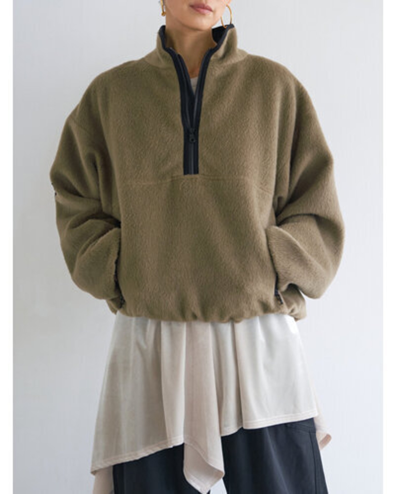 アウトドア製品にあるようなハーフジップのアウターをタウン仕様に落とし込みました。定番のファーやボアではなく