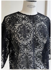 繊細なフラワーモチーフが目を惹く上品な総レースブラウス。