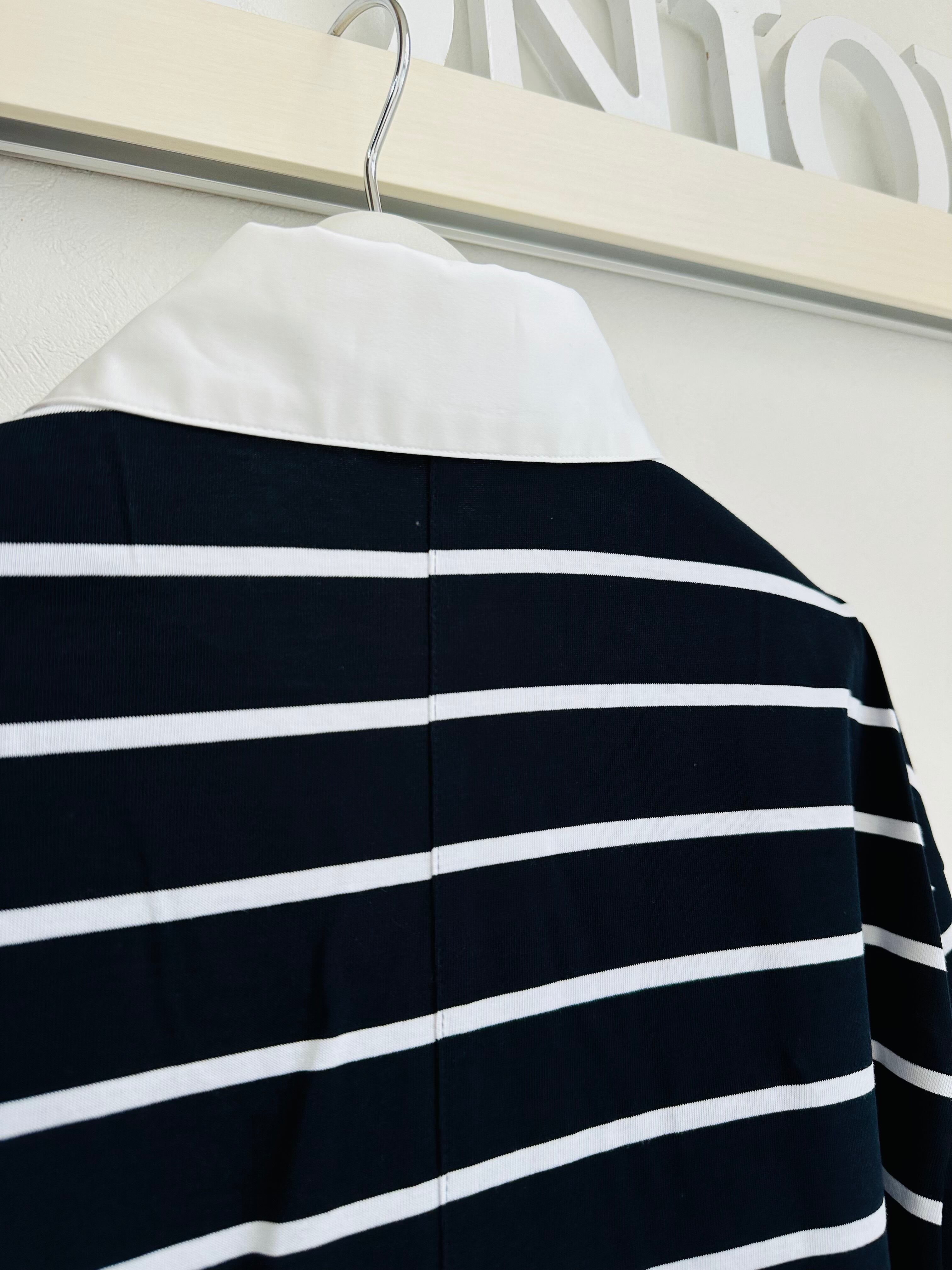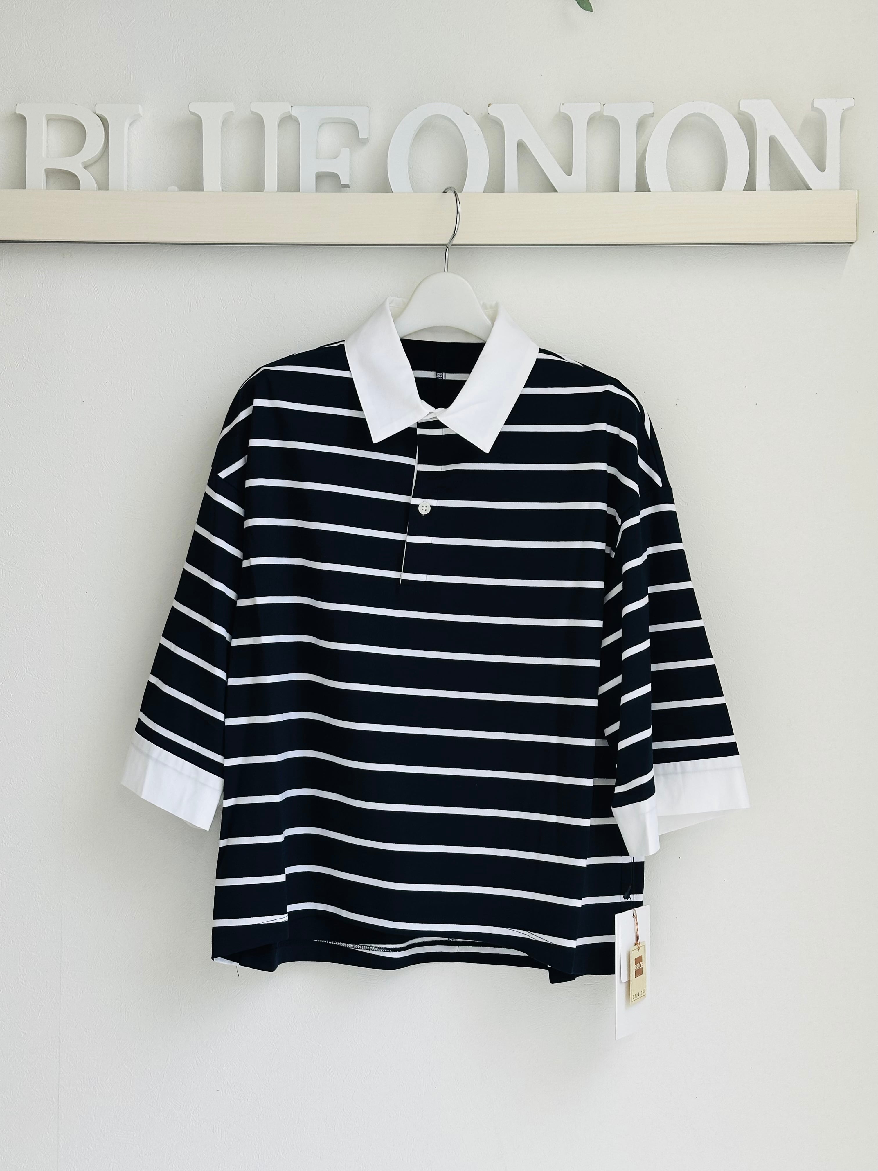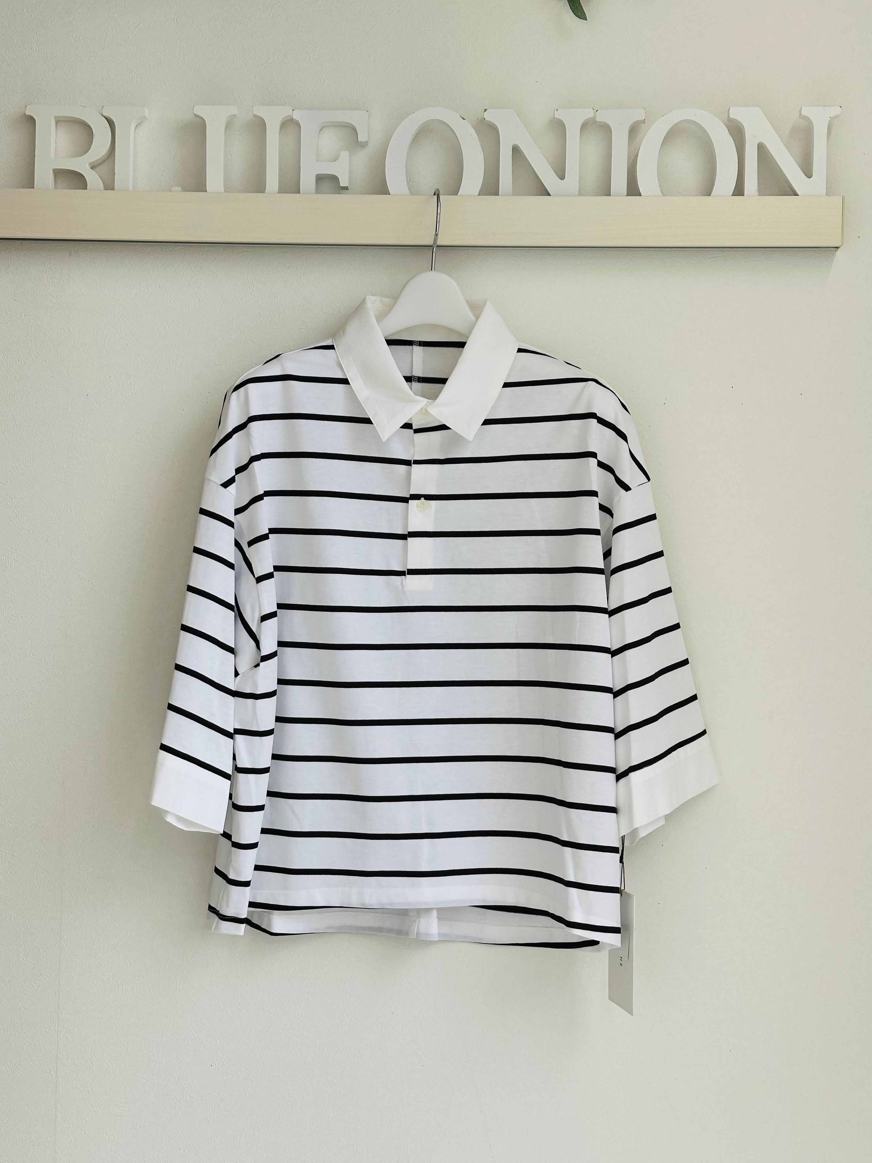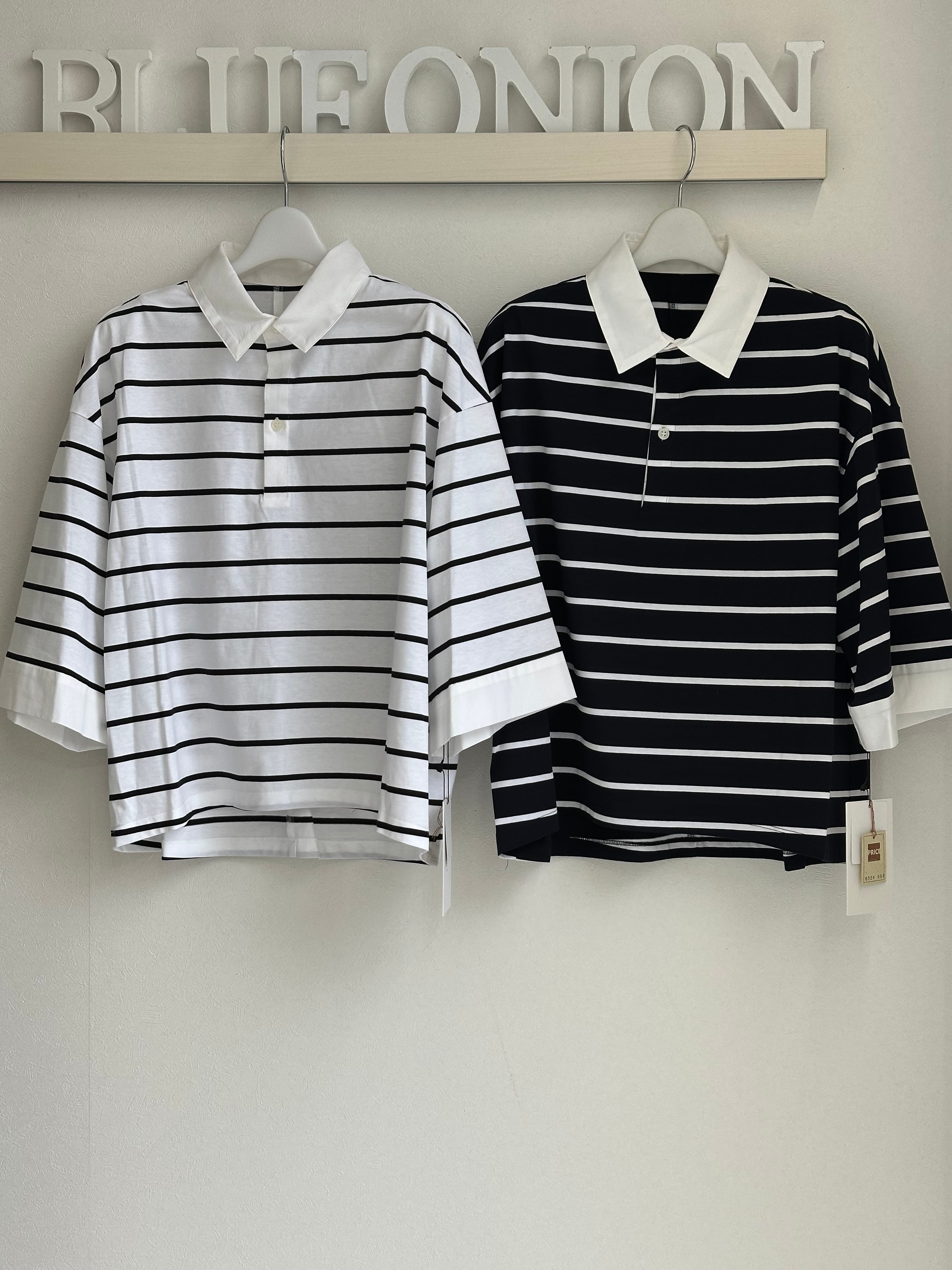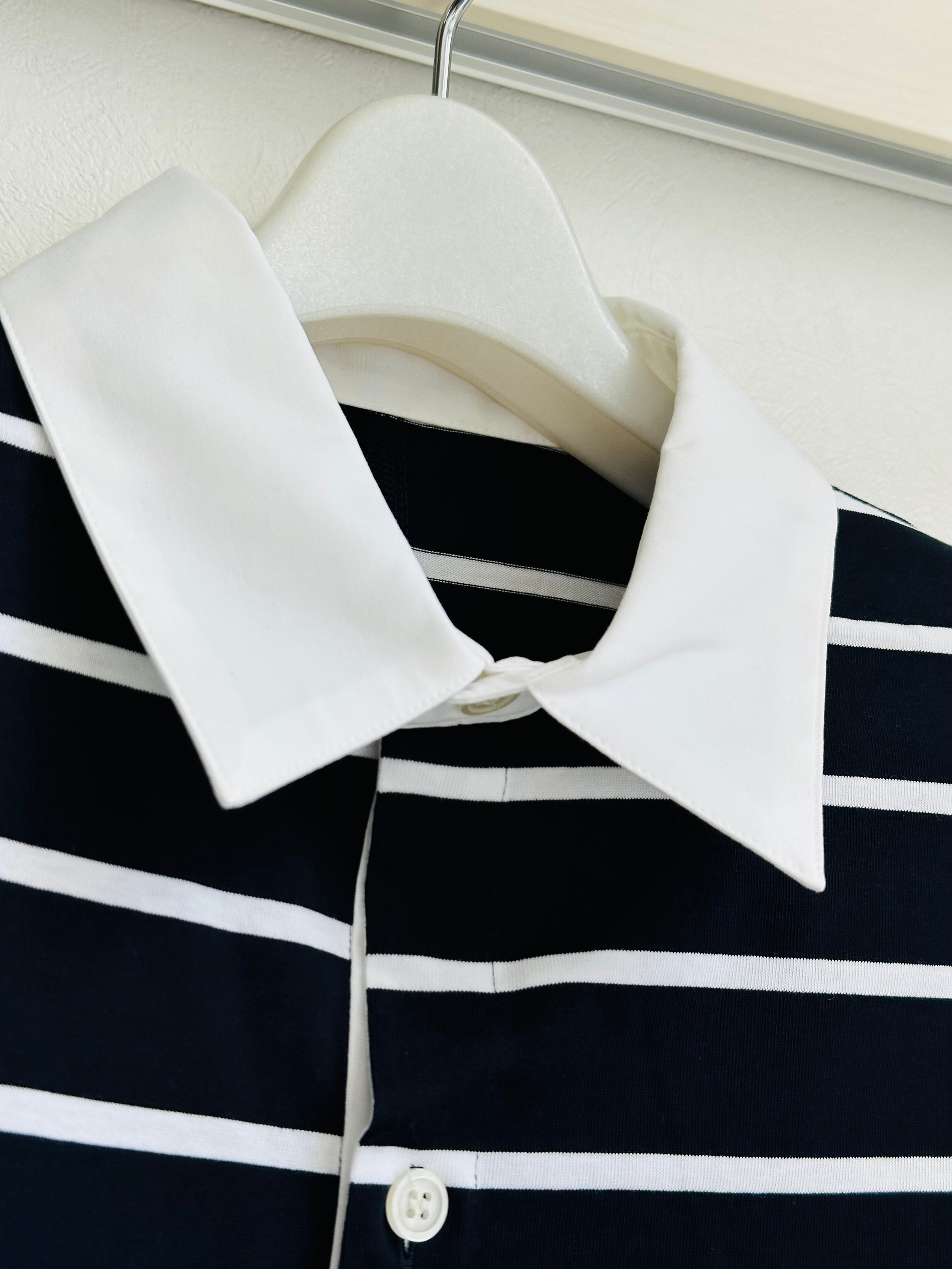 綺麗目ポロシャツのボーダーは今年らしい雰囲気でおすすめです。