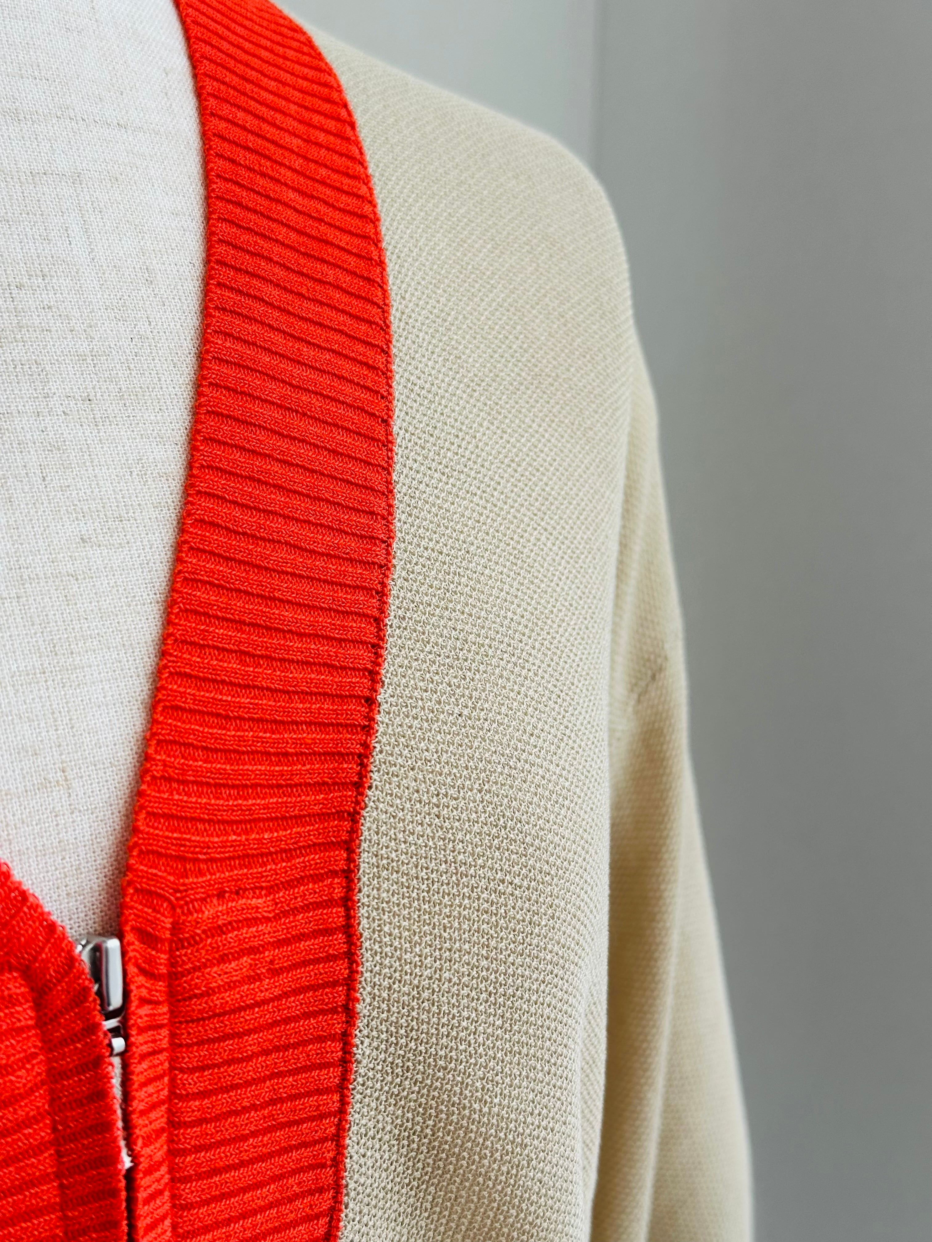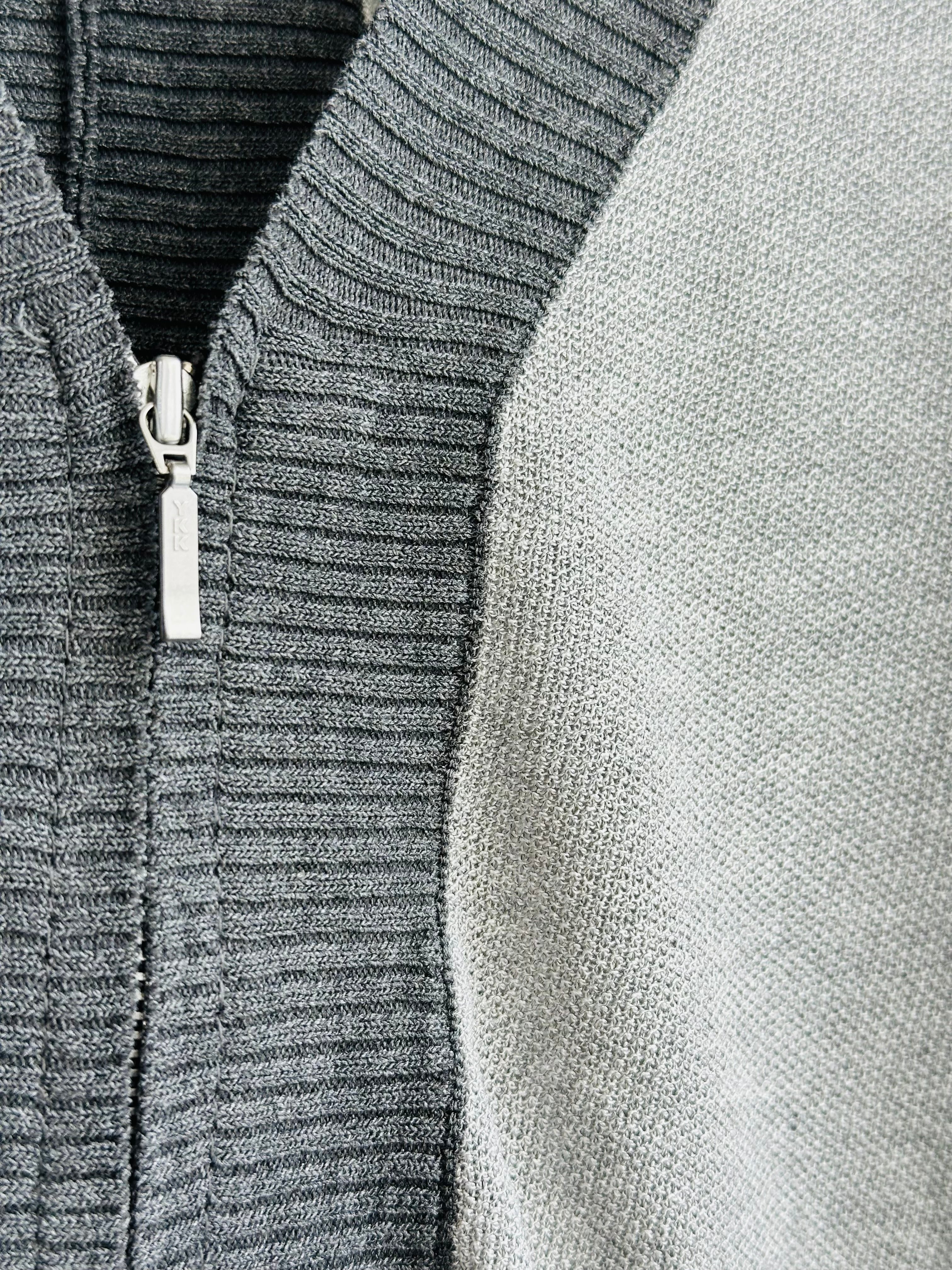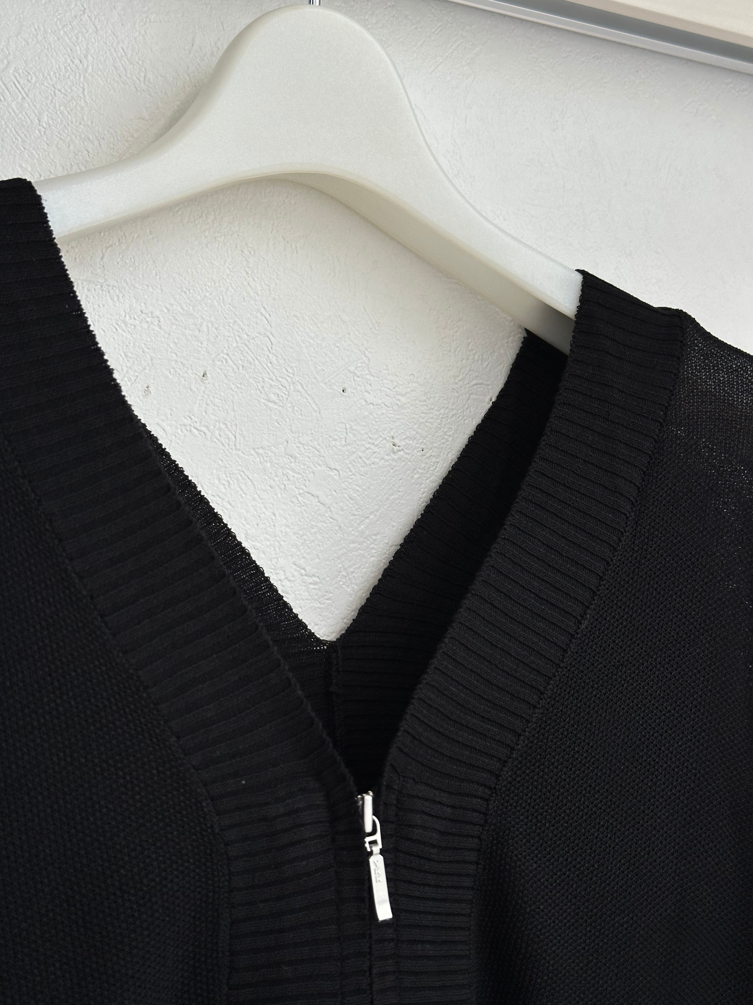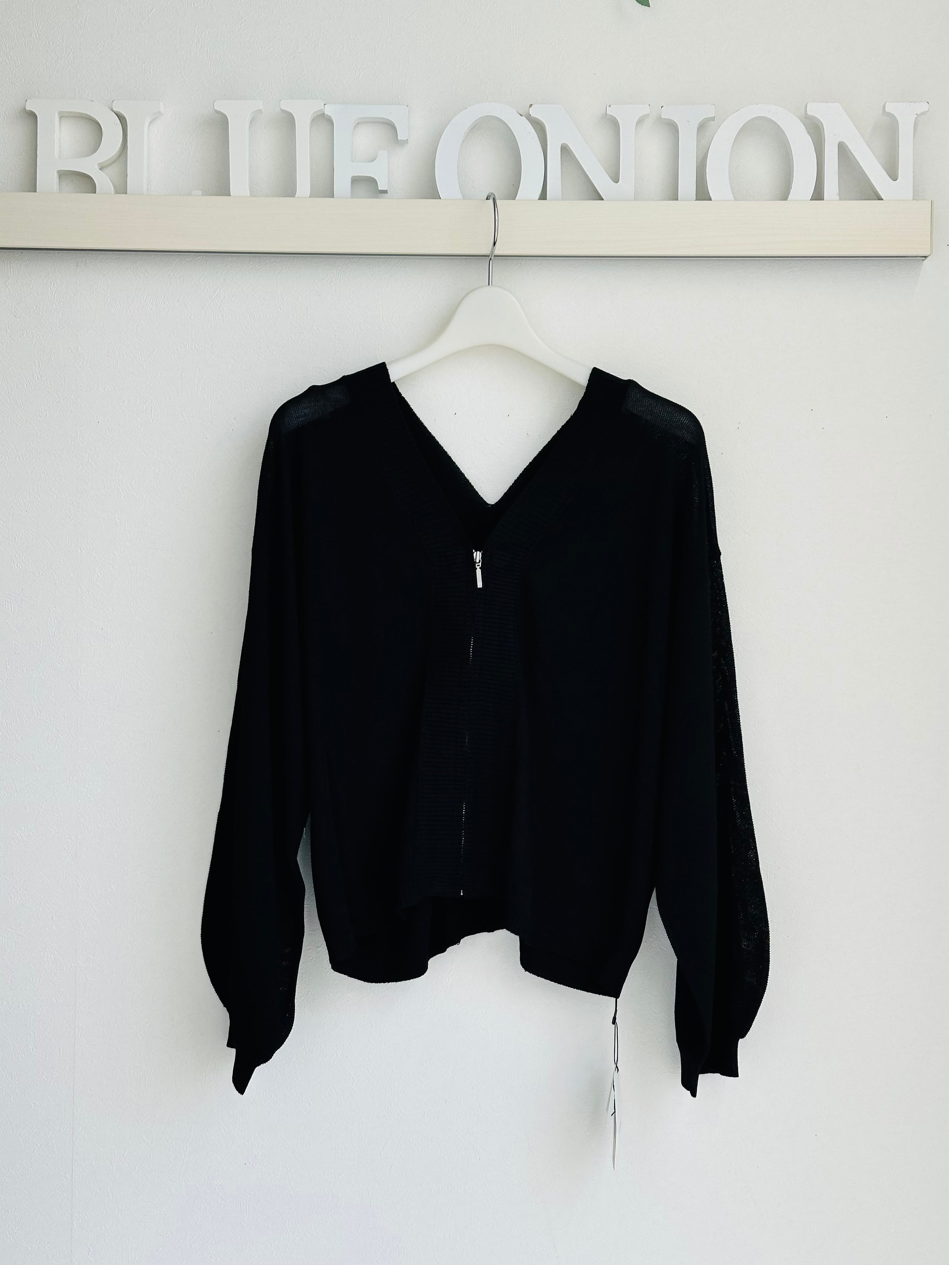 さっと羽織るのに便利な、細かいかのこ編みの、V開きニットカーディガフロントはファスナー開きの仕様です。