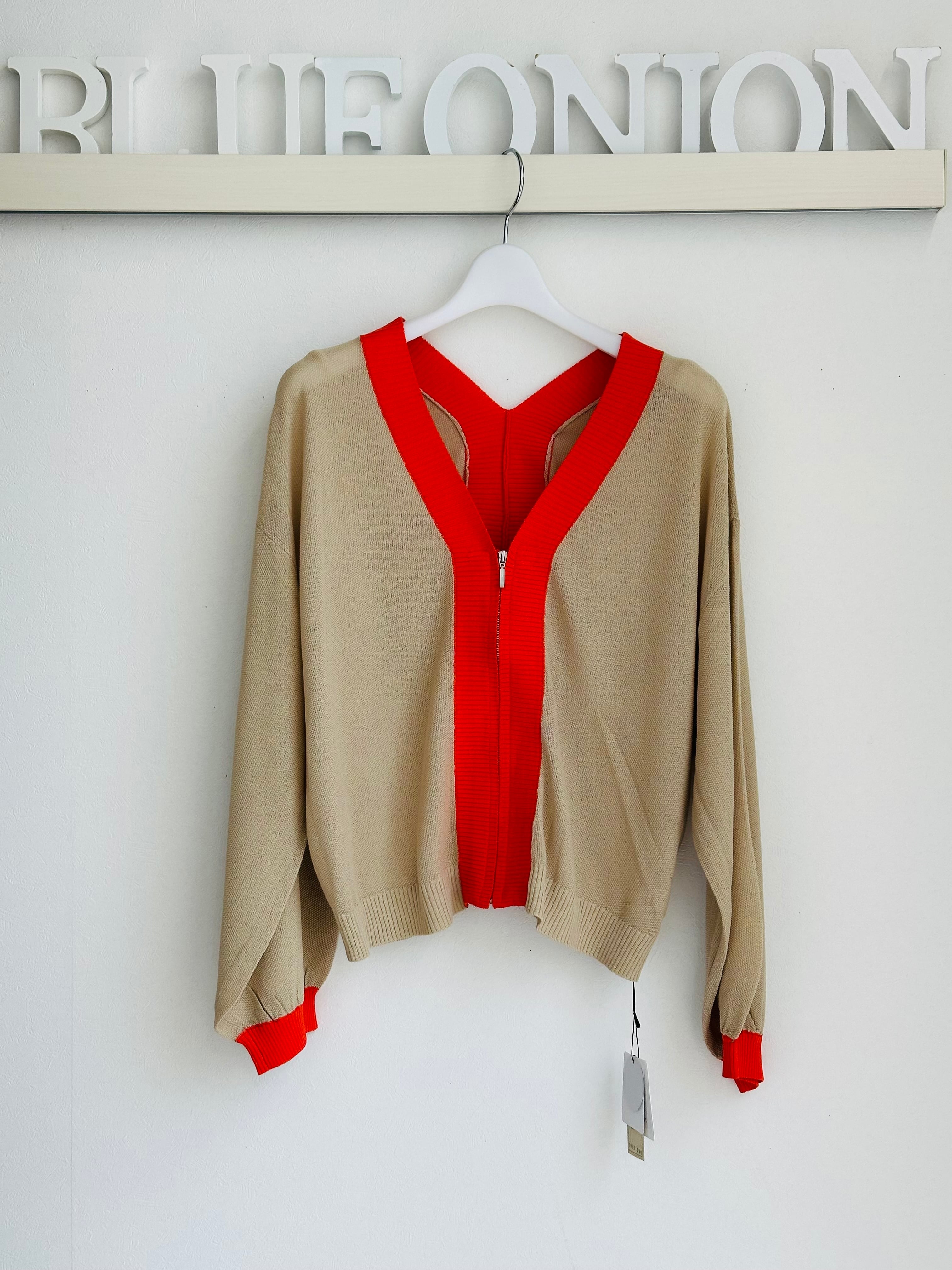 鹿子編みジップcardigan