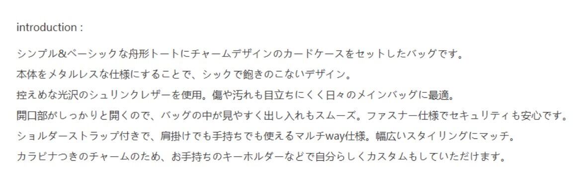シンプル&ベーシックな舟形トートにチャームデザインのカードケースをセットしたバッグです。